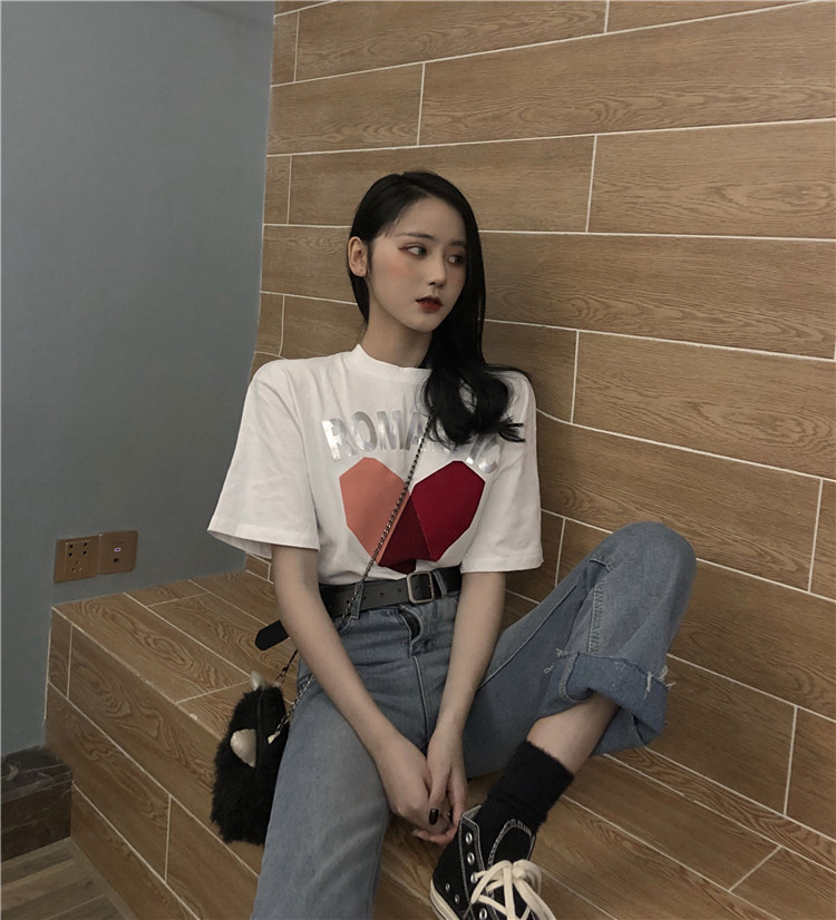 2019新款寬松網紅歐貨大版t恤設計感心機上衣女短袖ins潮洋氣小眾
