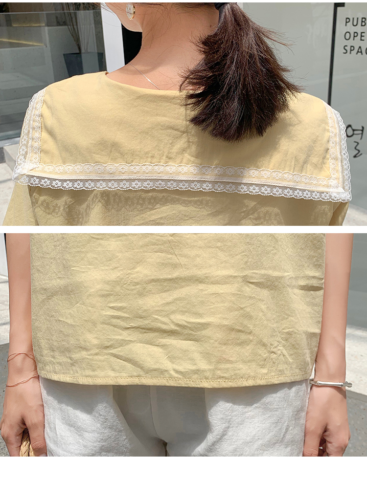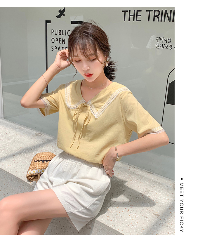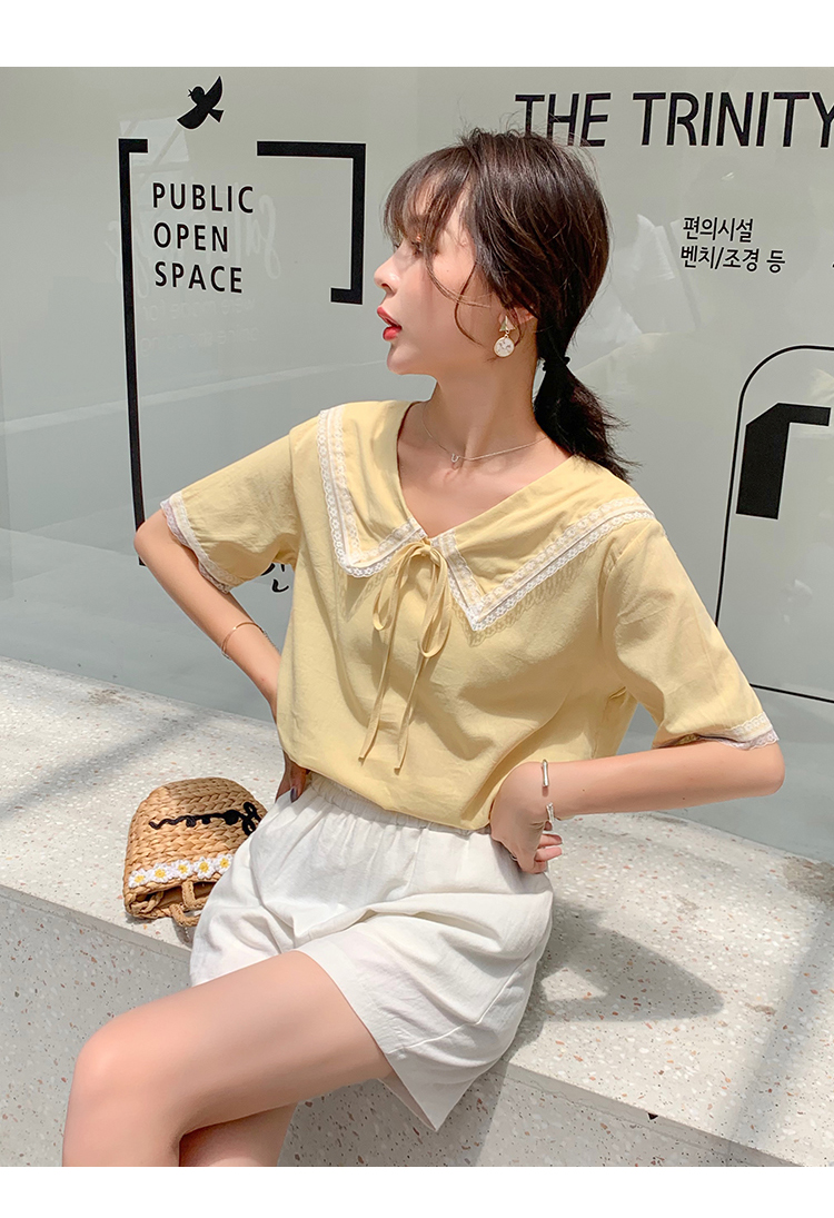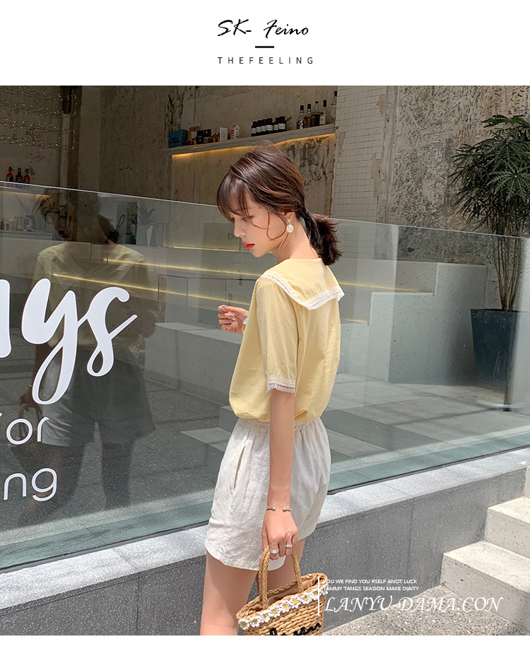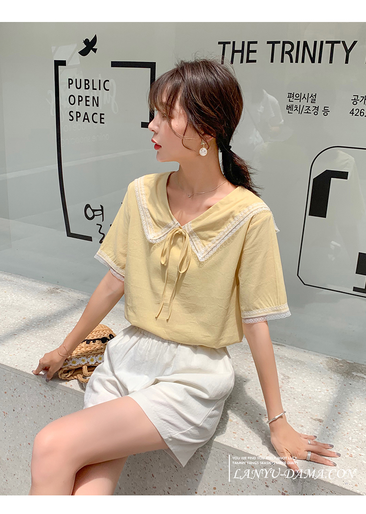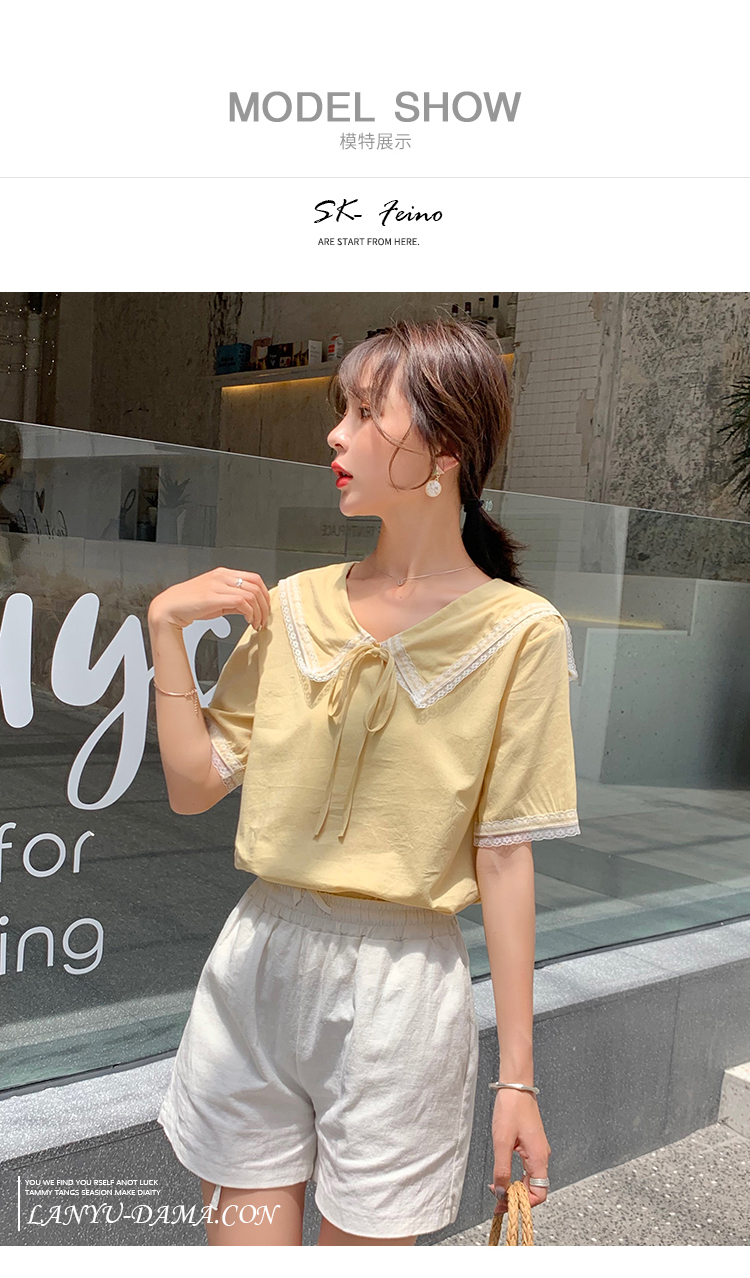 2019新款韓版小清新娃娃領上衣洋氣女士襯衫心機短袖設計感超仙女
