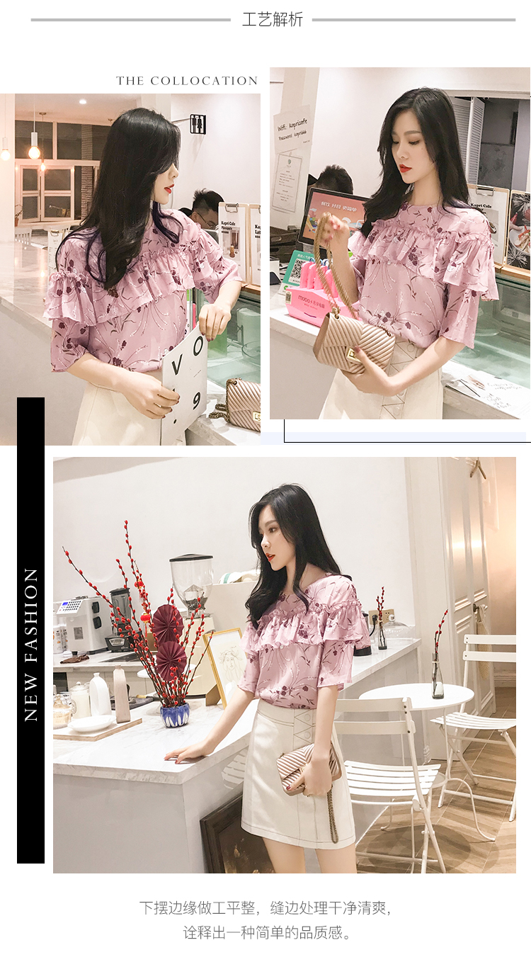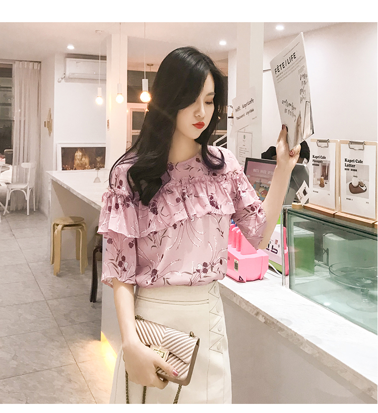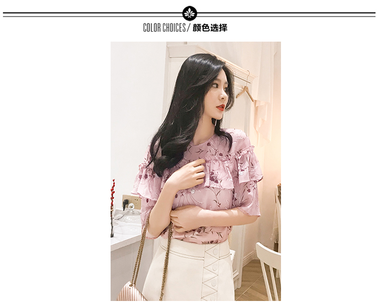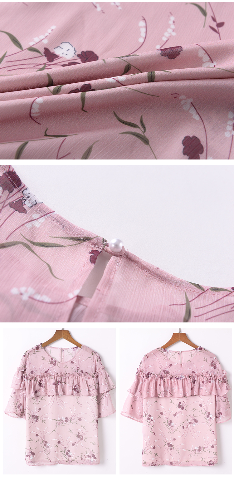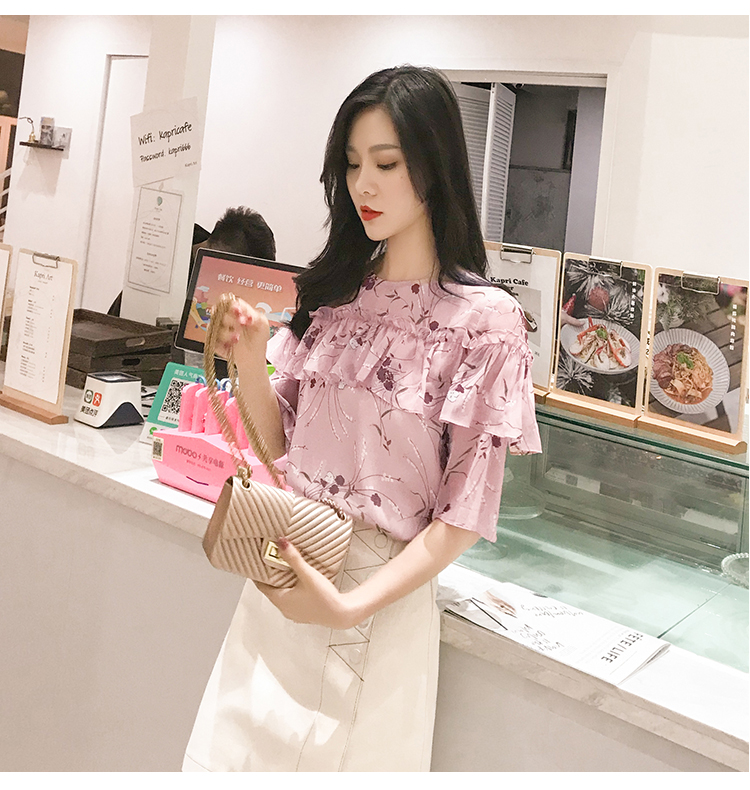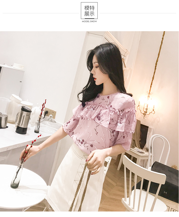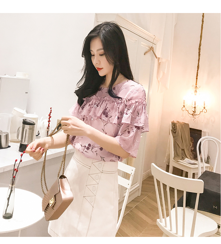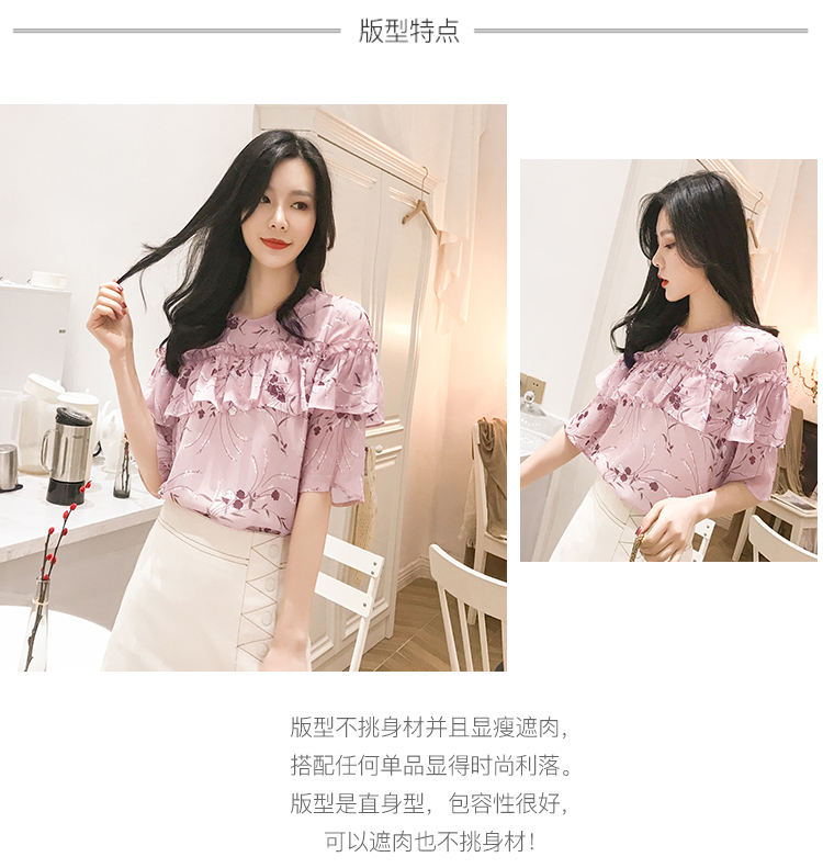 遮肚子雪紡衫女短袖上衣2019夏新款韓版百搭顯瘦超仙洋氣碎花小衫