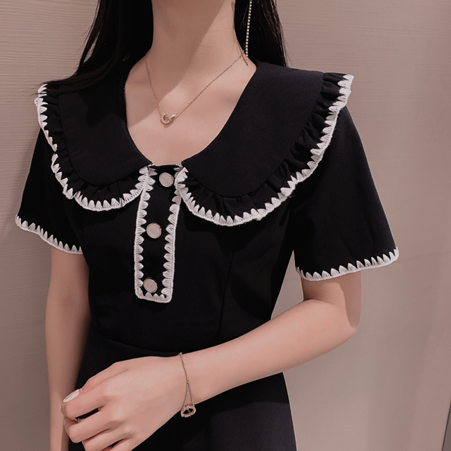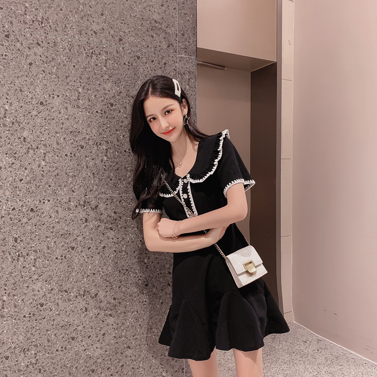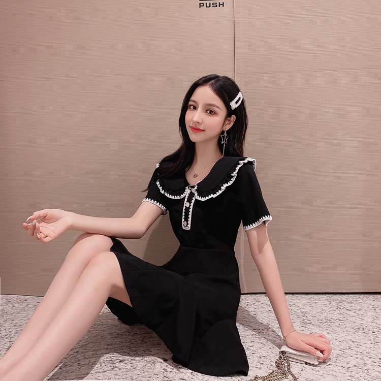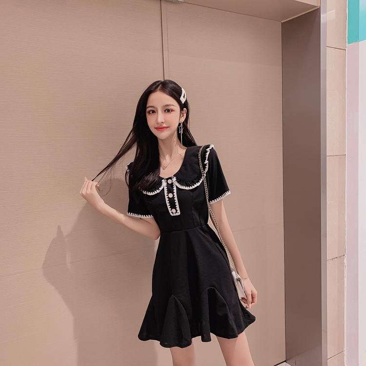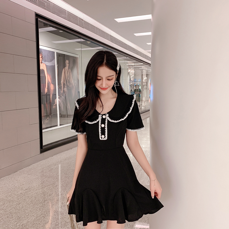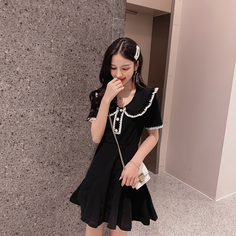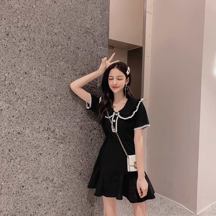 連衣裙女夏裝2019新款韓版學院風娃娃領收腰顯瘦氣質中長款a字裙