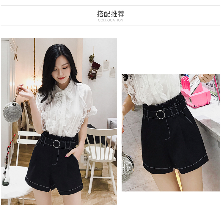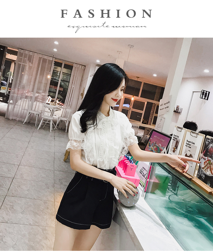 2019新款夏季網紗雪紡衫短袖襯衫女一字肩很仙的上衣洋氣寬松百搭