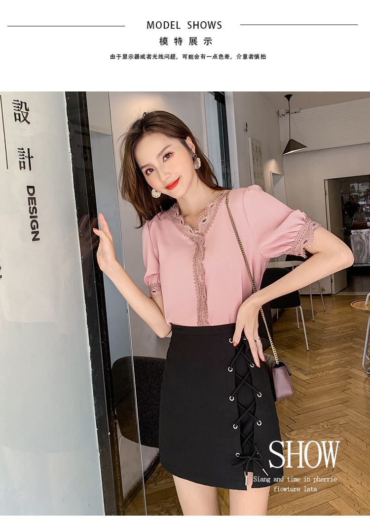雪紡襯衫女很仙的上衣2019春裝新款純色短袖女復古百搭長袖襯衣夏