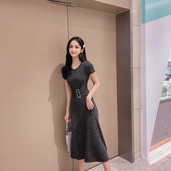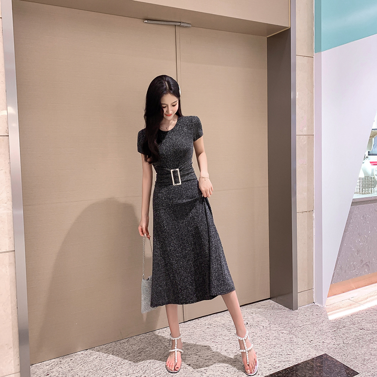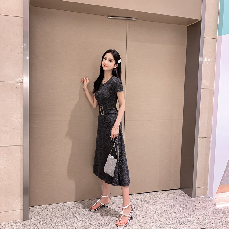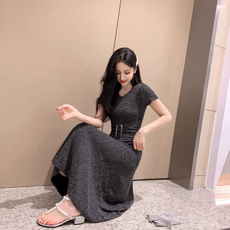 裙子輕熟風氣質洋氣收腰顯瘦名媛優雅性感夜店女裝亮絲連衣裙長裙