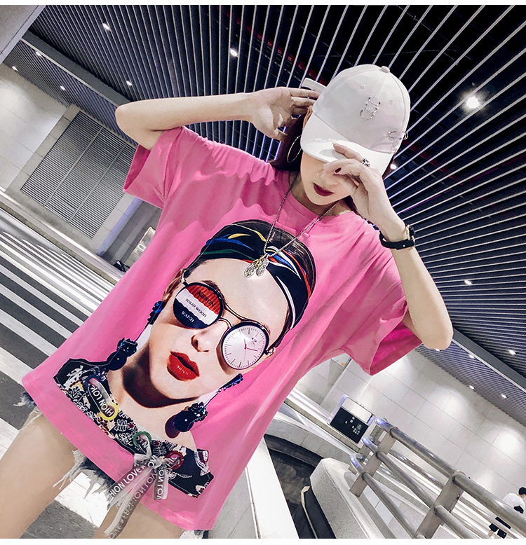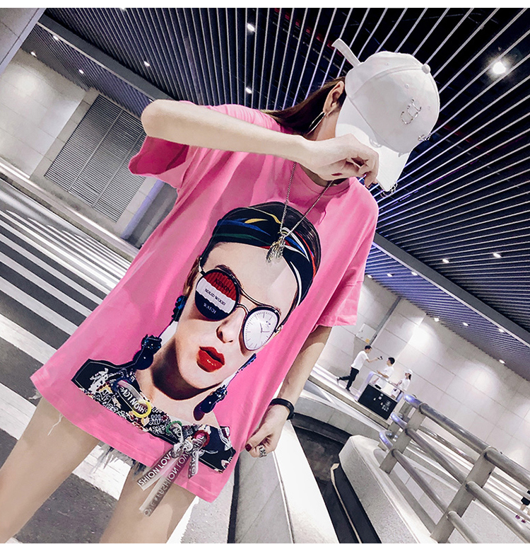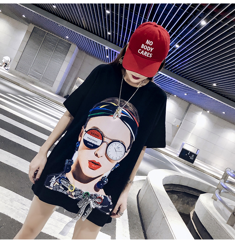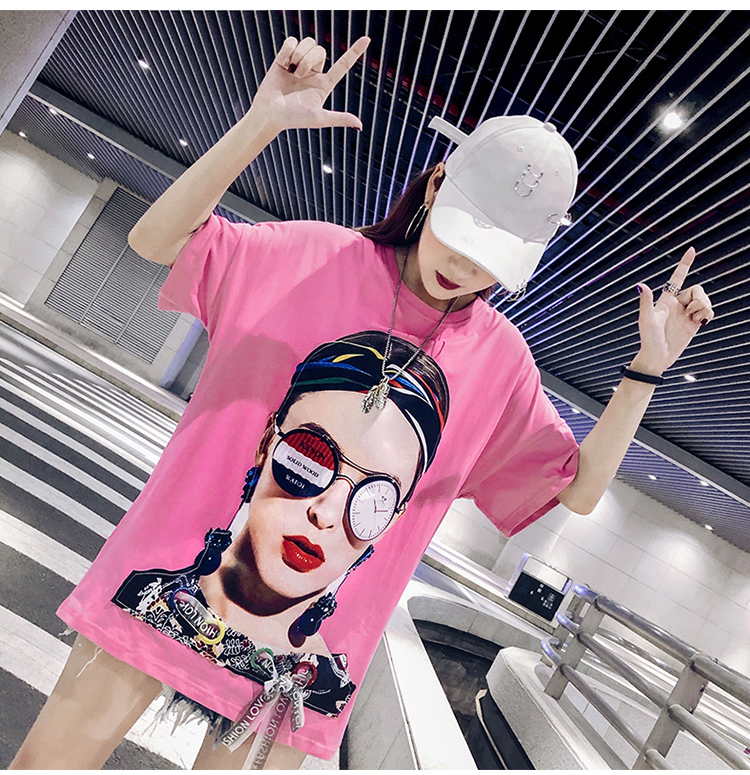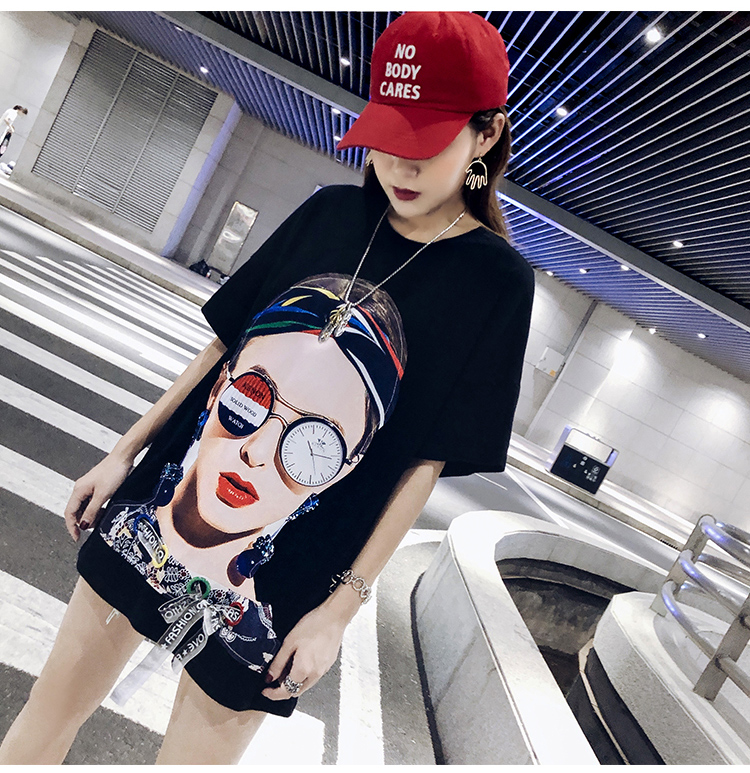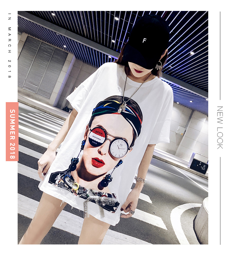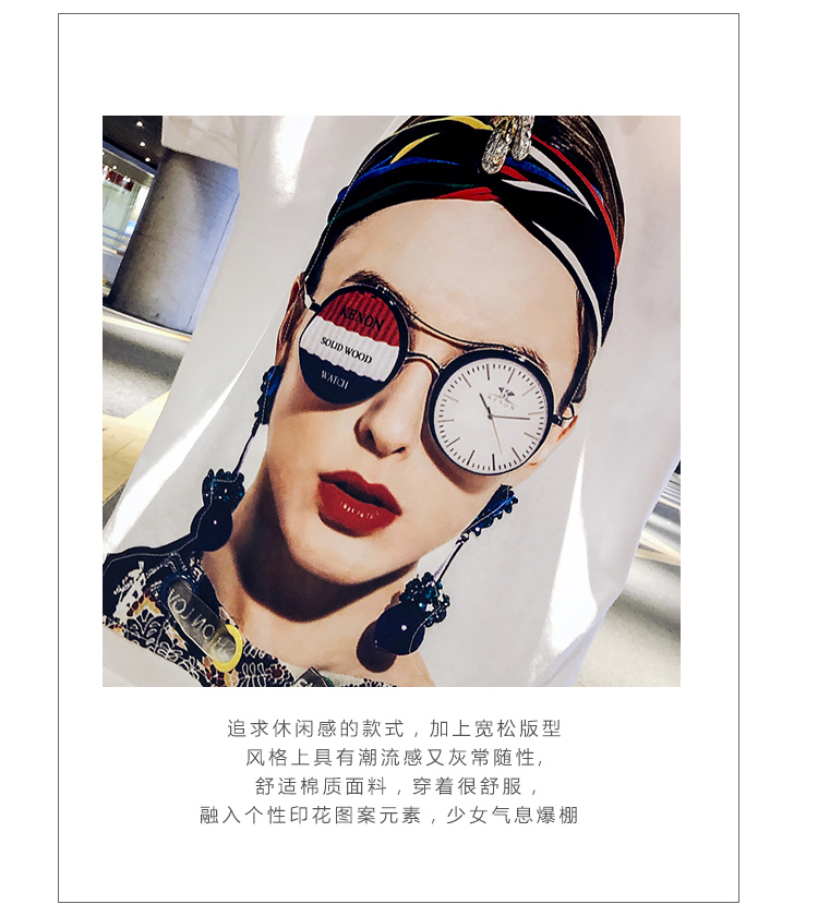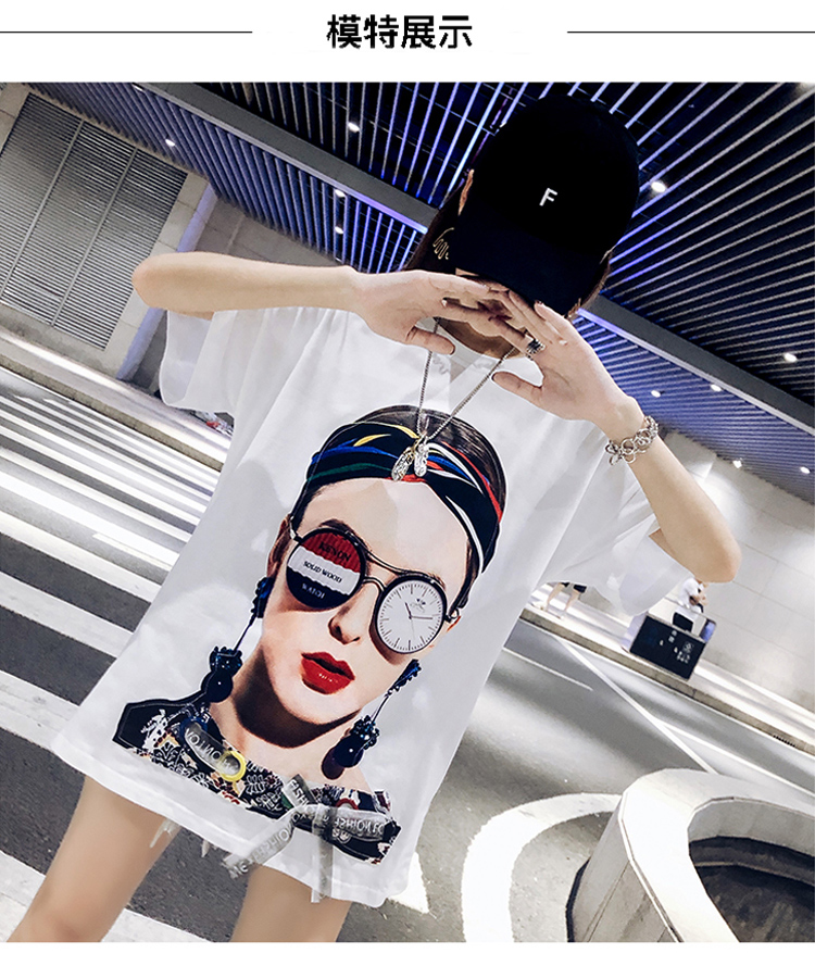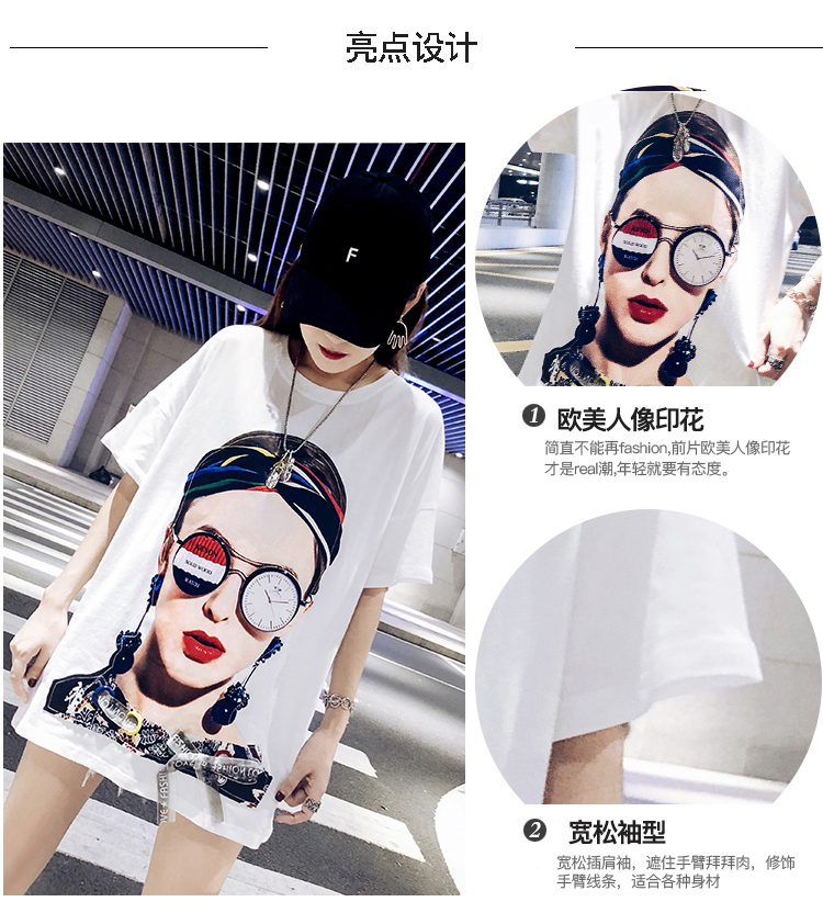 2019春夏新款寬松韓版中長款白色t恤女學生短袖人物頭像上衣酷潮