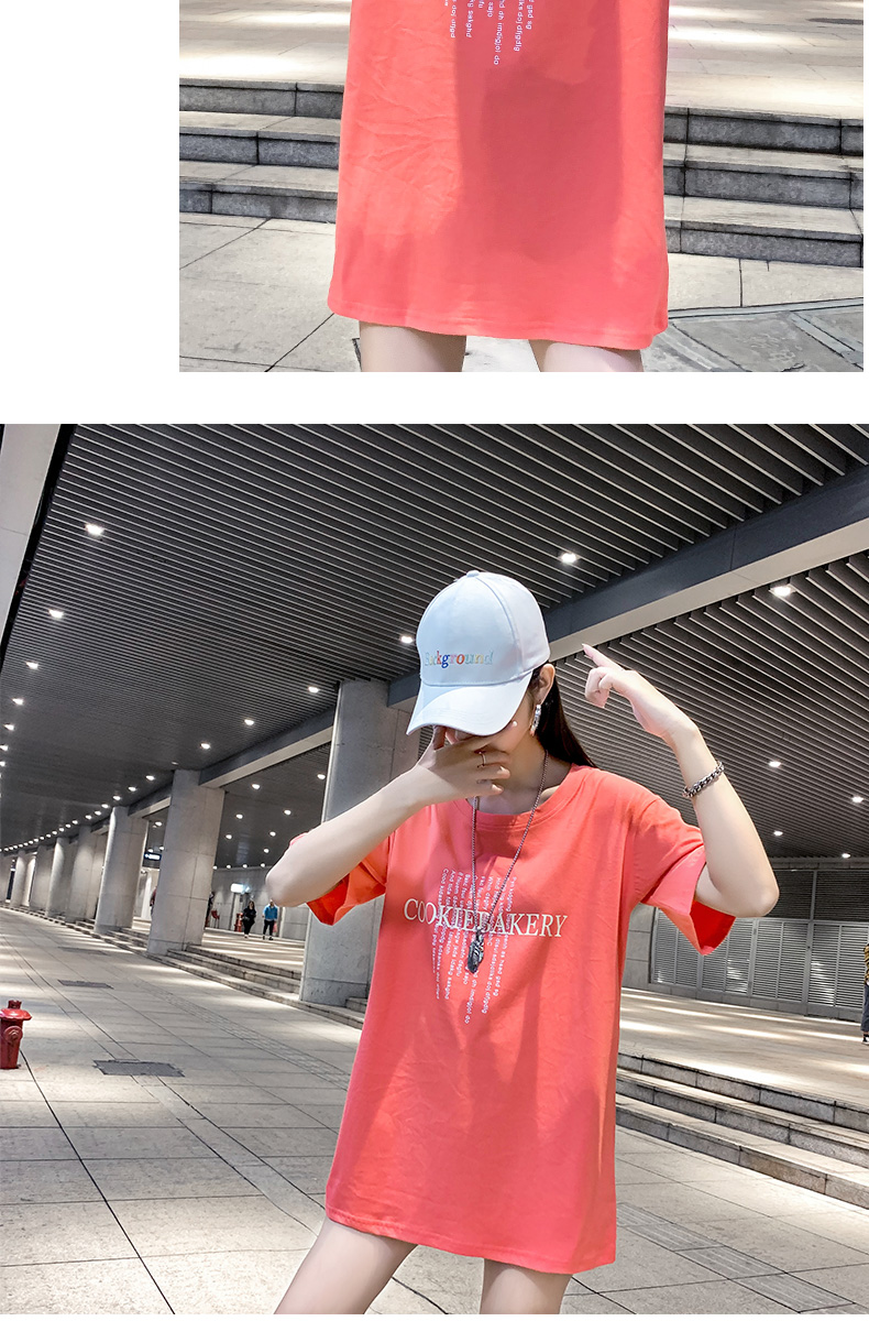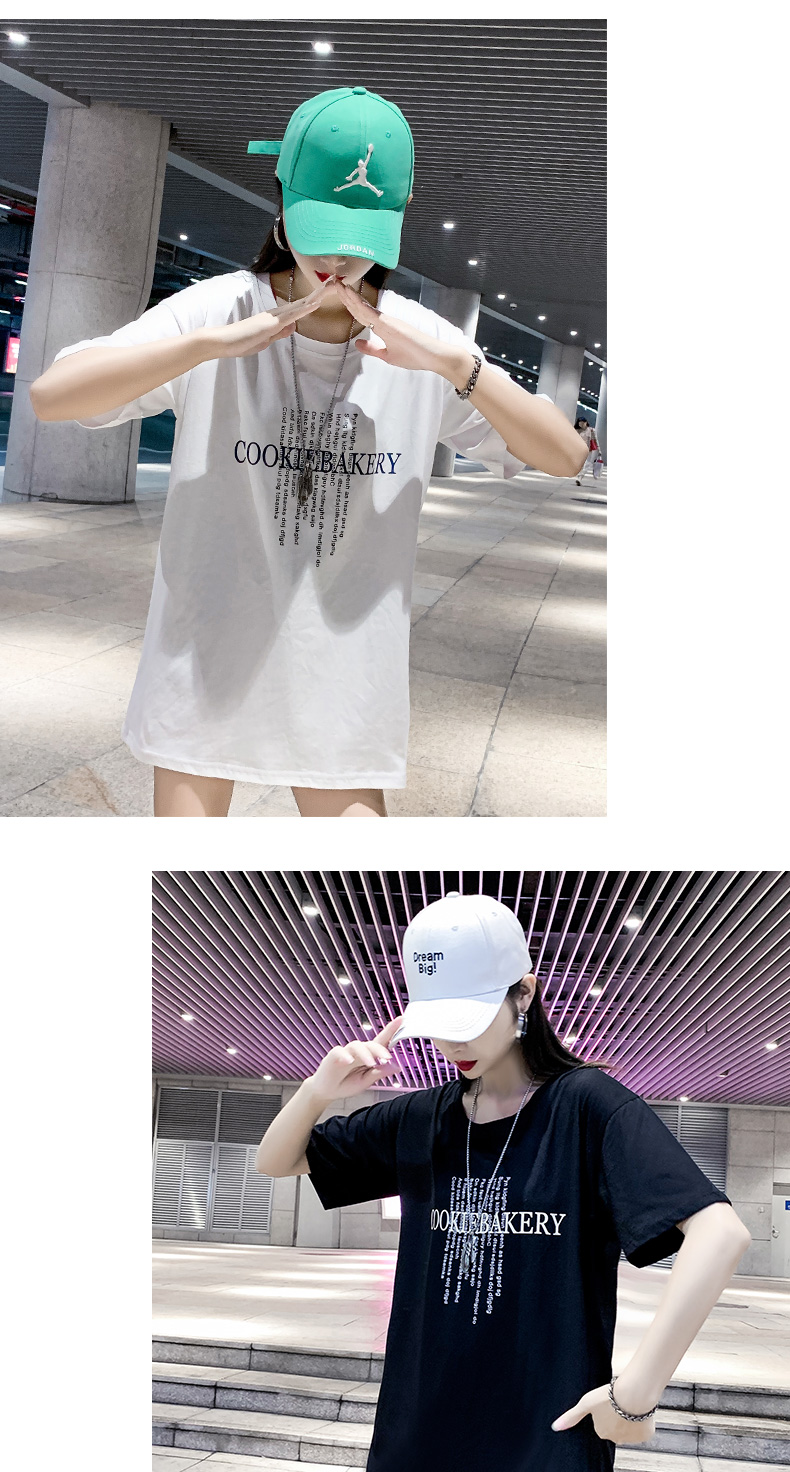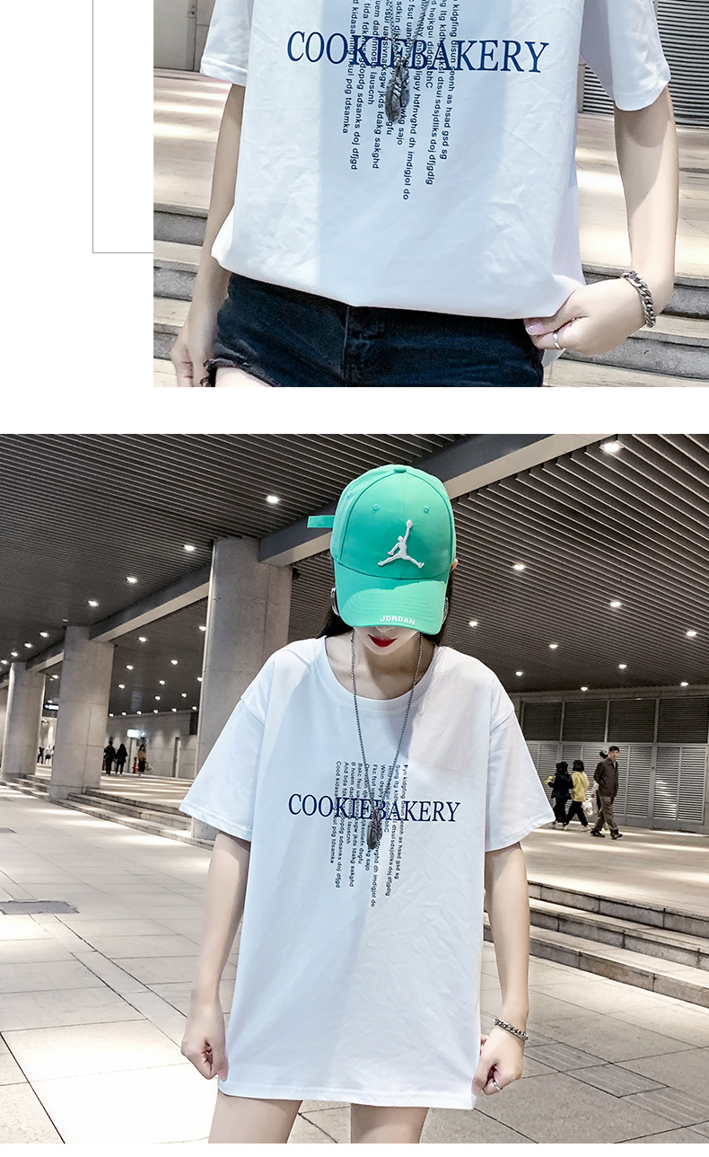 2019夏季新款百搭寬松簡約字母印花白色短袖t恤女中長款上衣服潮