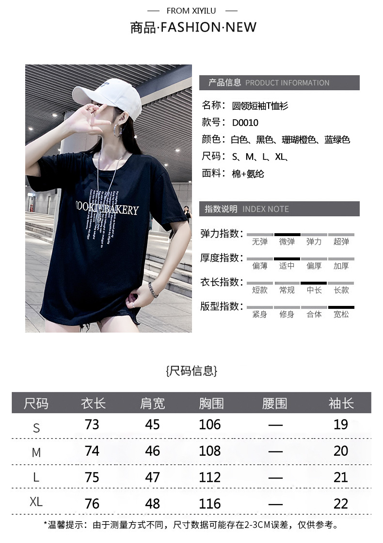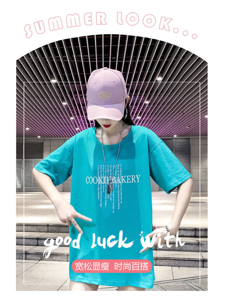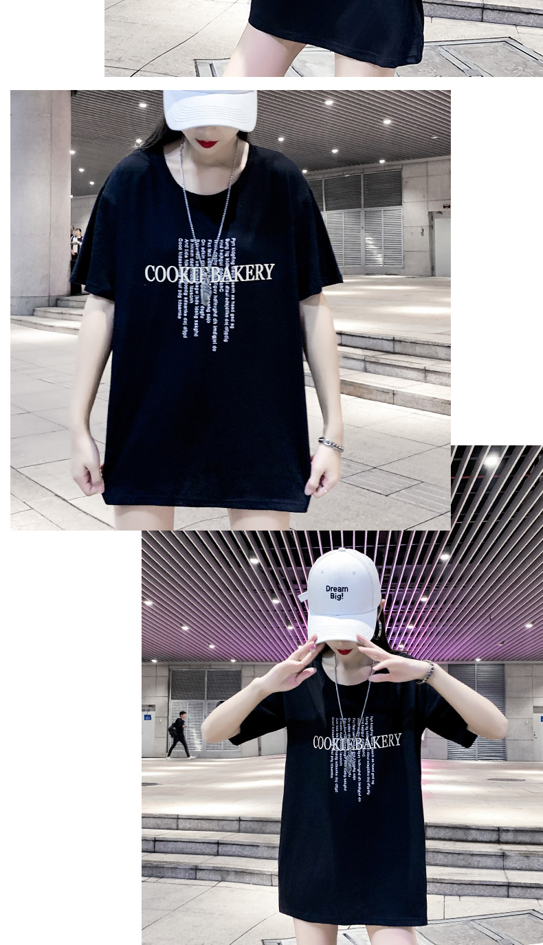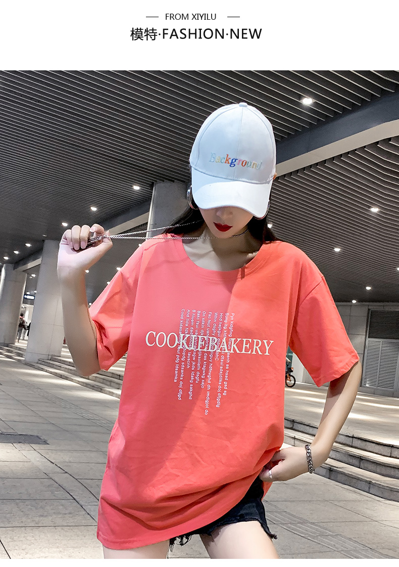 2019夏季新款百搭寬松簡約字母印花白色短袖t恤女中長款上衣服潮