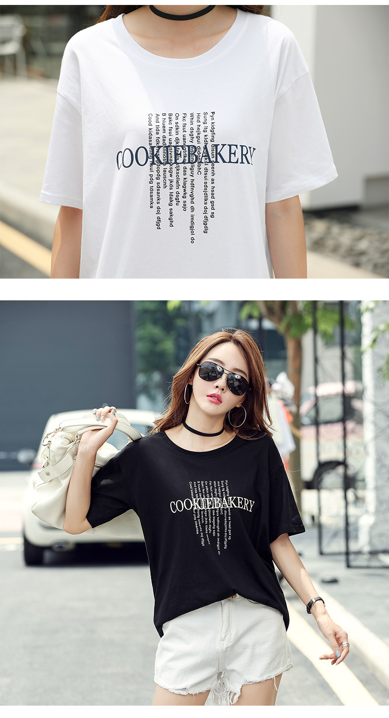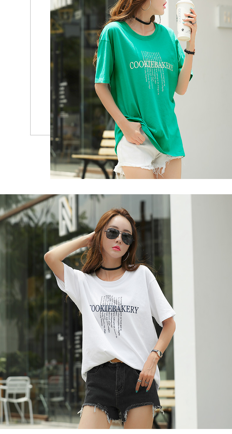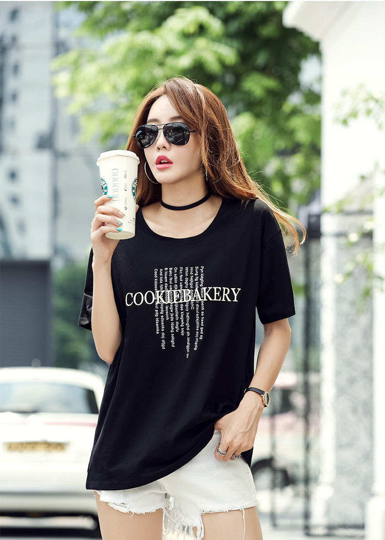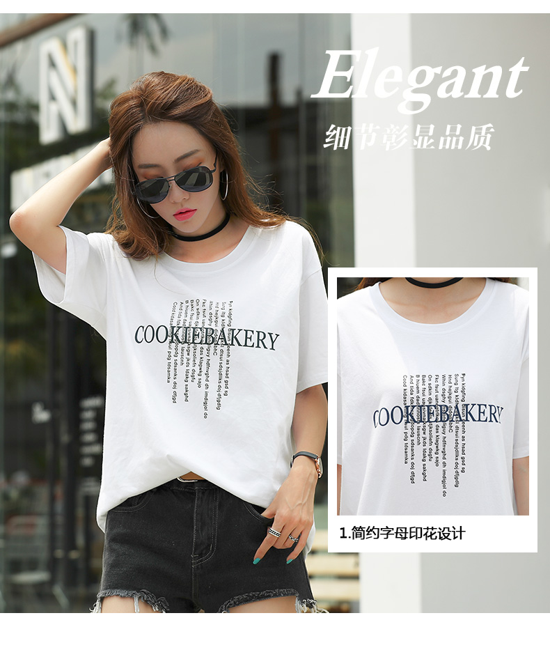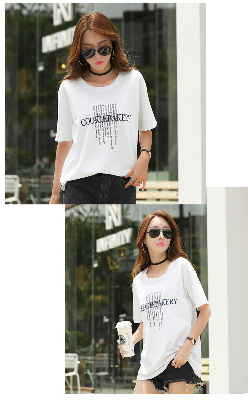韓版慵懶風中長款t恤女夏季女士字母印花寬松短袖女裝2019新款潮