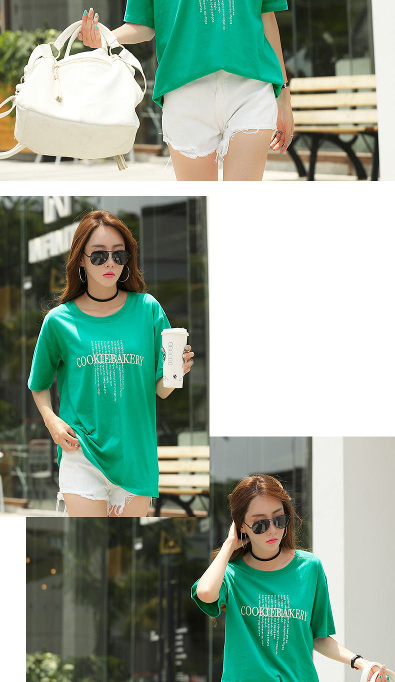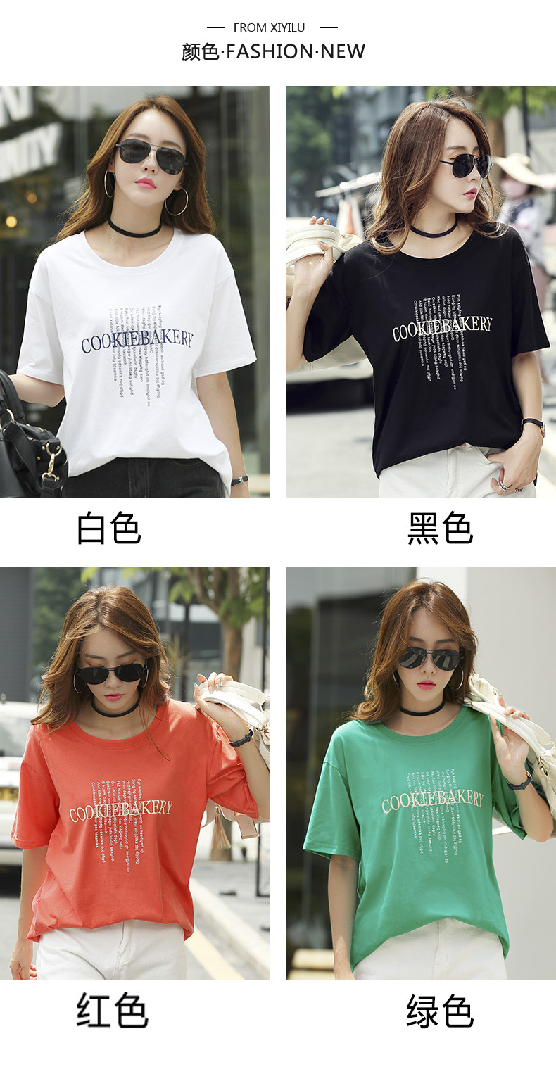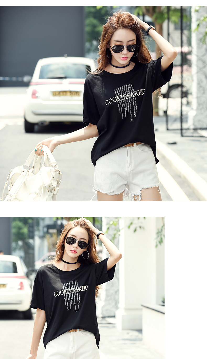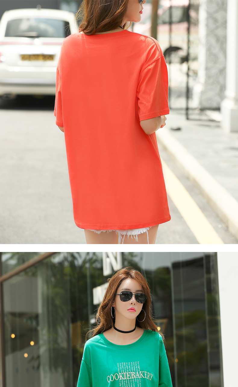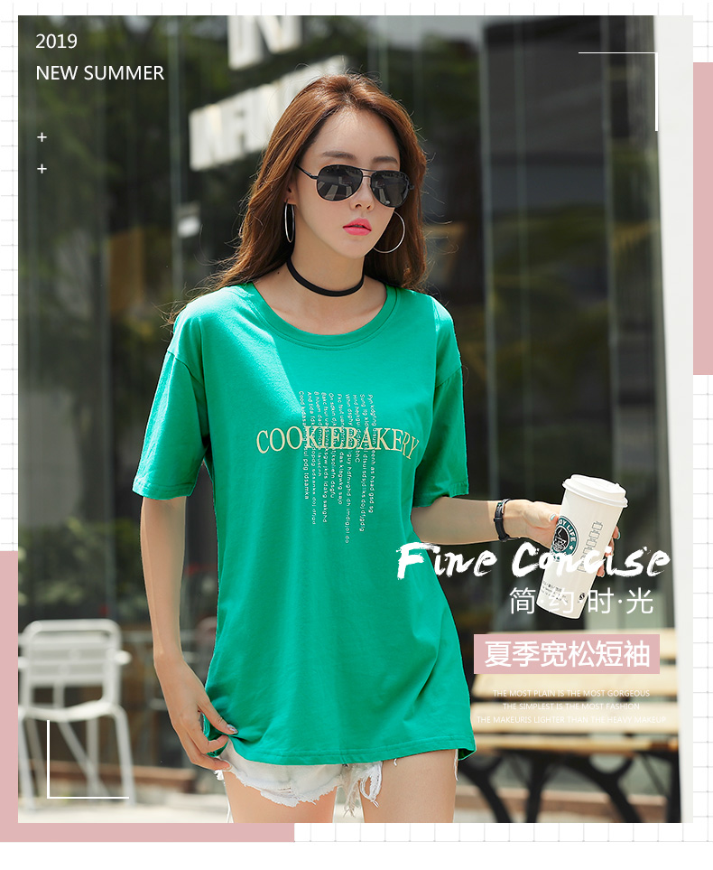 韓版慵懶風中長款t恤女夏季女士字母印花寬松短袖女裝2019新款潮