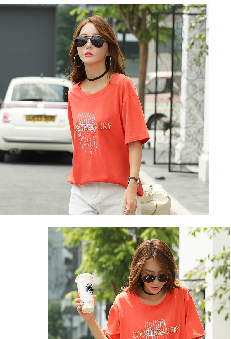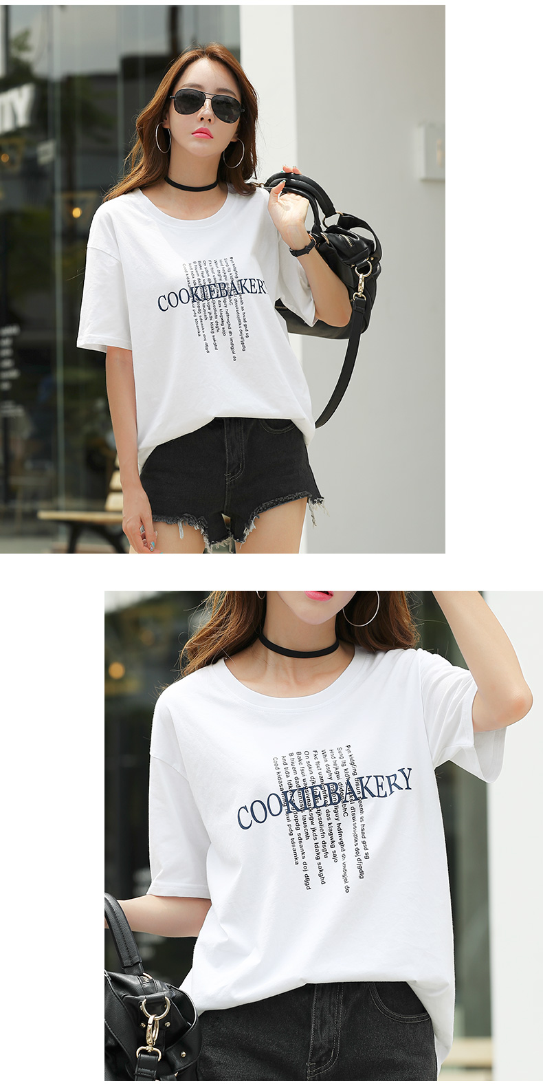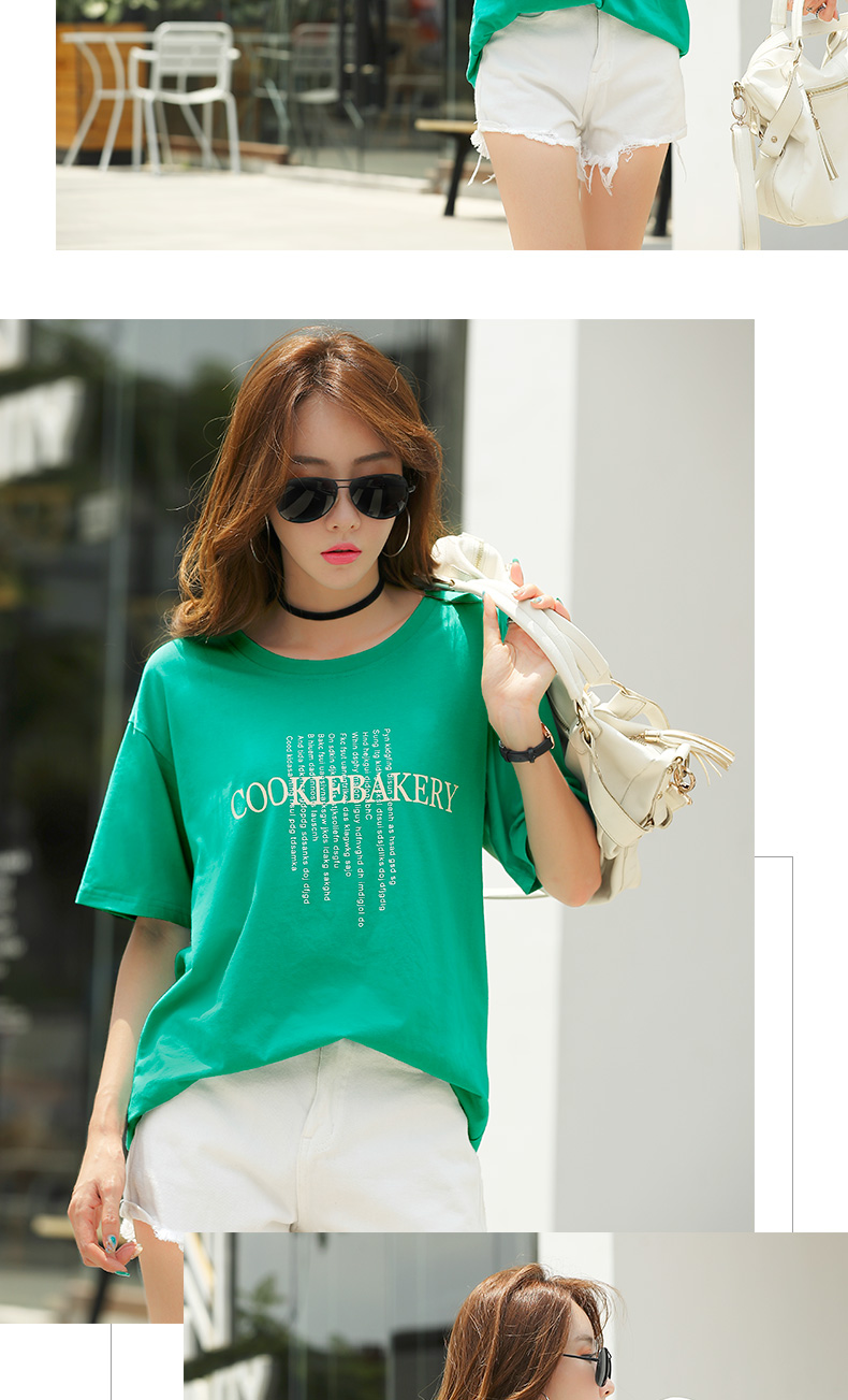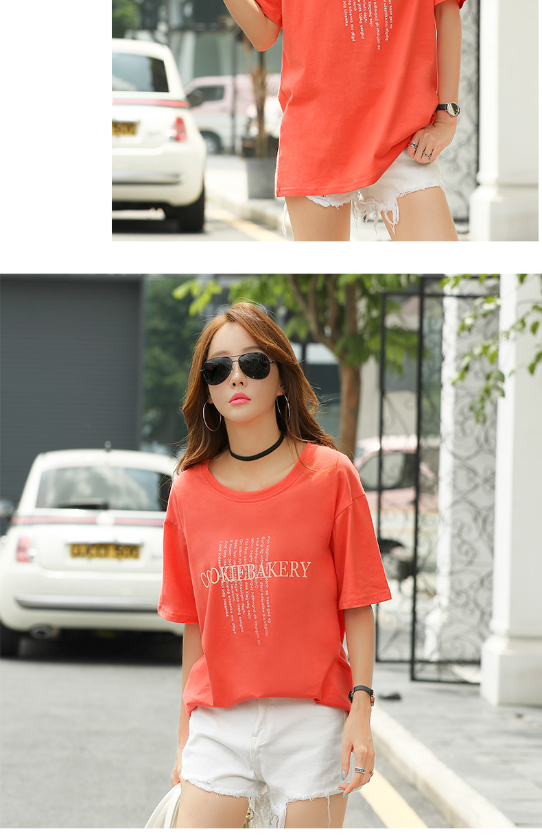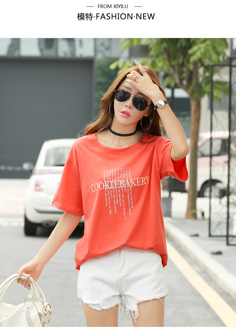韓版慵懶風中長款t恤女夏季女士字母印花寬松短袖女裝2019新款潮