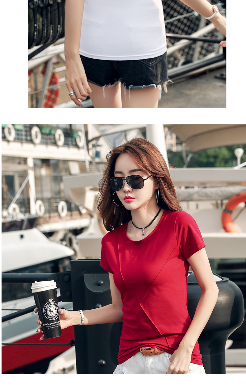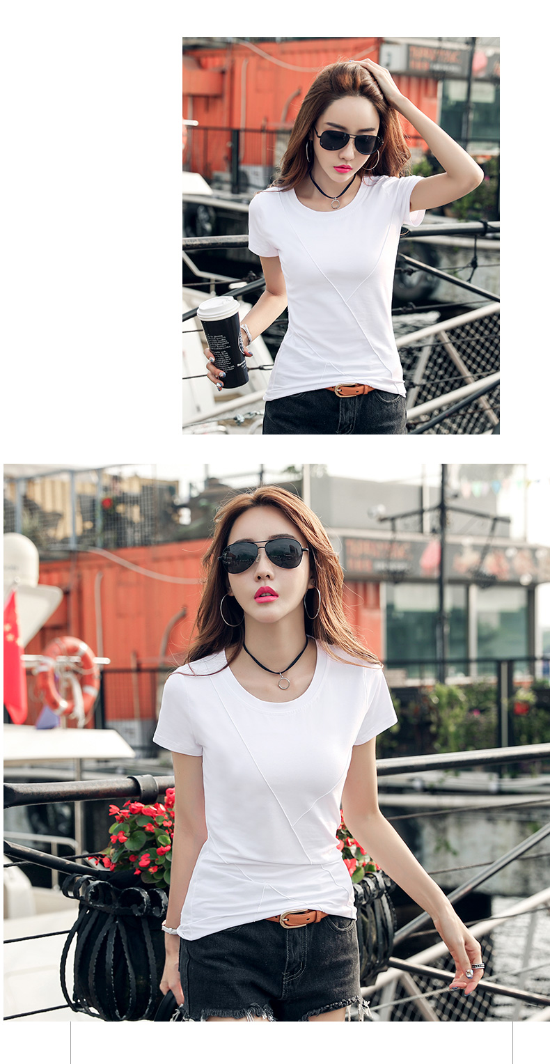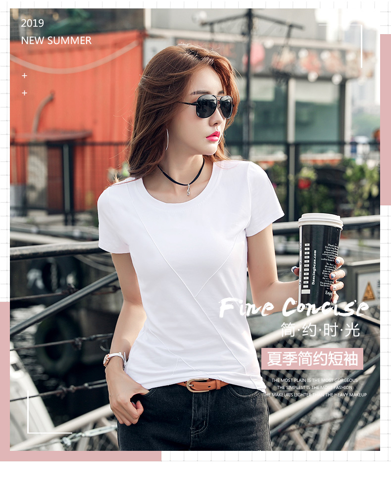韓版夏季純白色圓領短袖t恤女裝2019新款夏裝半袖棉短款體恤上衣