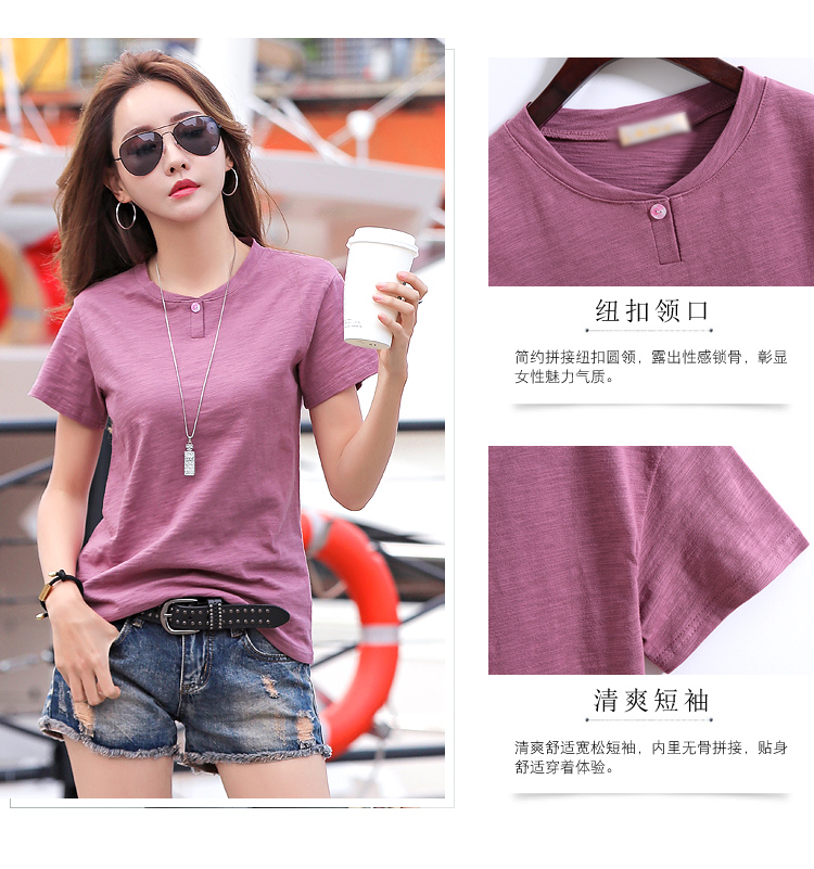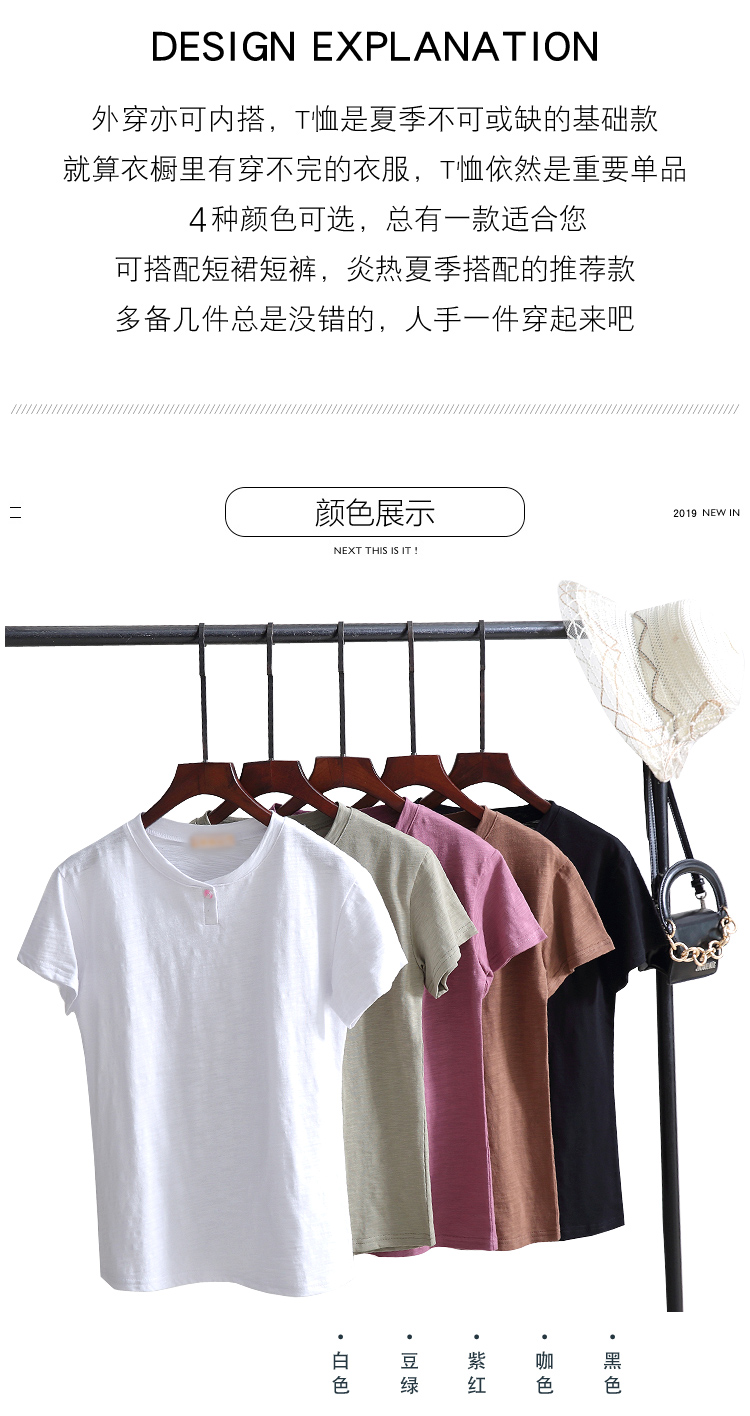 2019夏季新款純棉短袖t恤女寬松打底衫韓版純色竹節棉女裝上衣潮