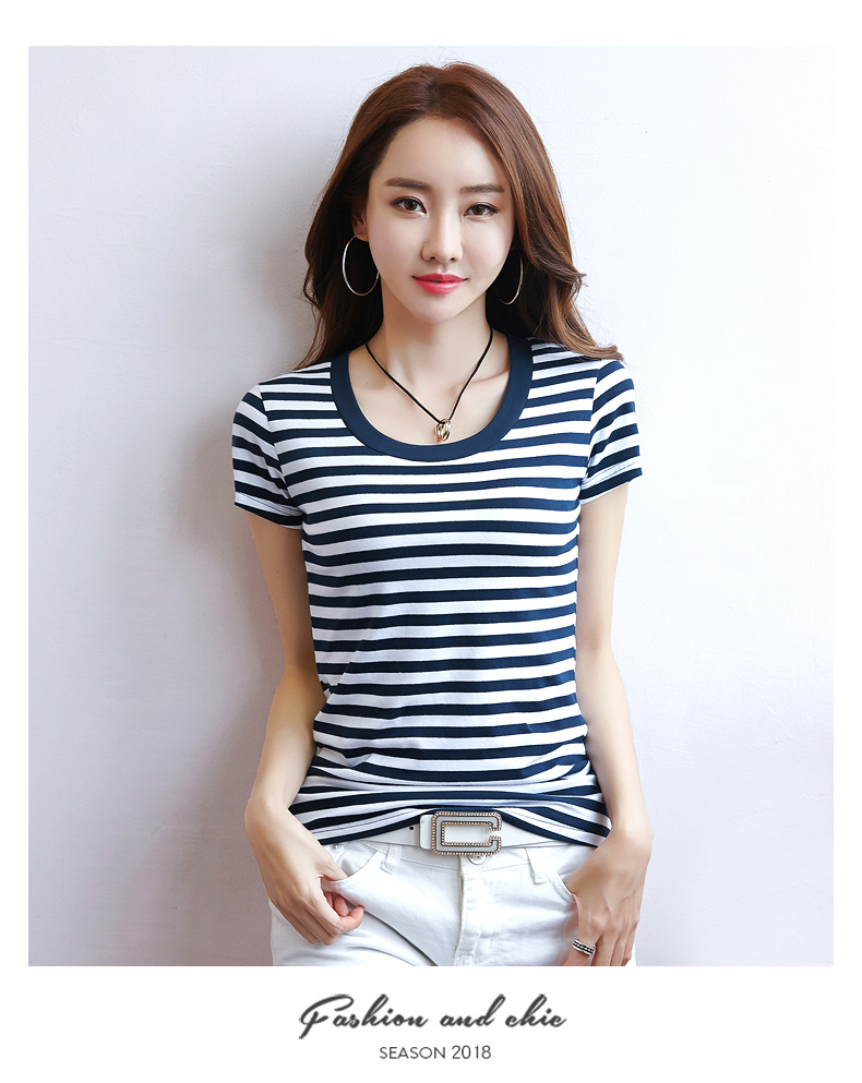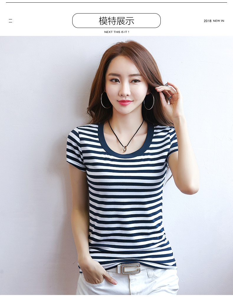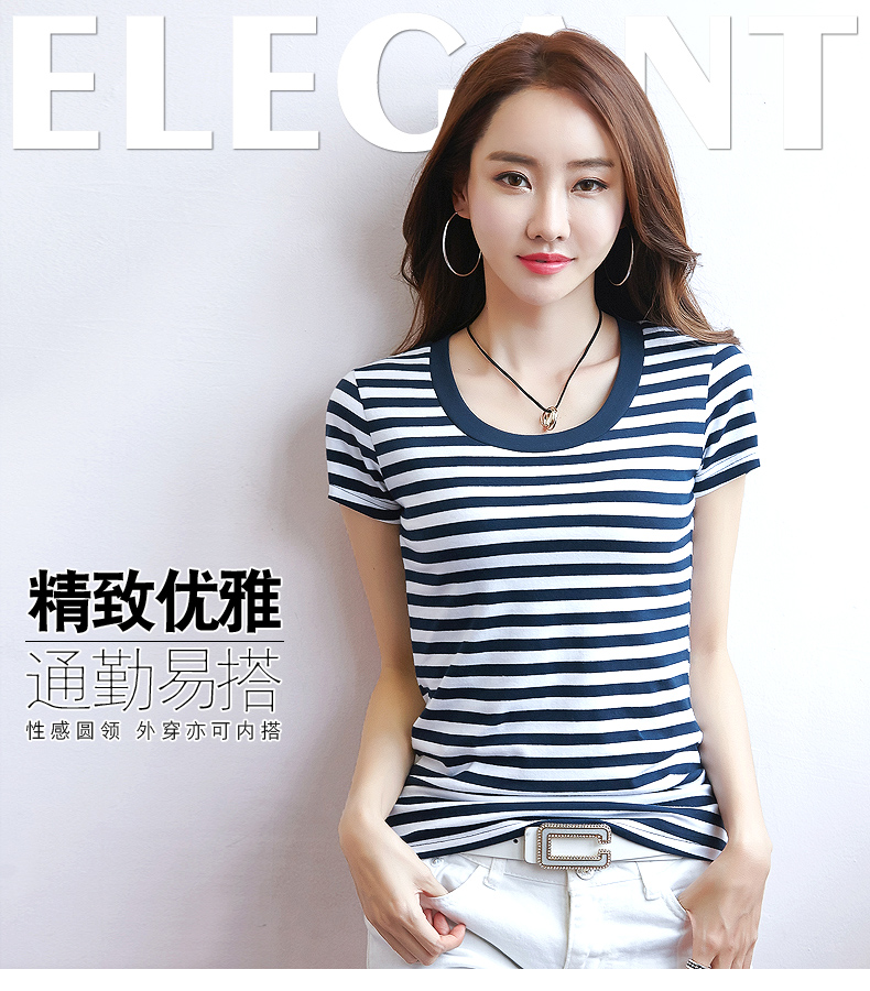 2019夏季新款棉條紋圓領寬松t恤女短袖學生半袖體恤打底衫上衣服