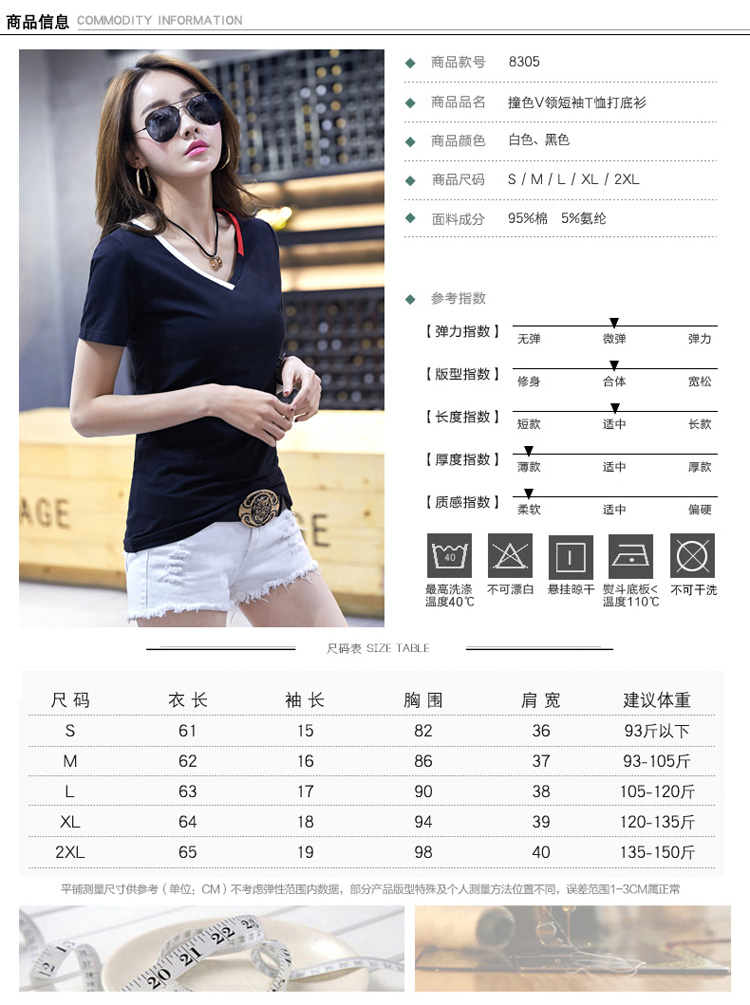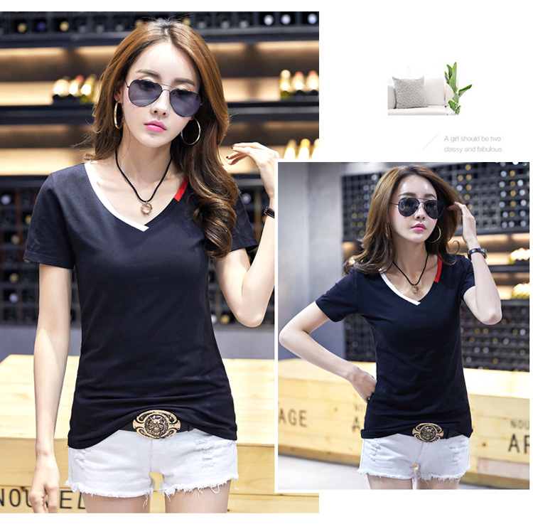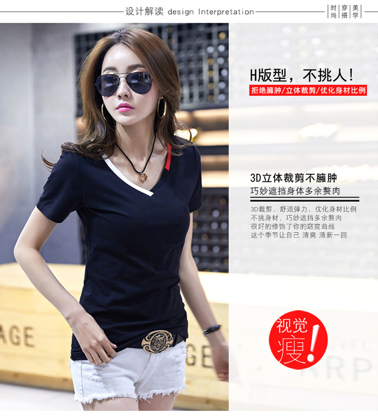 2018夏季純棉V領短袖T恤女新款韓版簡約學生白色修身顯瘦半袖上裝