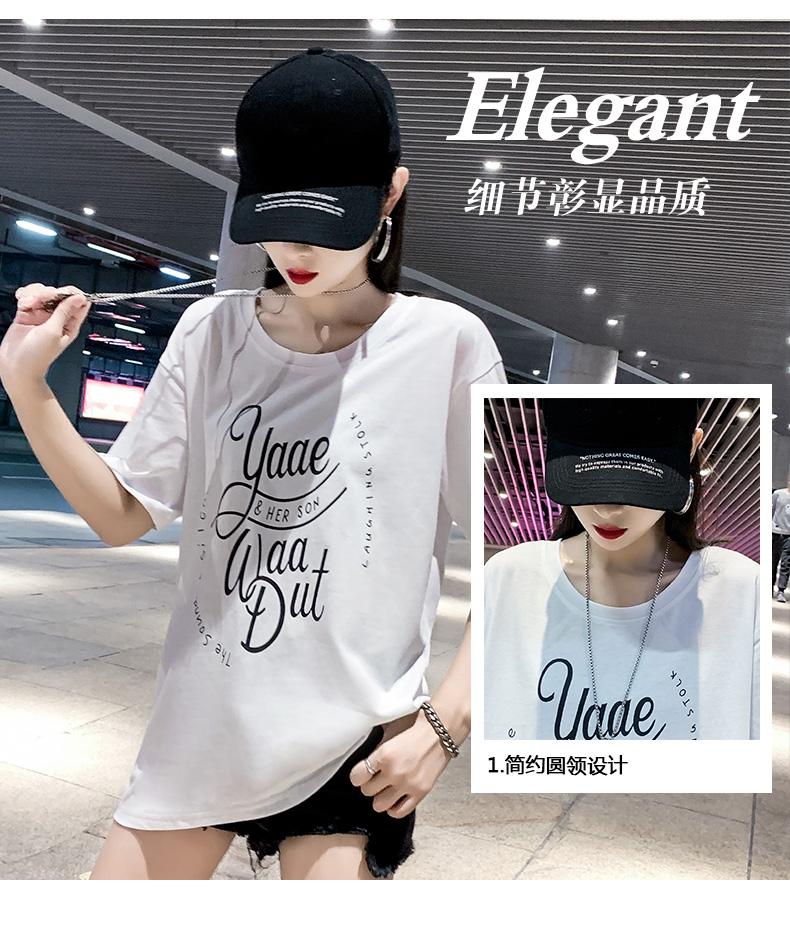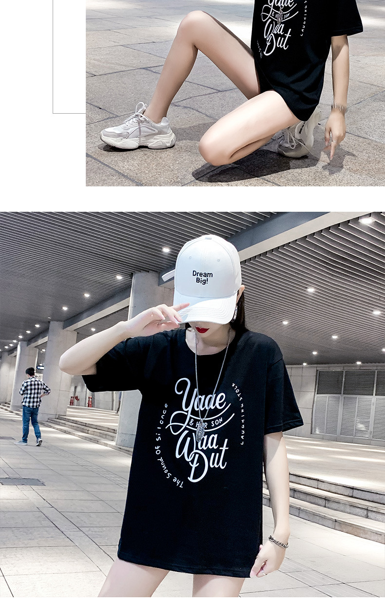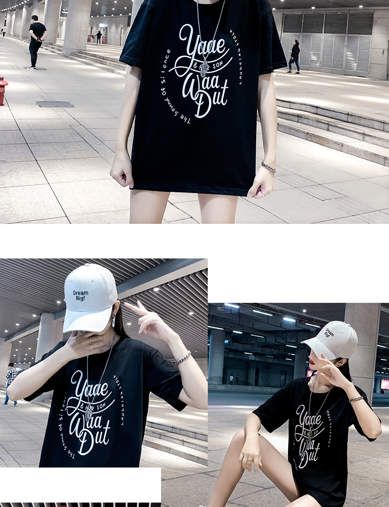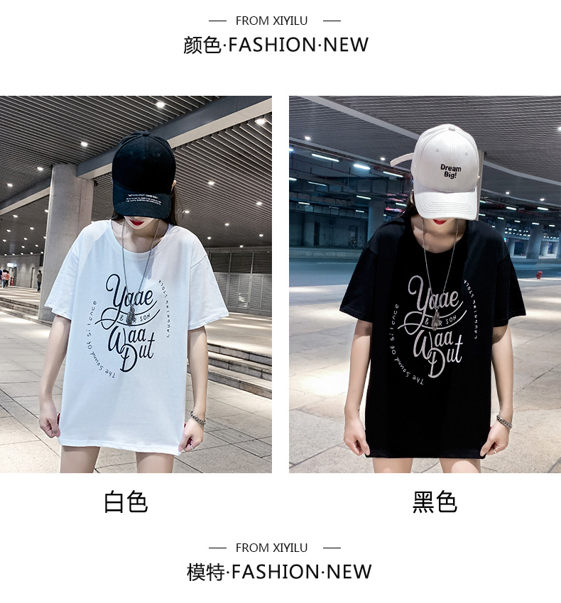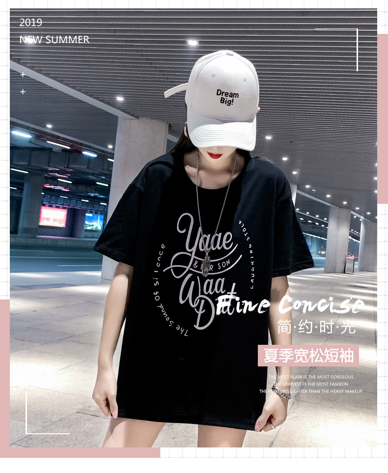 2019新款歐美街頭寬松t恤簡約字母印花短袖女中長款下衣失蹤潮