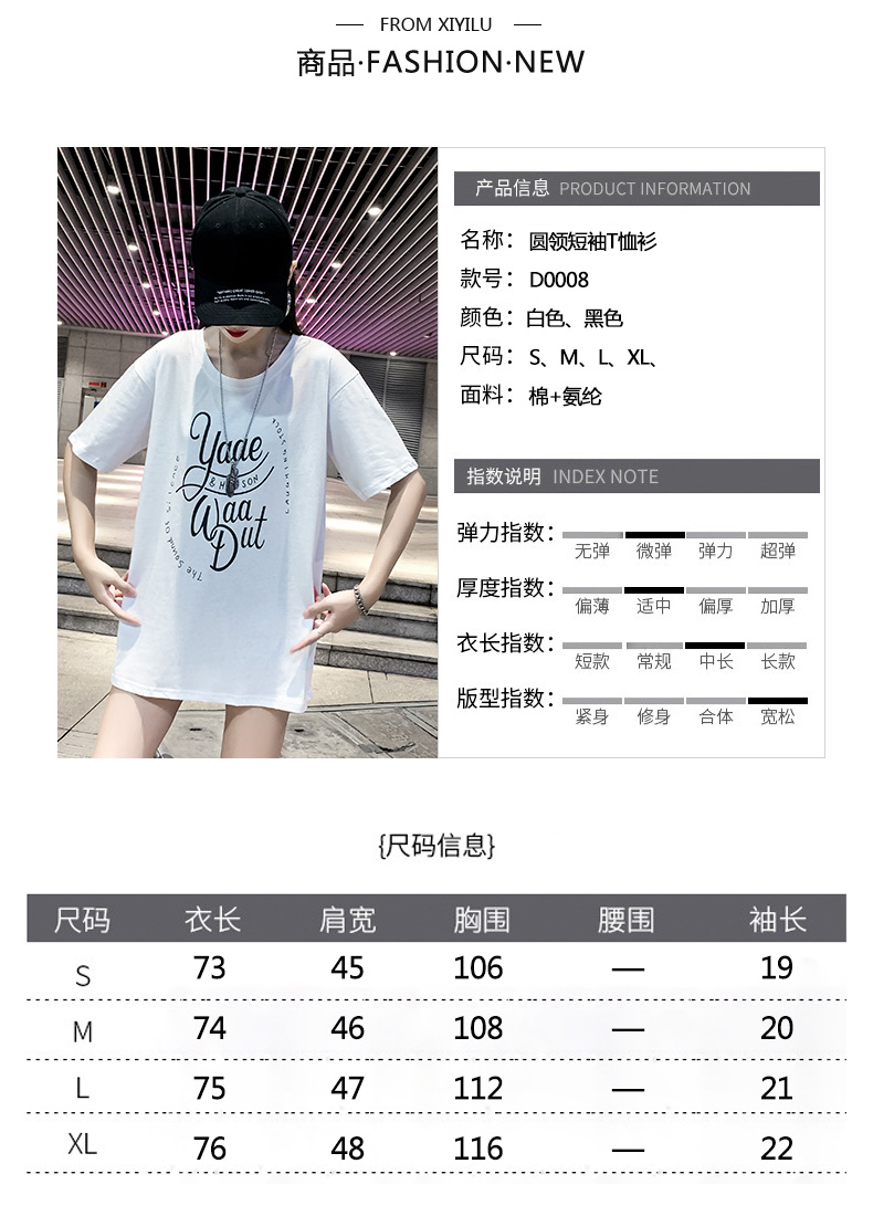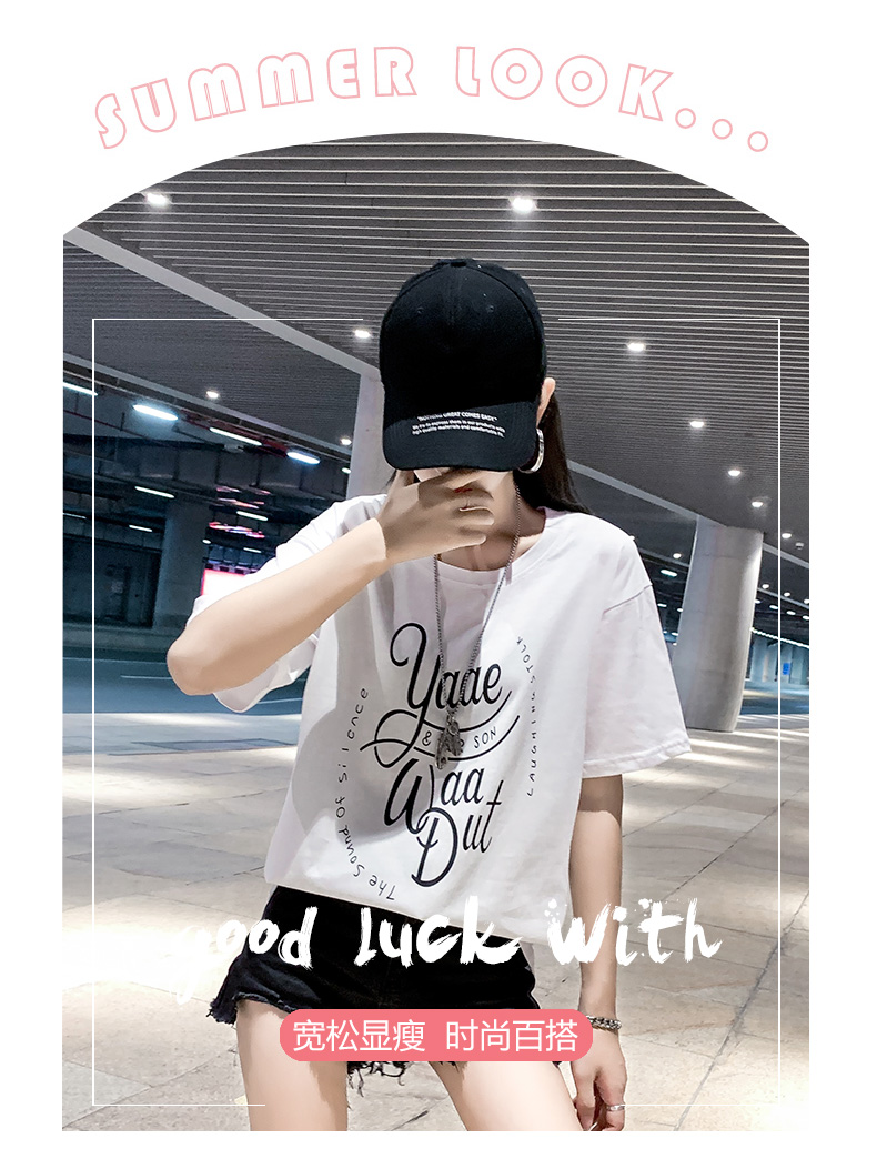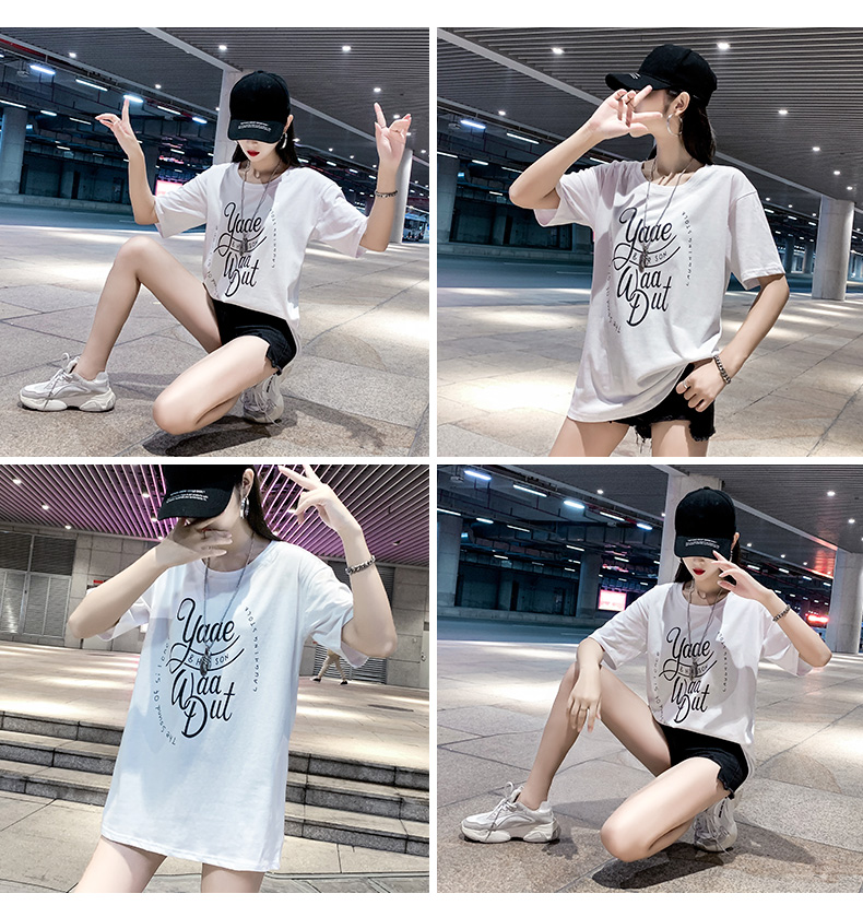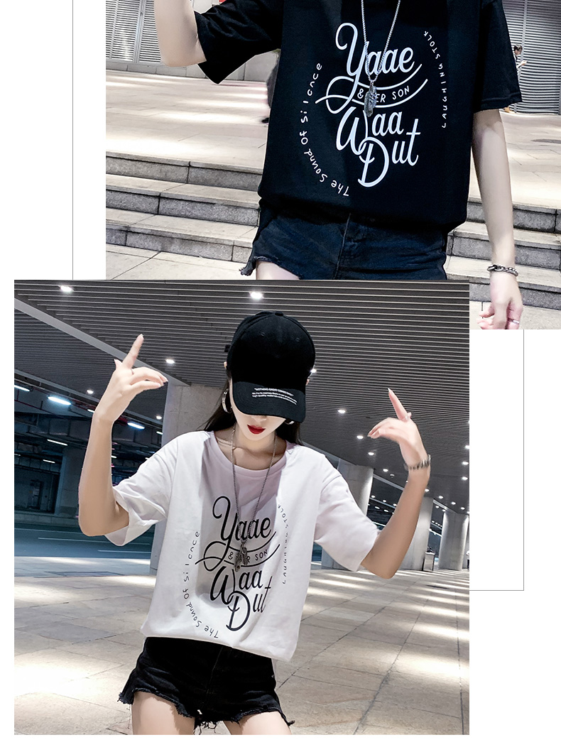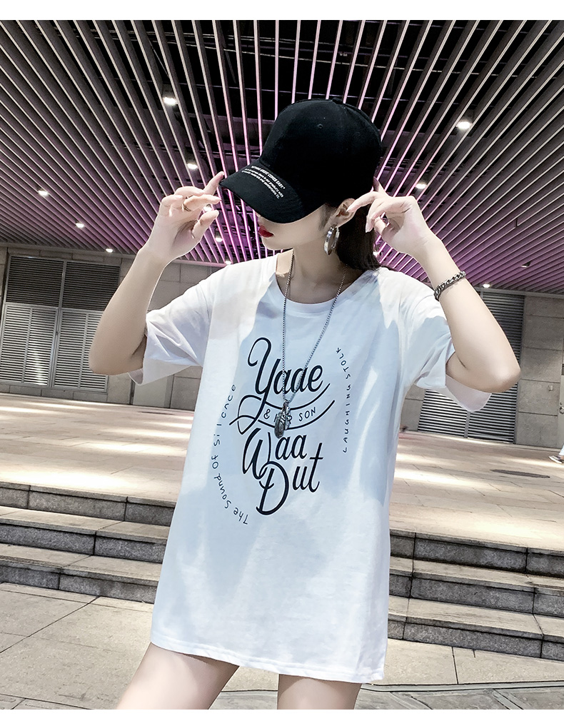 2019新款歐美街頭寬松t恤簡約字母印花短袖女中長款下衣失蹤潮