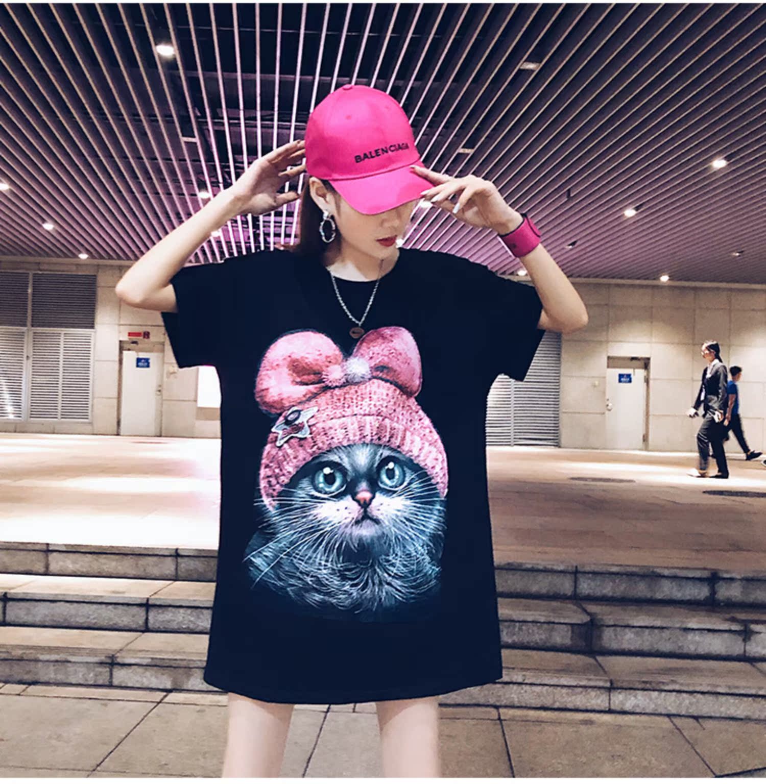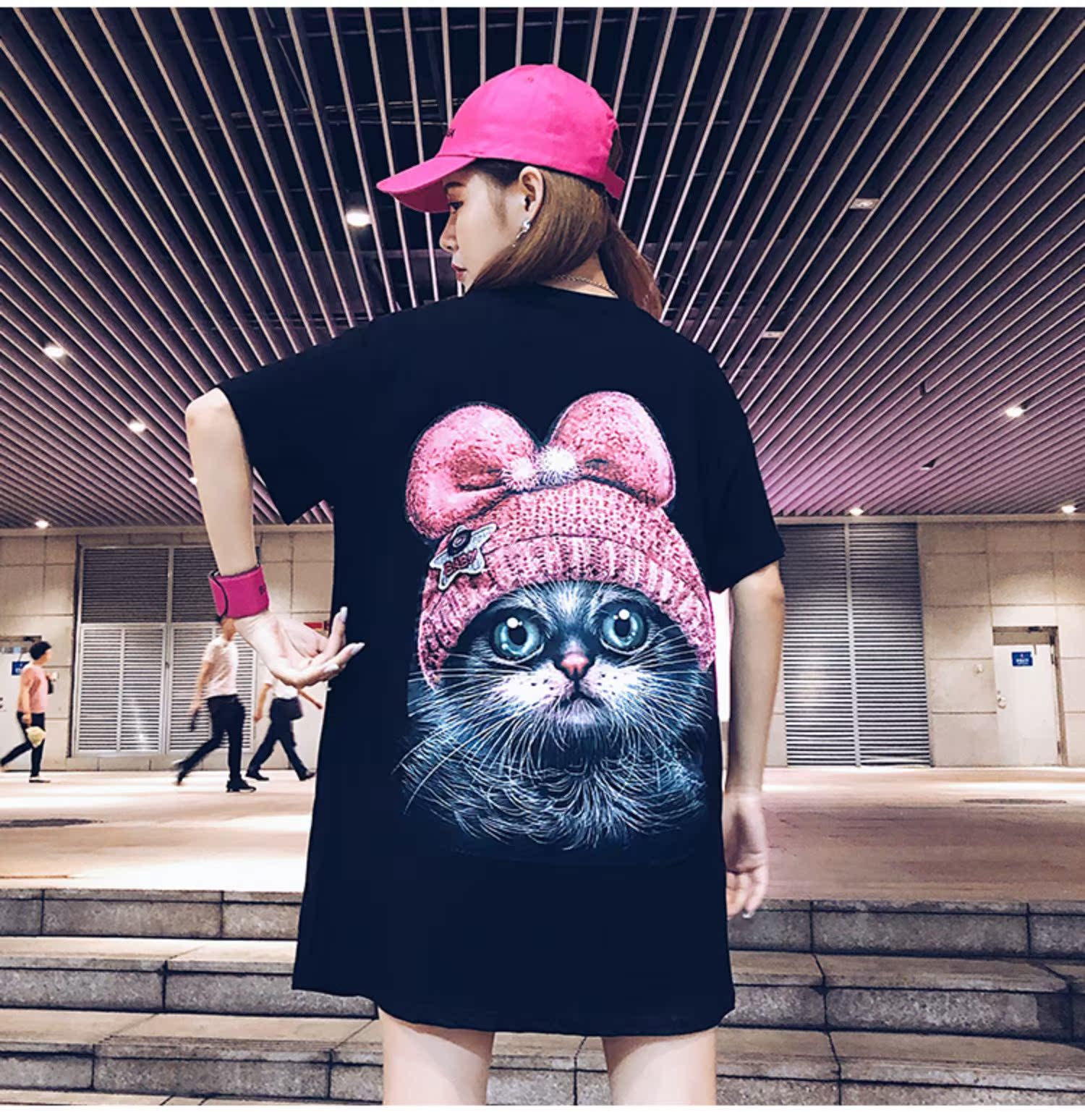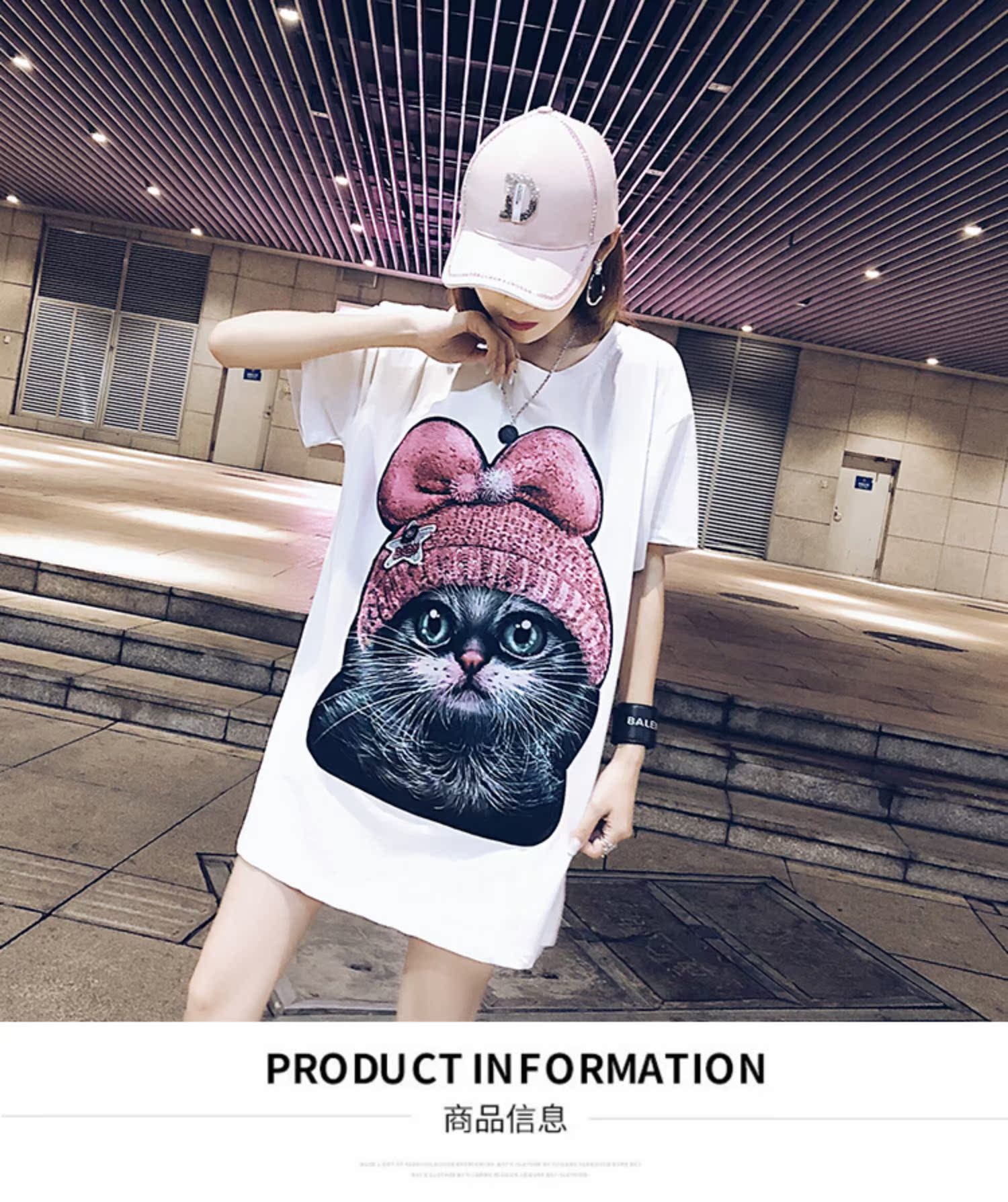 2019夏天新款寬松韓版中長款時尚t恤女學生短袖動物卡通上衣酷潮