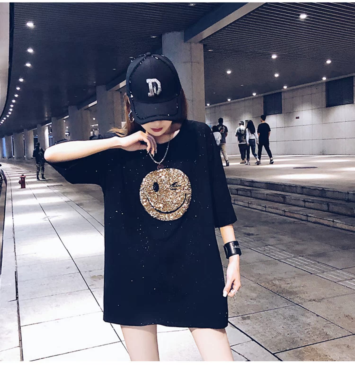 2019夏天新款寬松韓版中長款卡通t恤女學生短袖人物頭像上衣酷潮