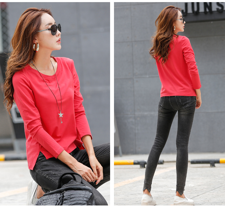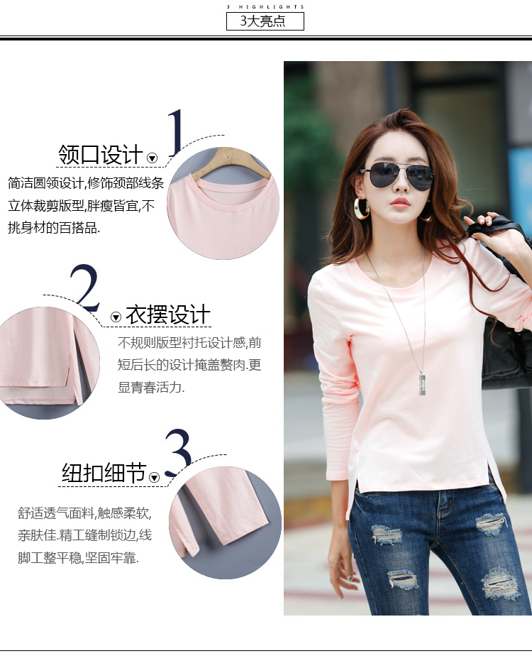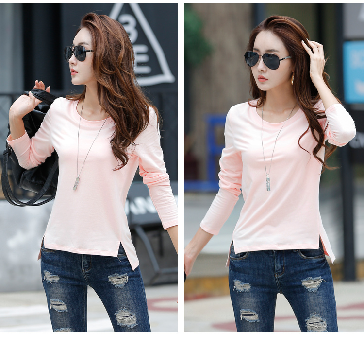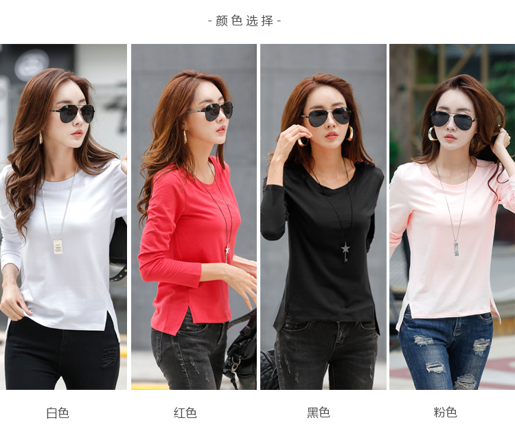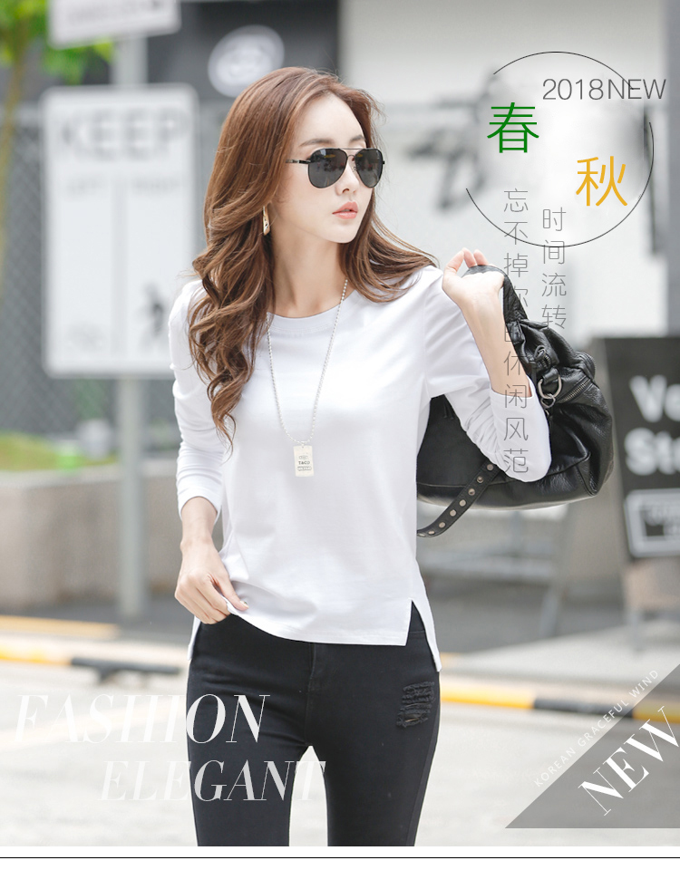 2019韓版春秋新款純棉圓領長袖T恤修身顯瘦學生打底衫女款上衣潮