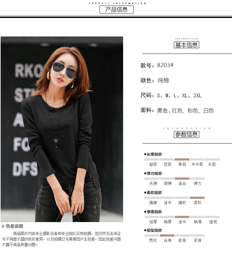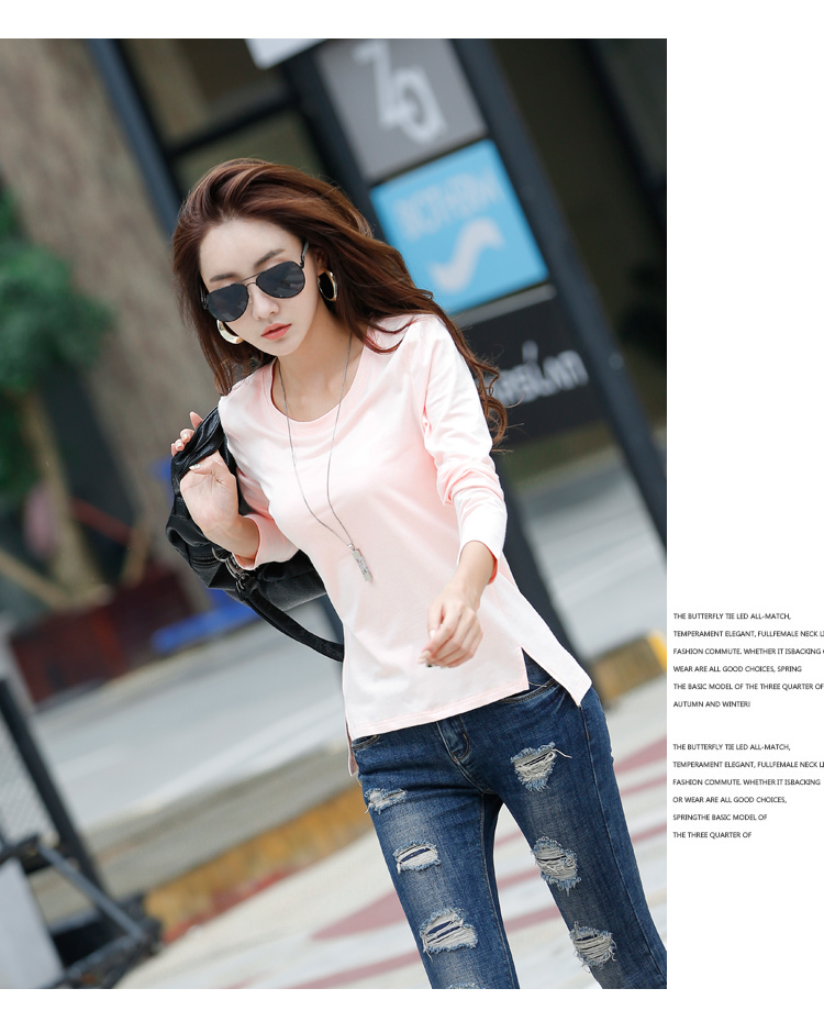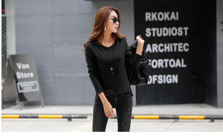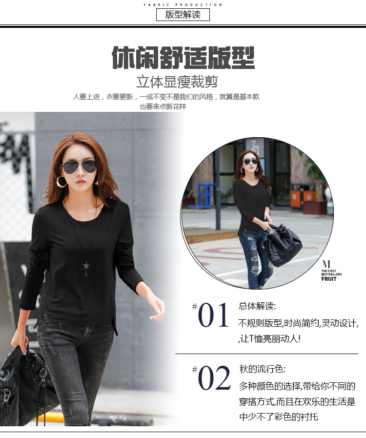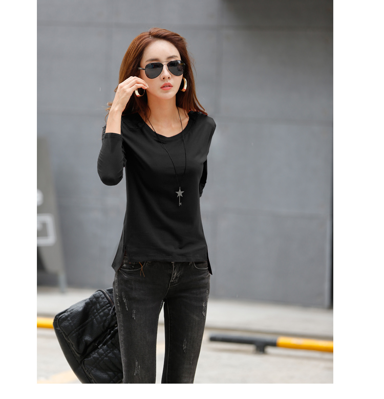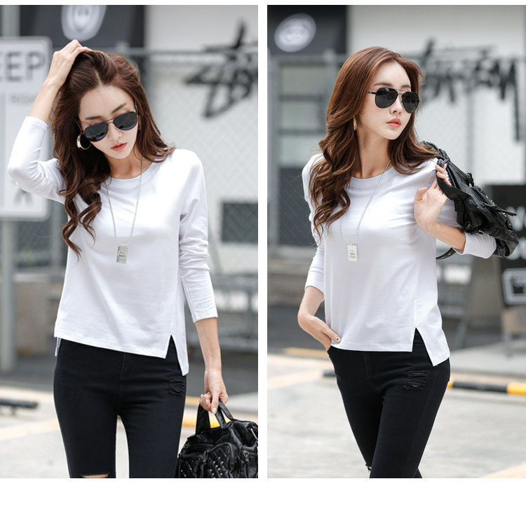 2019韓版春秋新款純棉圓領長袖T恤修身顯瘦學生打底衫女款上衣潮