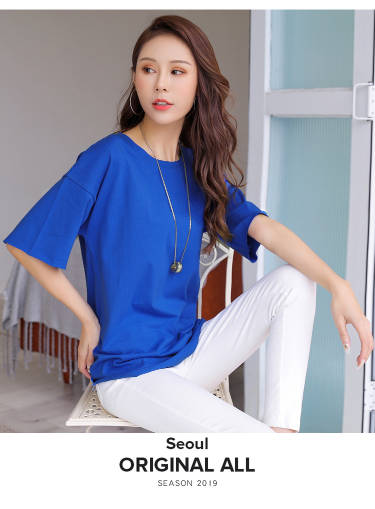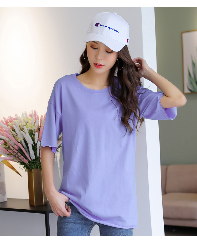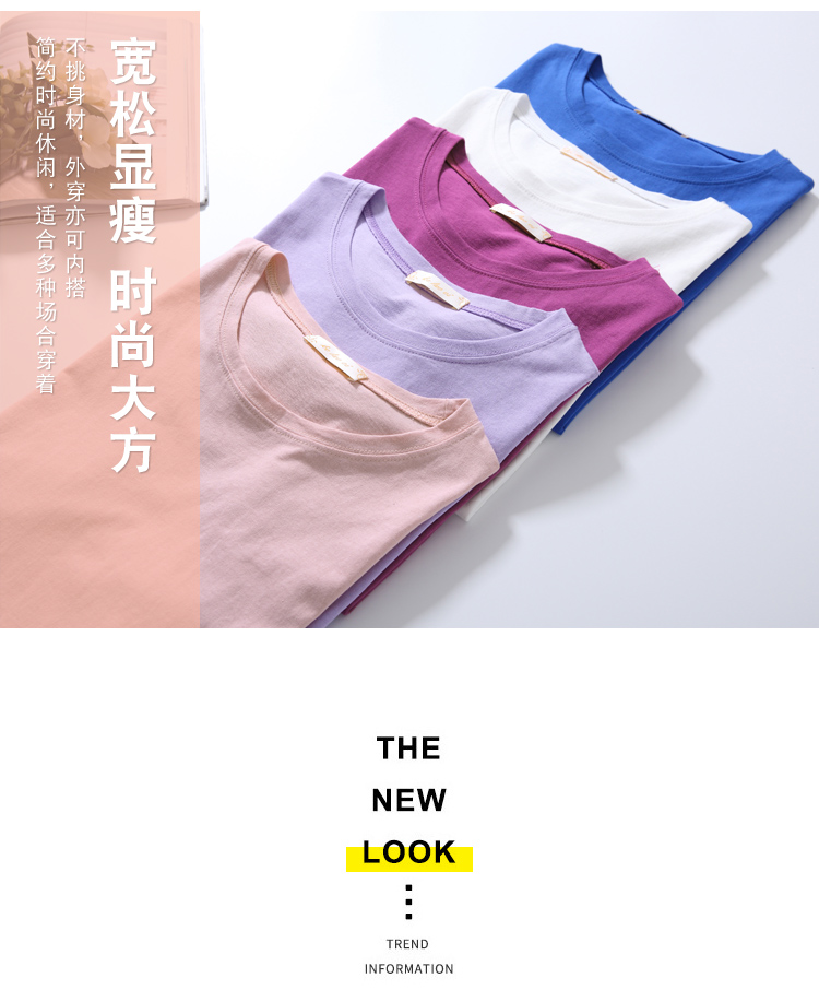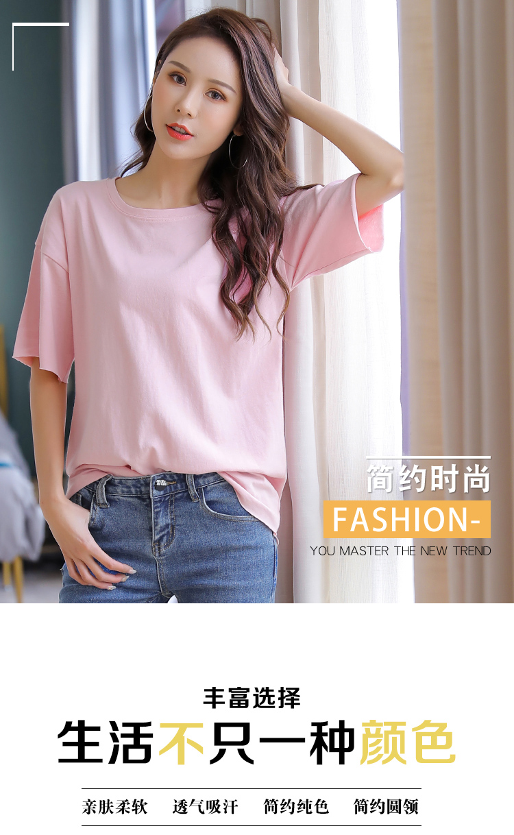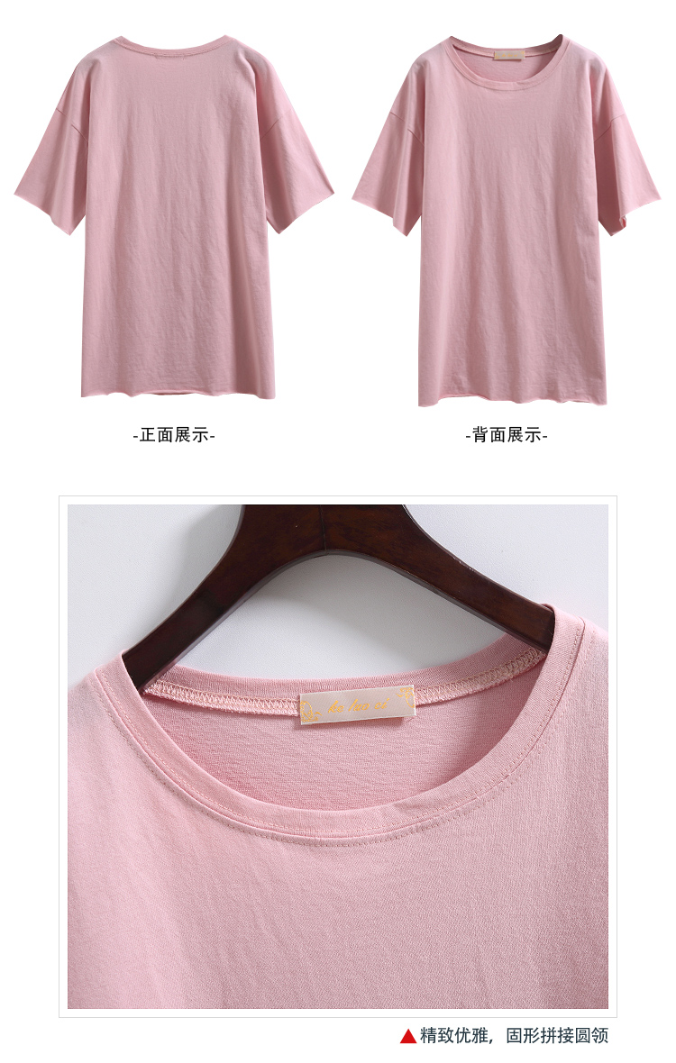 2019夏季寬松大碼純色棉圓領T恤衫新款韓版粉色短袖上衣簡約百搭