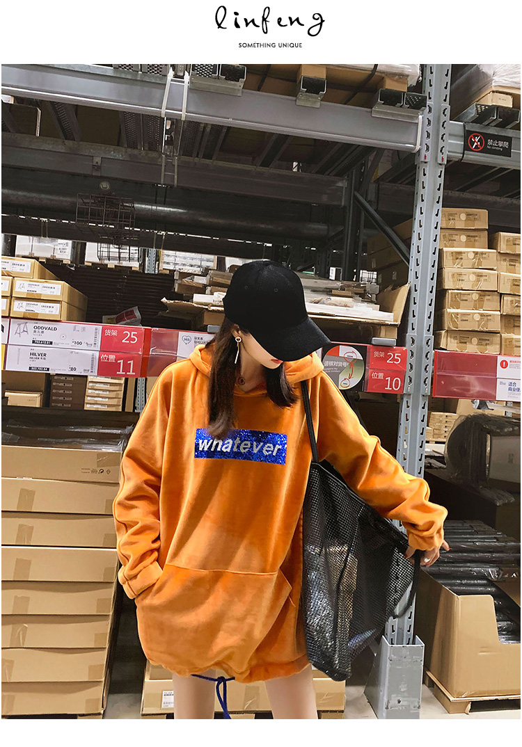 2018新款ins超火衣服衛衣女冬cec外套雙面金絲絨加絨加厚港味風