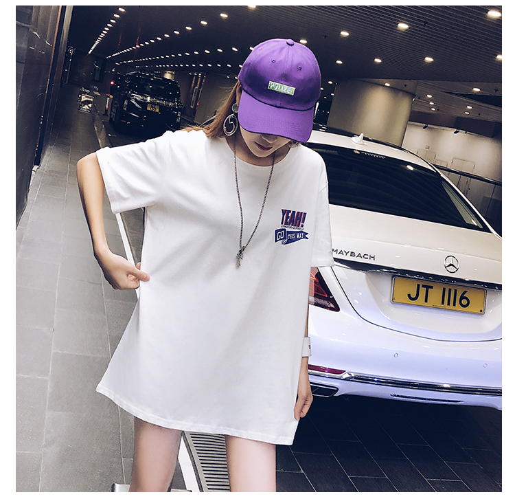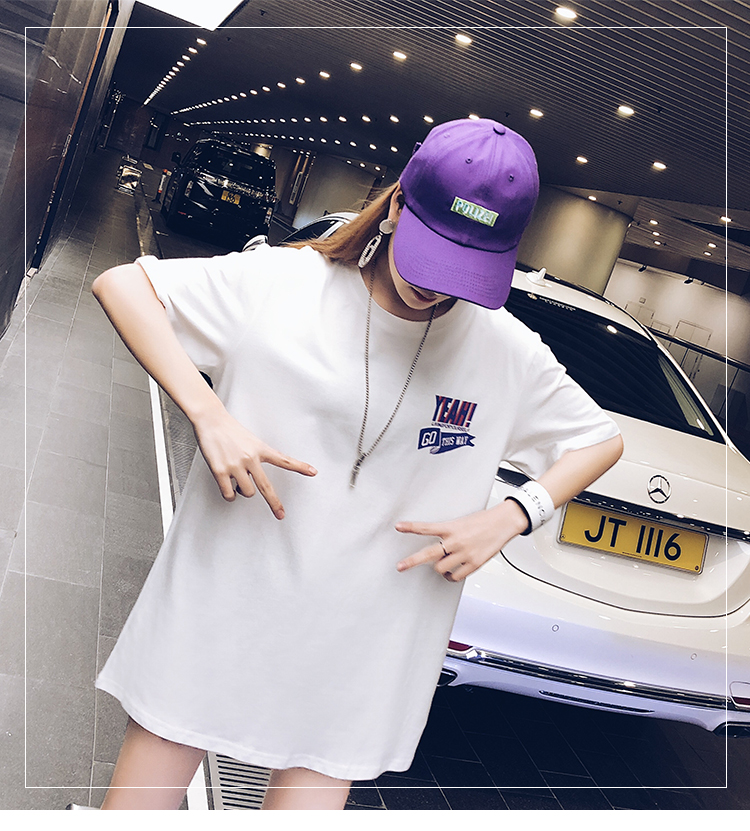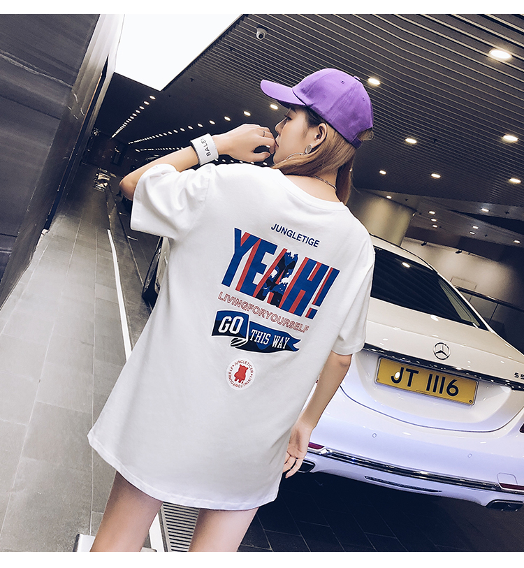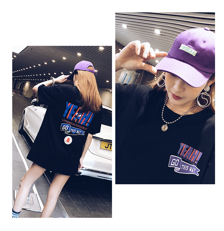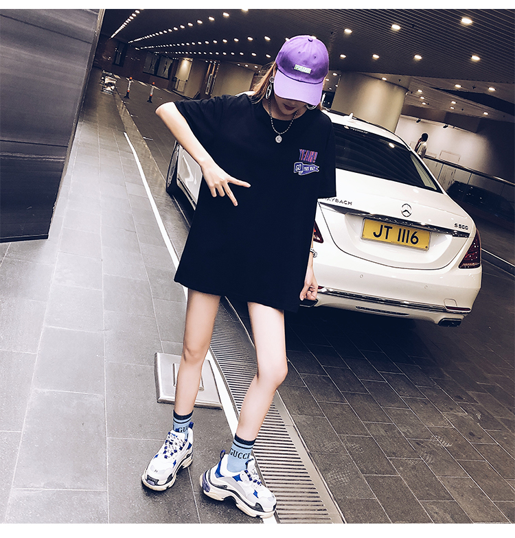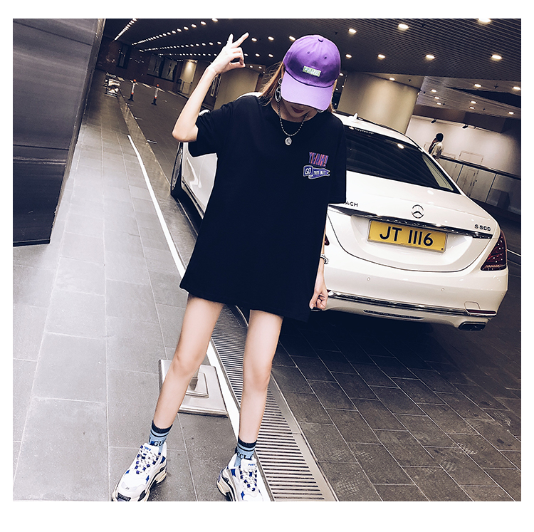 2019早春黑色t恤女寬松短袖ins網紅同款衣服港風中長款大體恤上衣