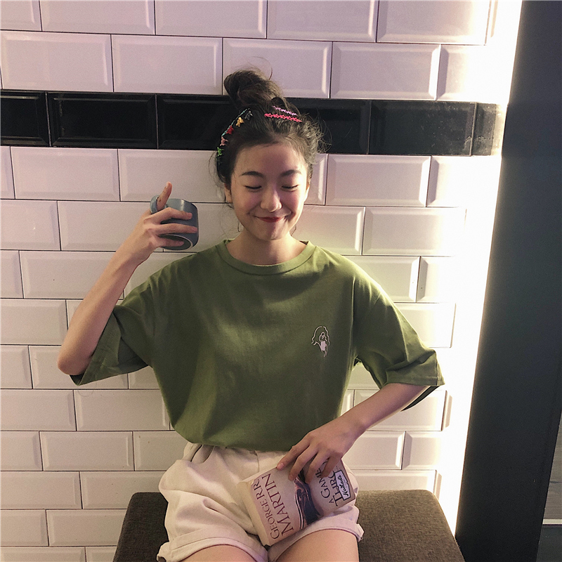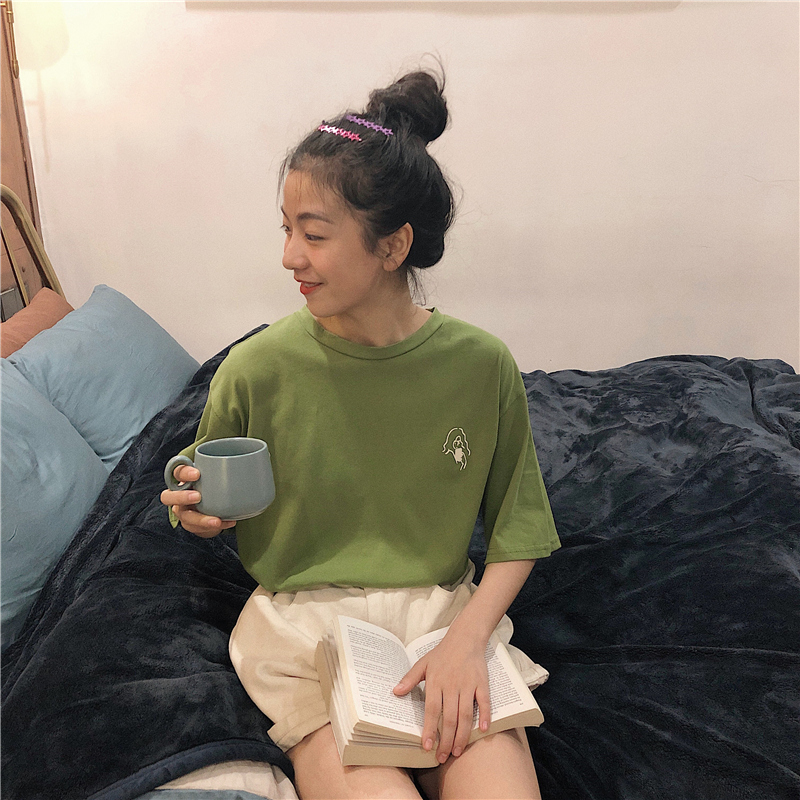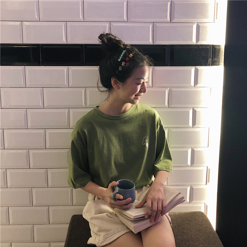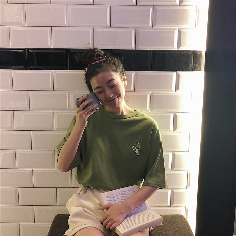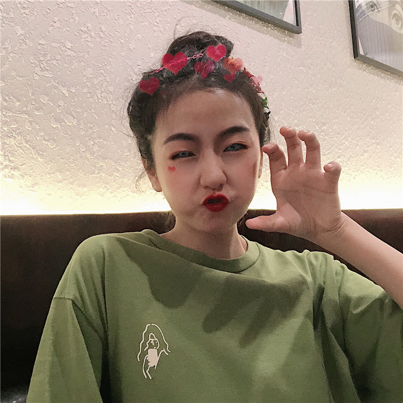 超火cec網紅t恤女短袖ins潮韓版學生寬松牛油果抹茶綠mschf上衣服