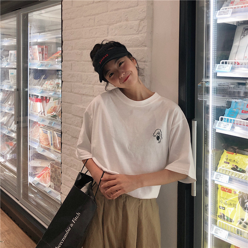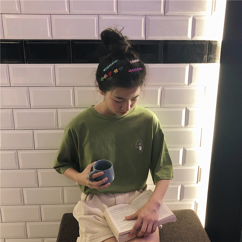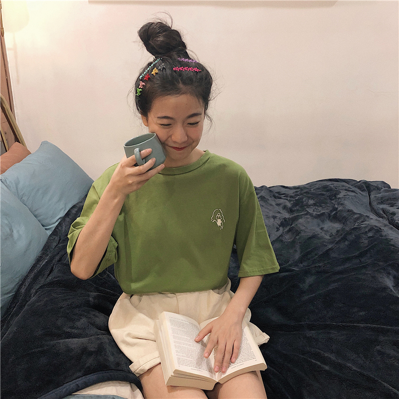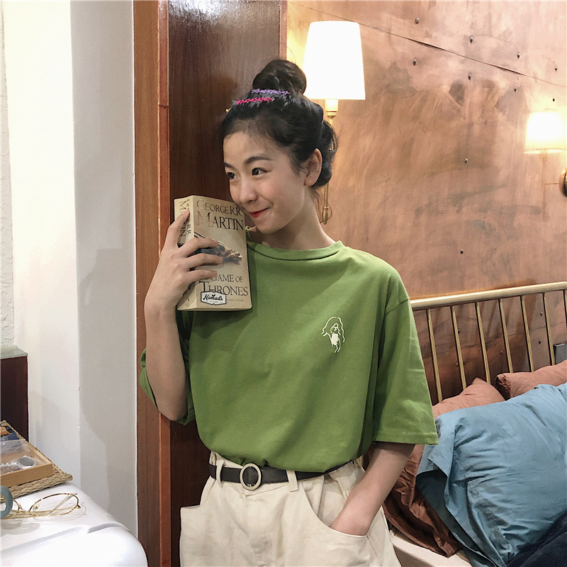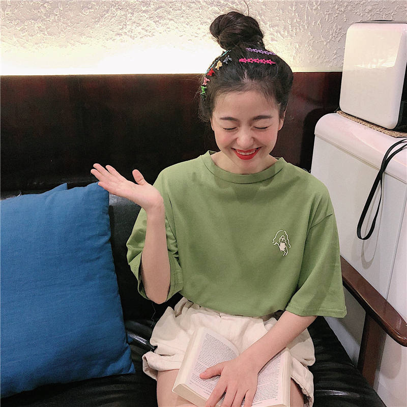 超火cec網紅t恤女短袖ins潮韓版學生寬松牛油果抹茶綠mschf上衣服