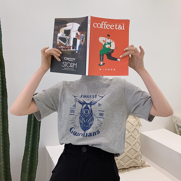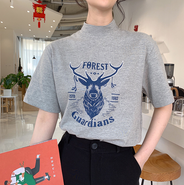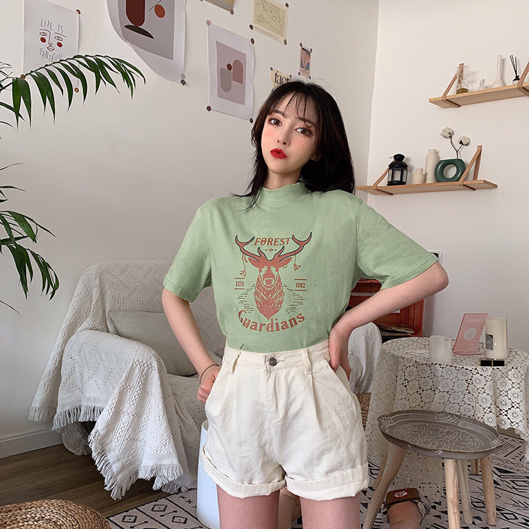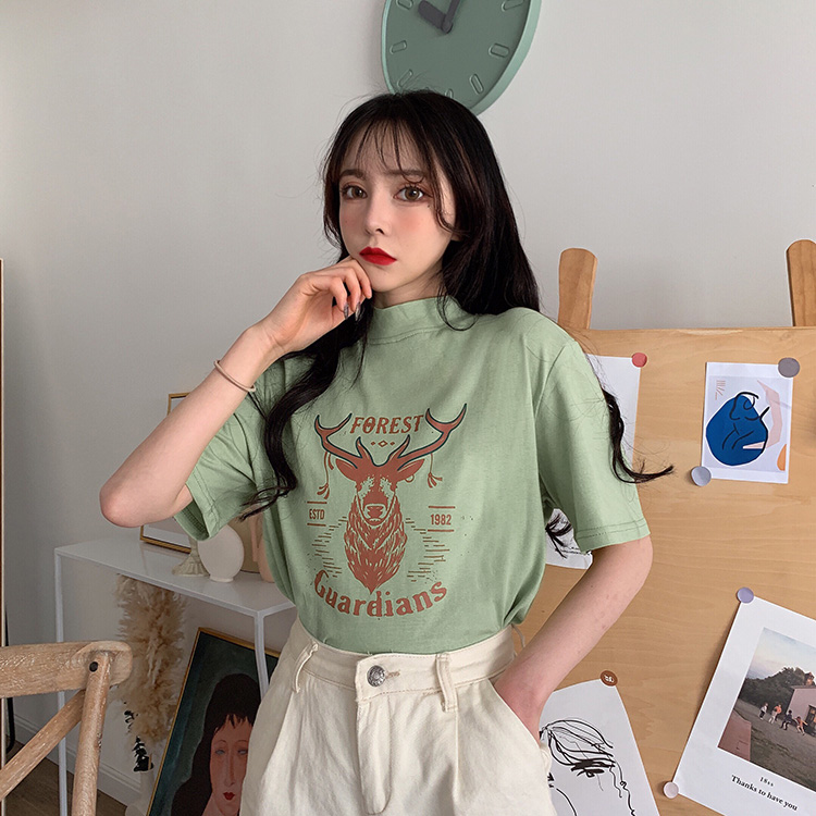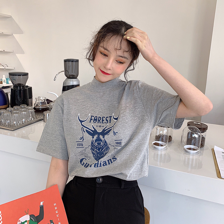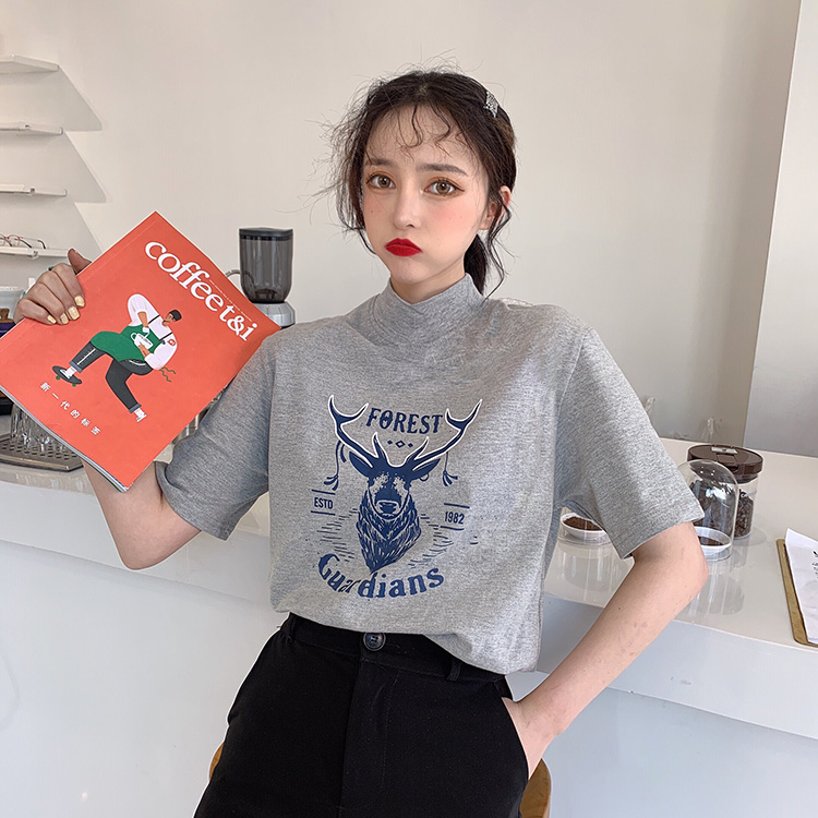 2019新款韓版百搭寬松超火cec小高領短袖t恤女學生ins上衣服?潮