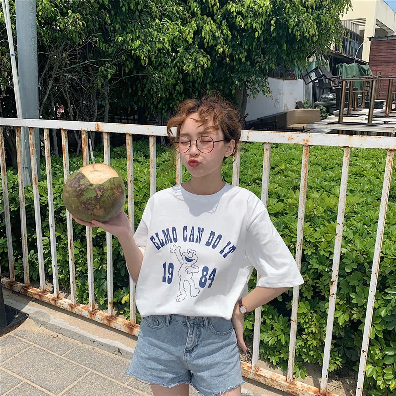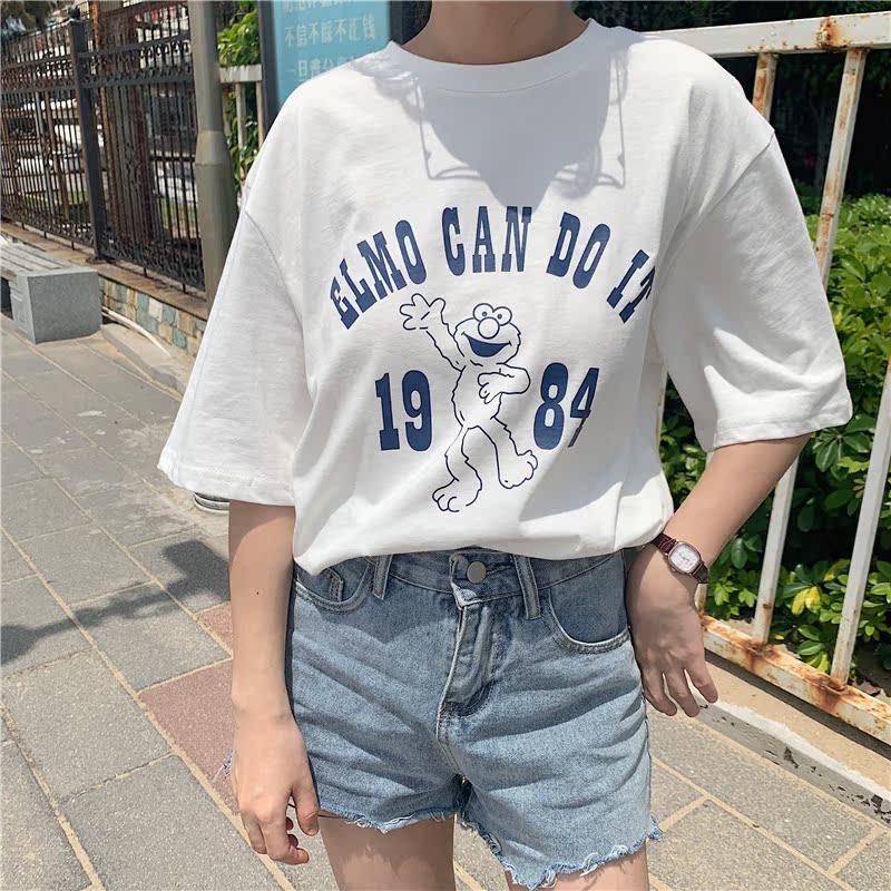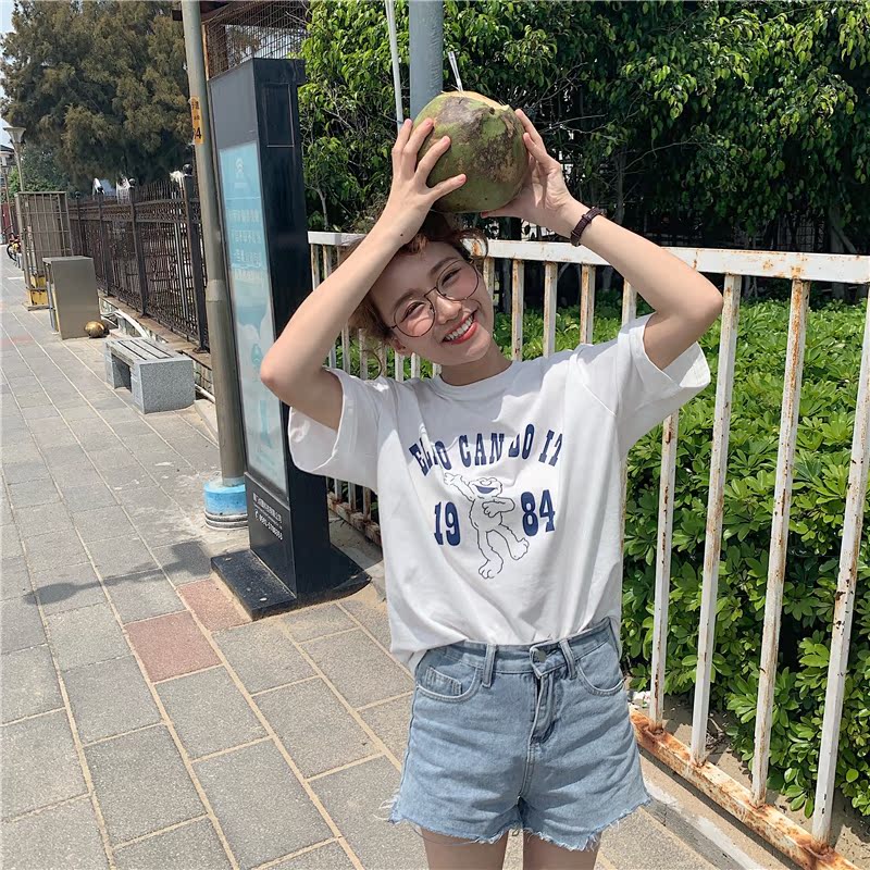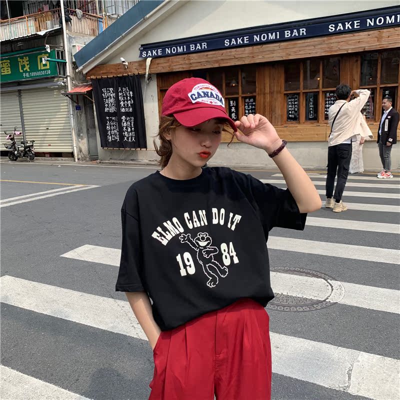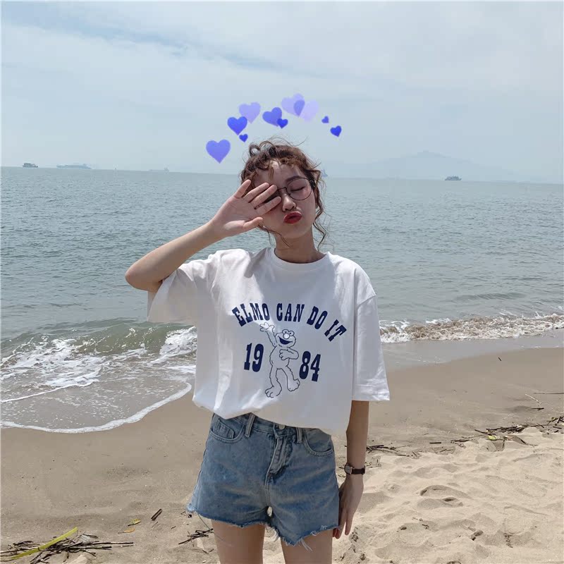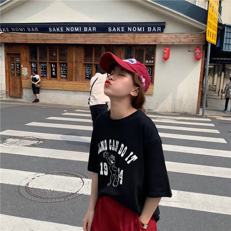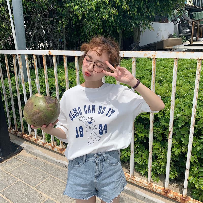 超火cec純棉t恤女短袖原宿風網紅百搭喪系怪味慵懶風ins上衣服潮