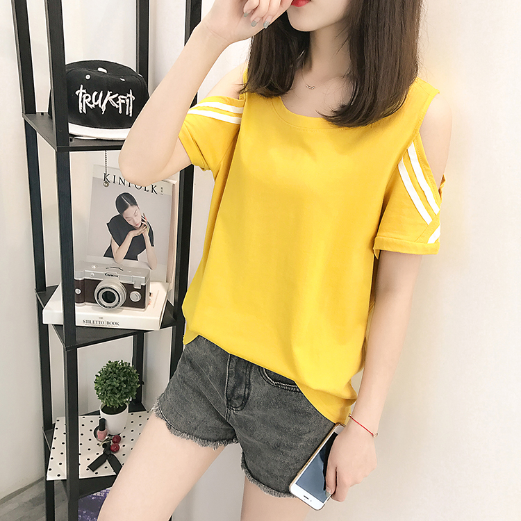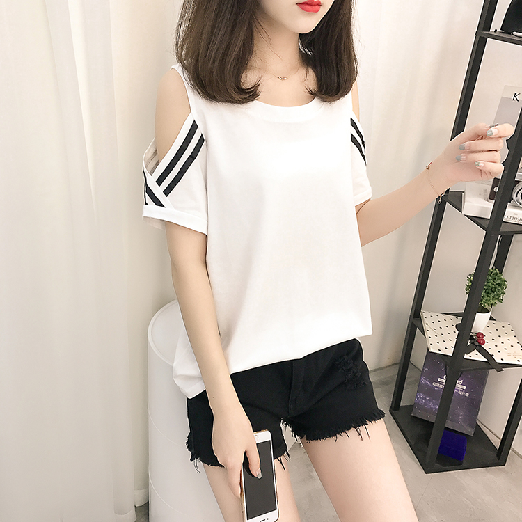2019夏裝韓版新款純棉半袖學生露肩上衣ulzzang百搭寬松短袖t恤女
