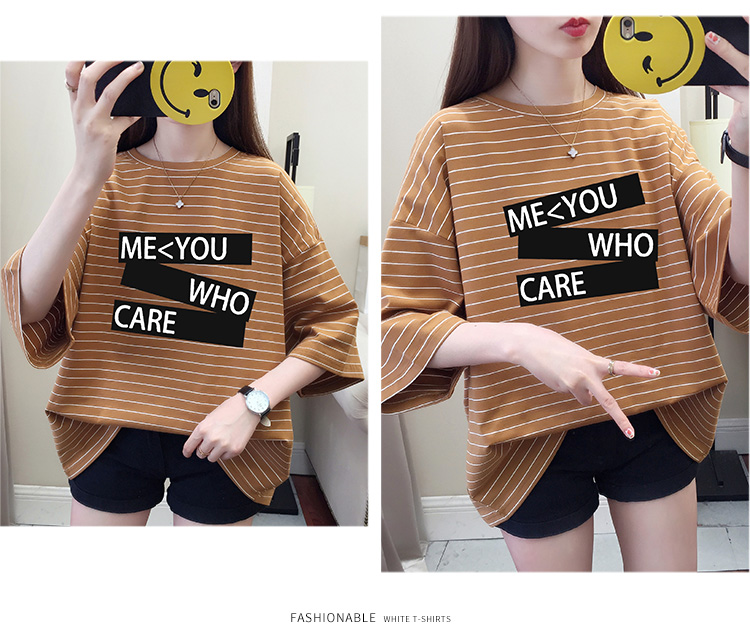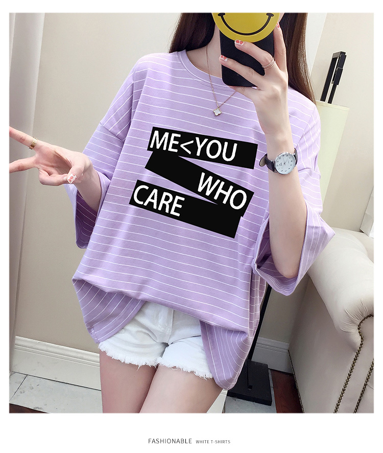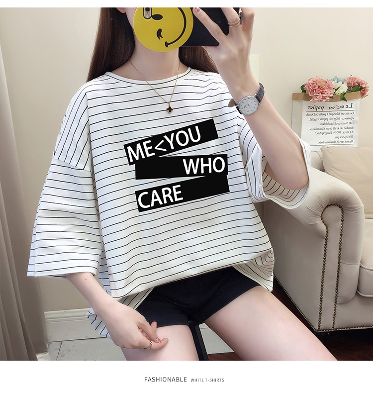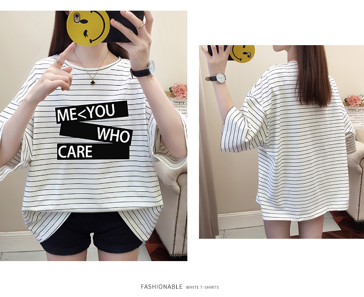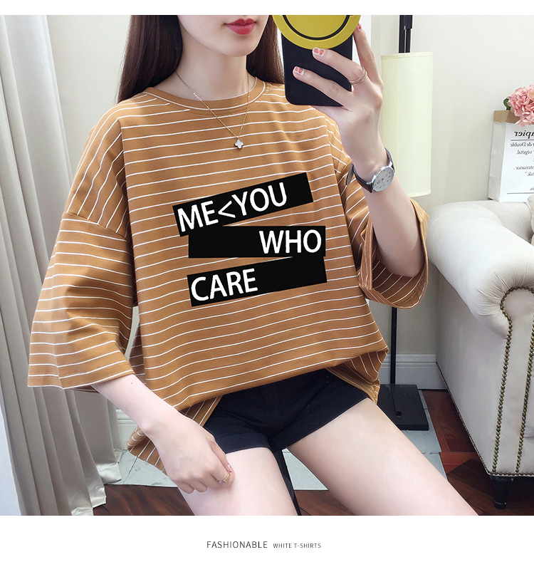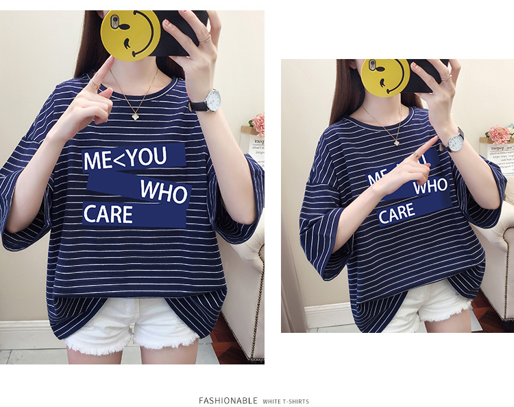 2019新款夏裝韓版學生條紋半袖ulzzang上衣服百搭寬松短袖T恤女潮