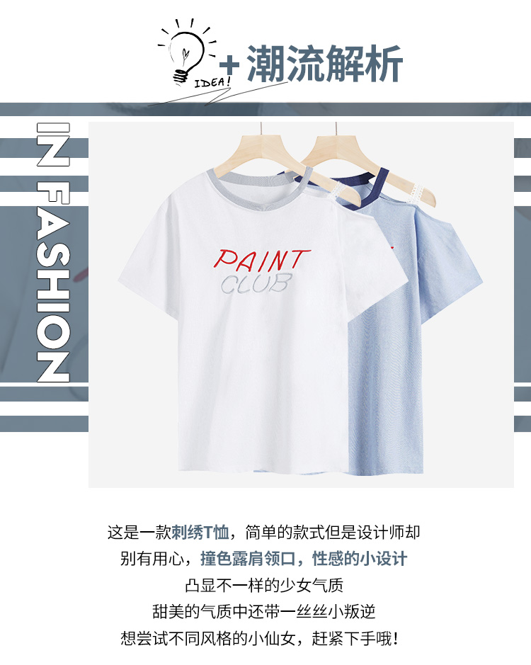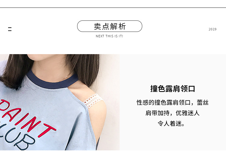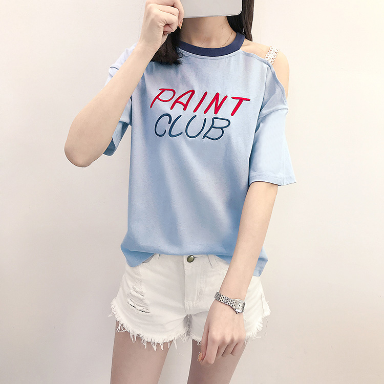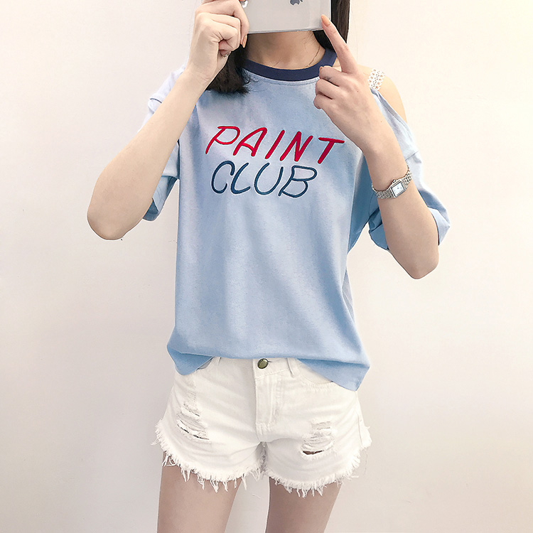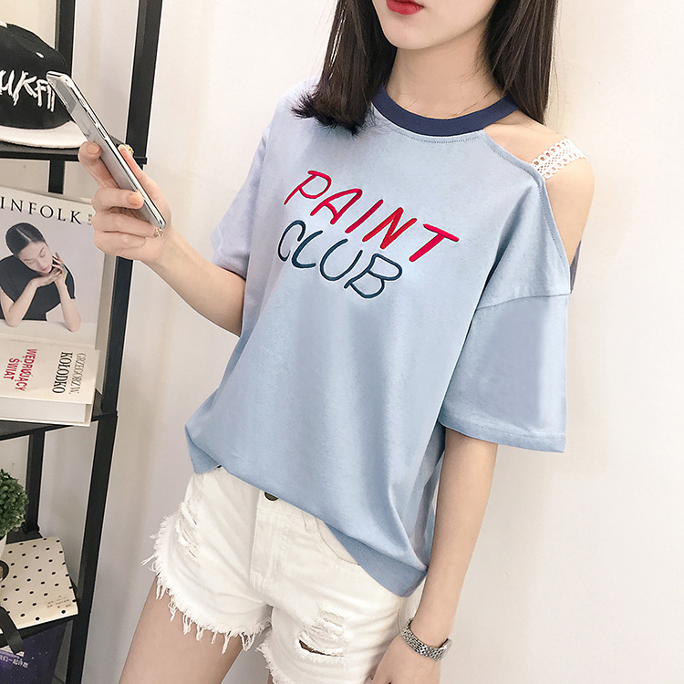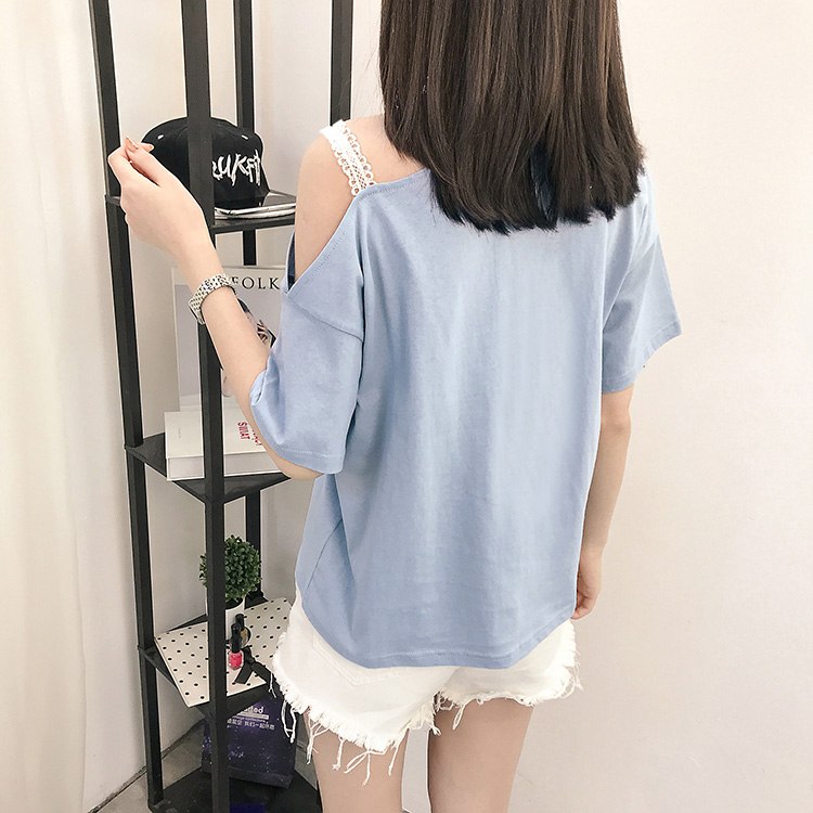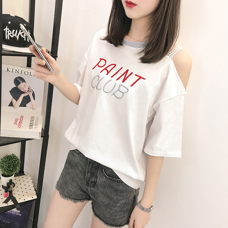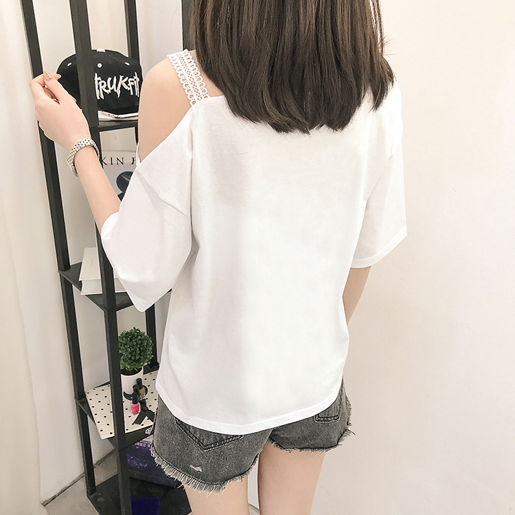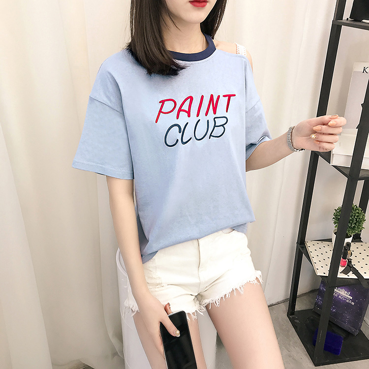 2019新款韓版學生半袖小心機露肩上衣服百搭寬松純棉短袖t恤女潮