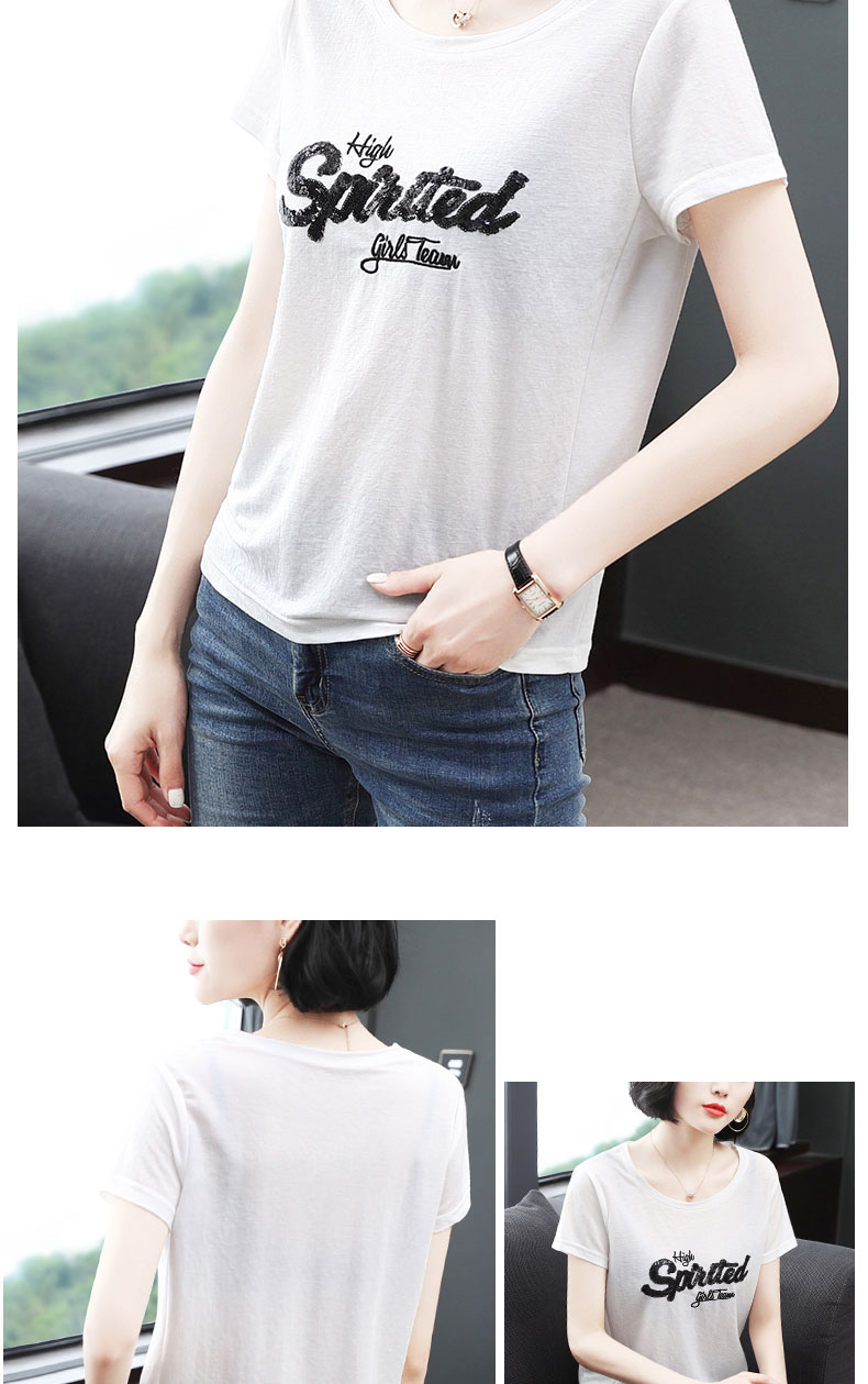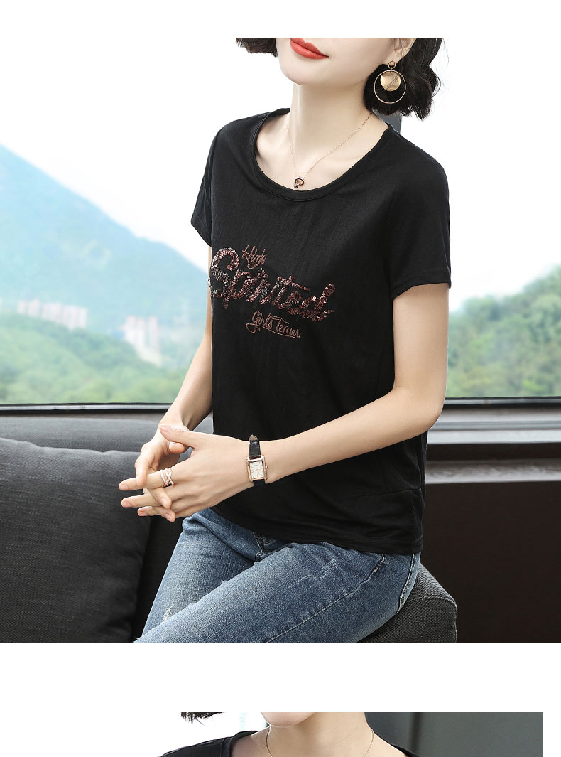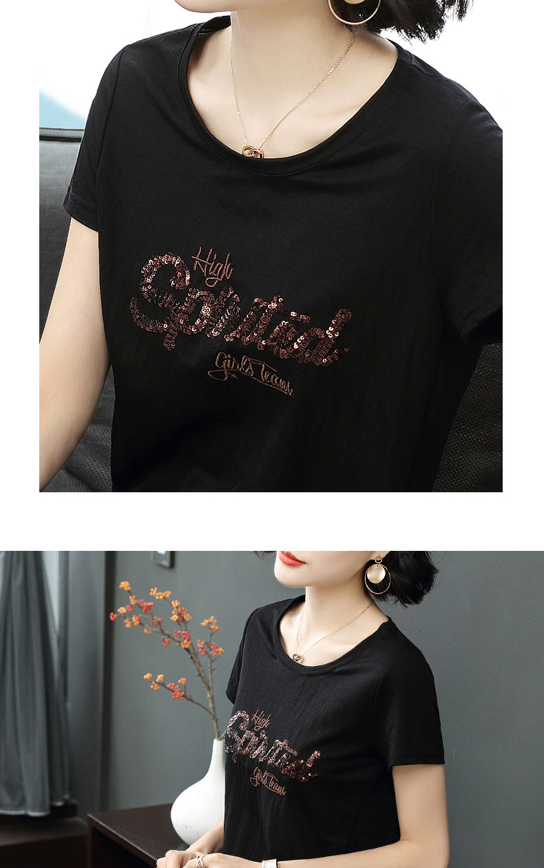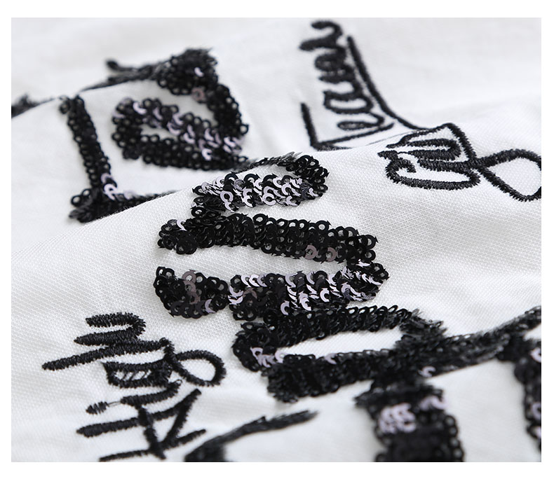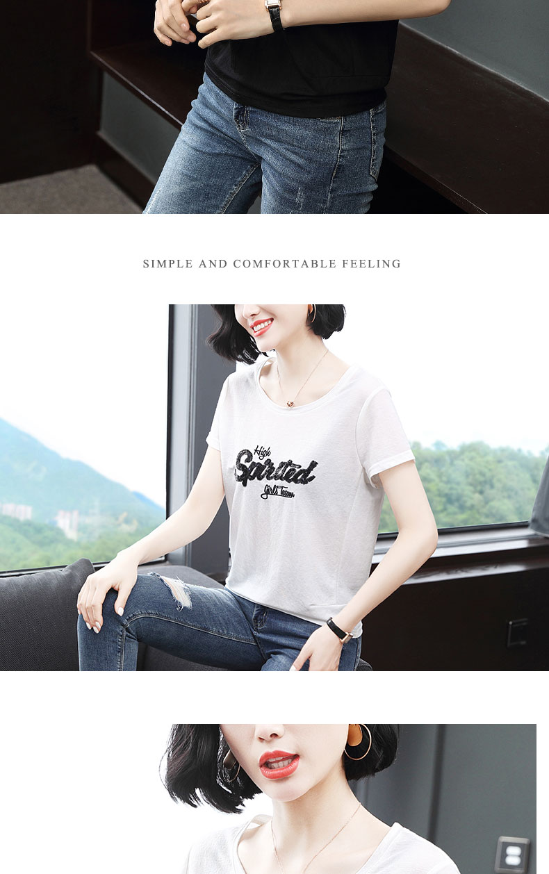 2019新款女裝夏款刺繡t恤女短袖寬松韓版亮片上衣百搭打底衫衣服