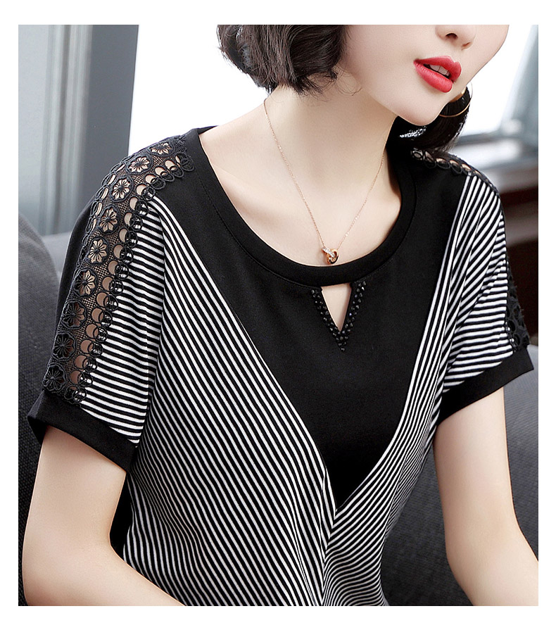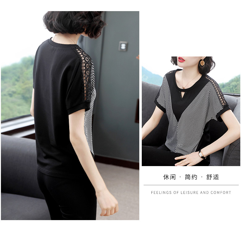 2019新款潮拼接條紋t恤女短袖超火cec寬松大碼胖mm蝙蝠袖上衣夏裝