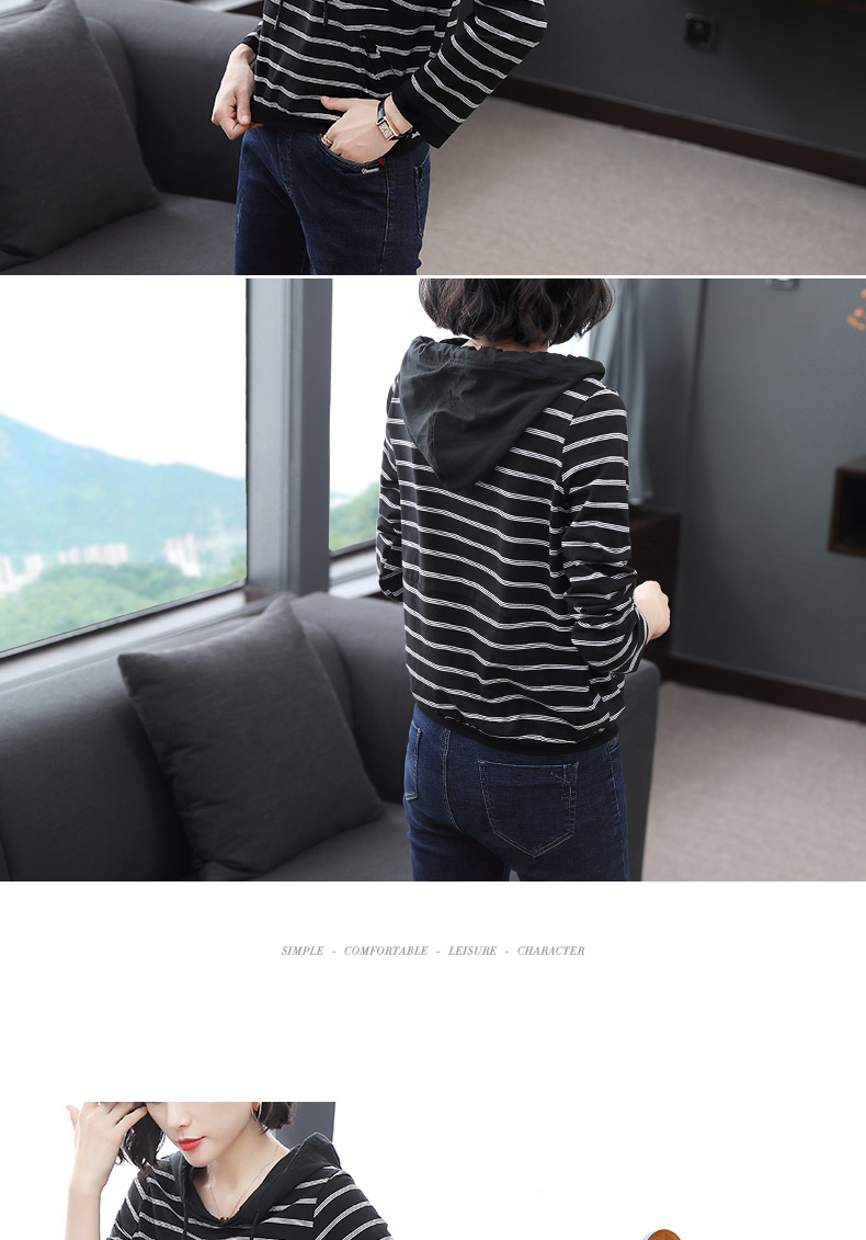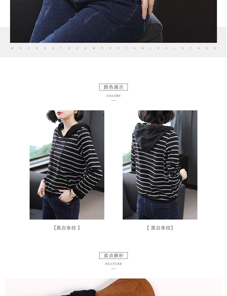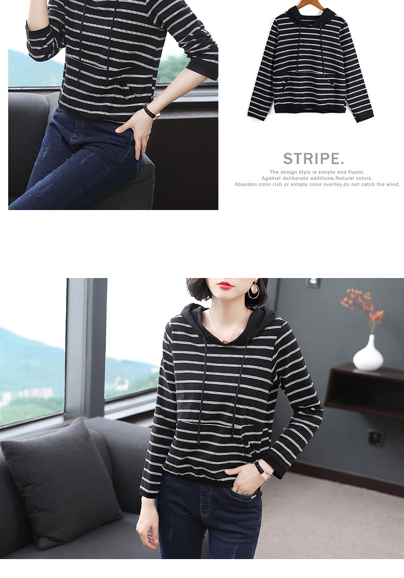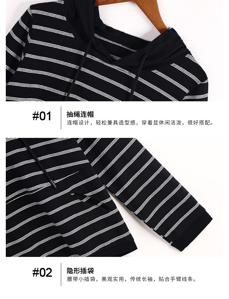 2019新款春裝黑白條紋衛衣女連帽寬松韓版寬松大碼套頭女裝上衣潮