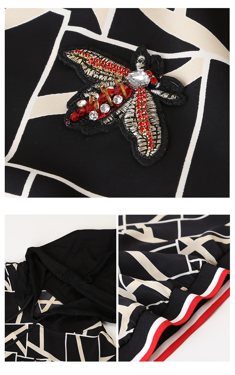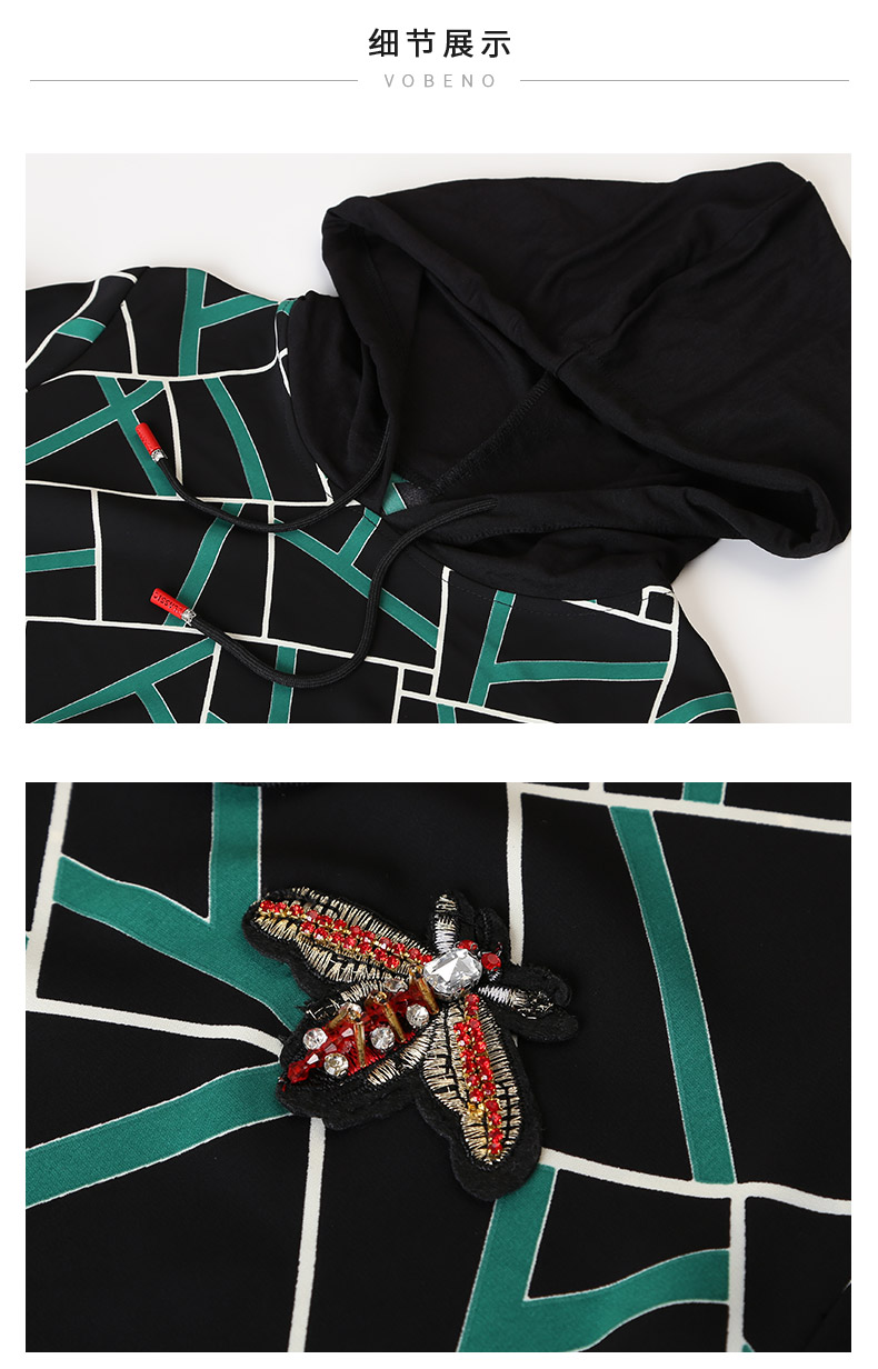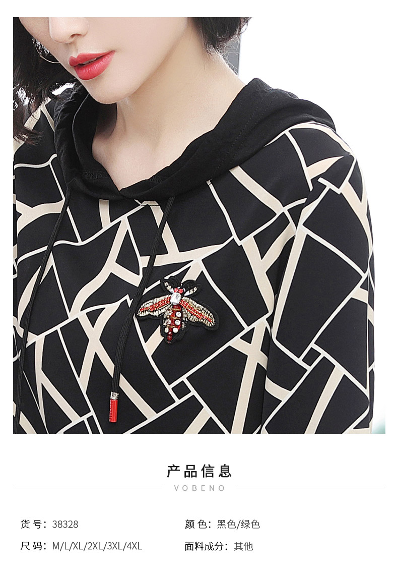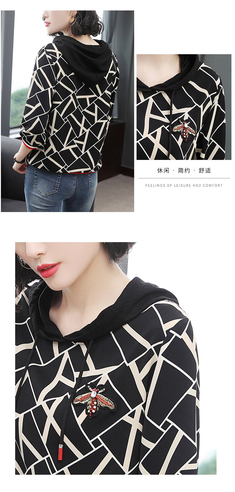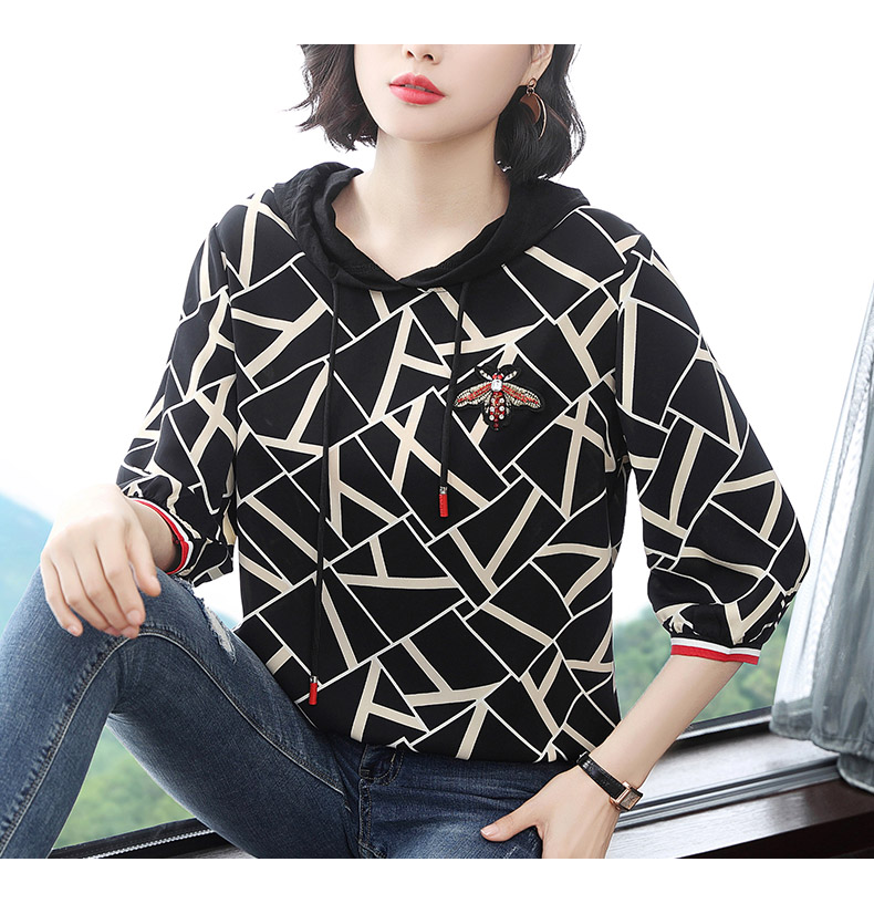2019春裝新款連帽女t恤七分袖薄款衛衣印花雪紡氣質洋氣小衫上衣