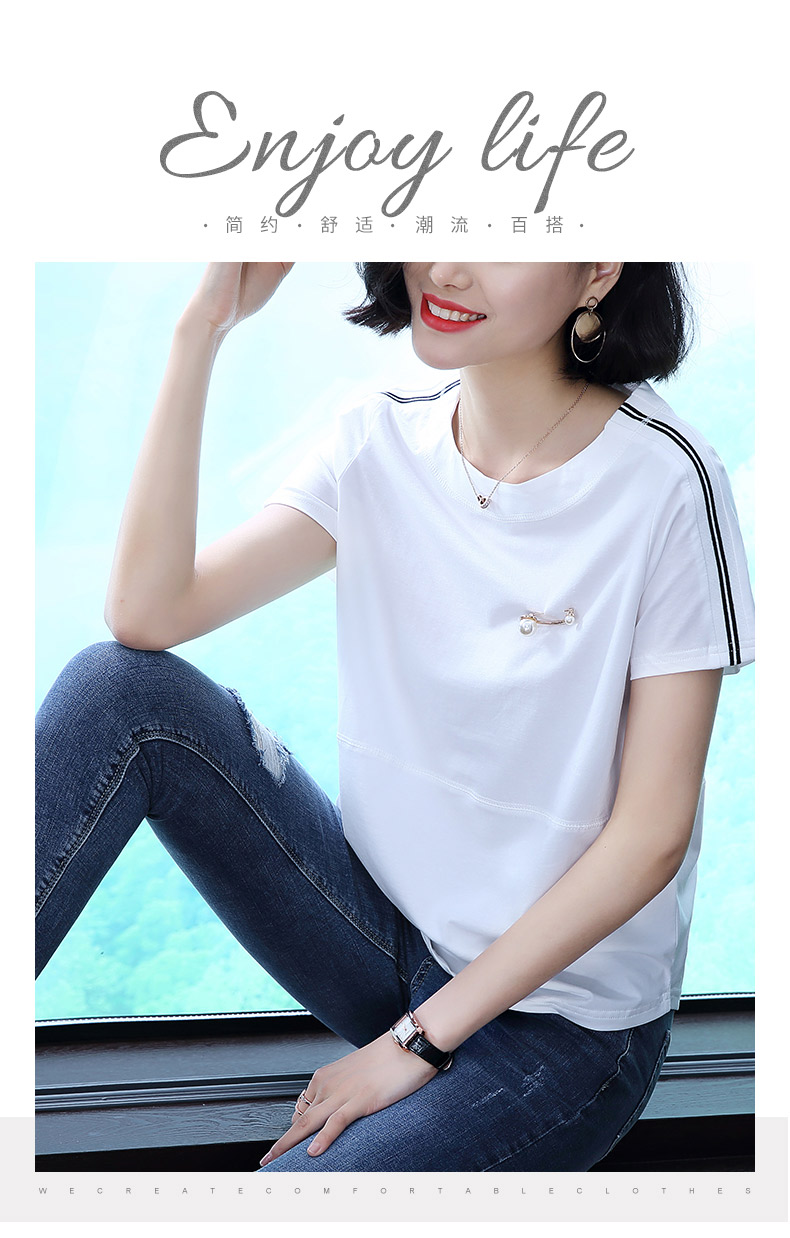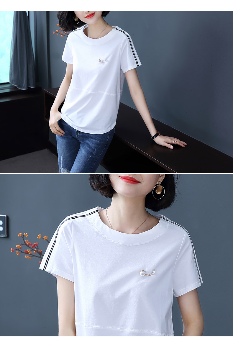 2019夏新款韓版寬松大碼胖mm上衣 純棉圓領拼接短袖t恤女裝打底衫