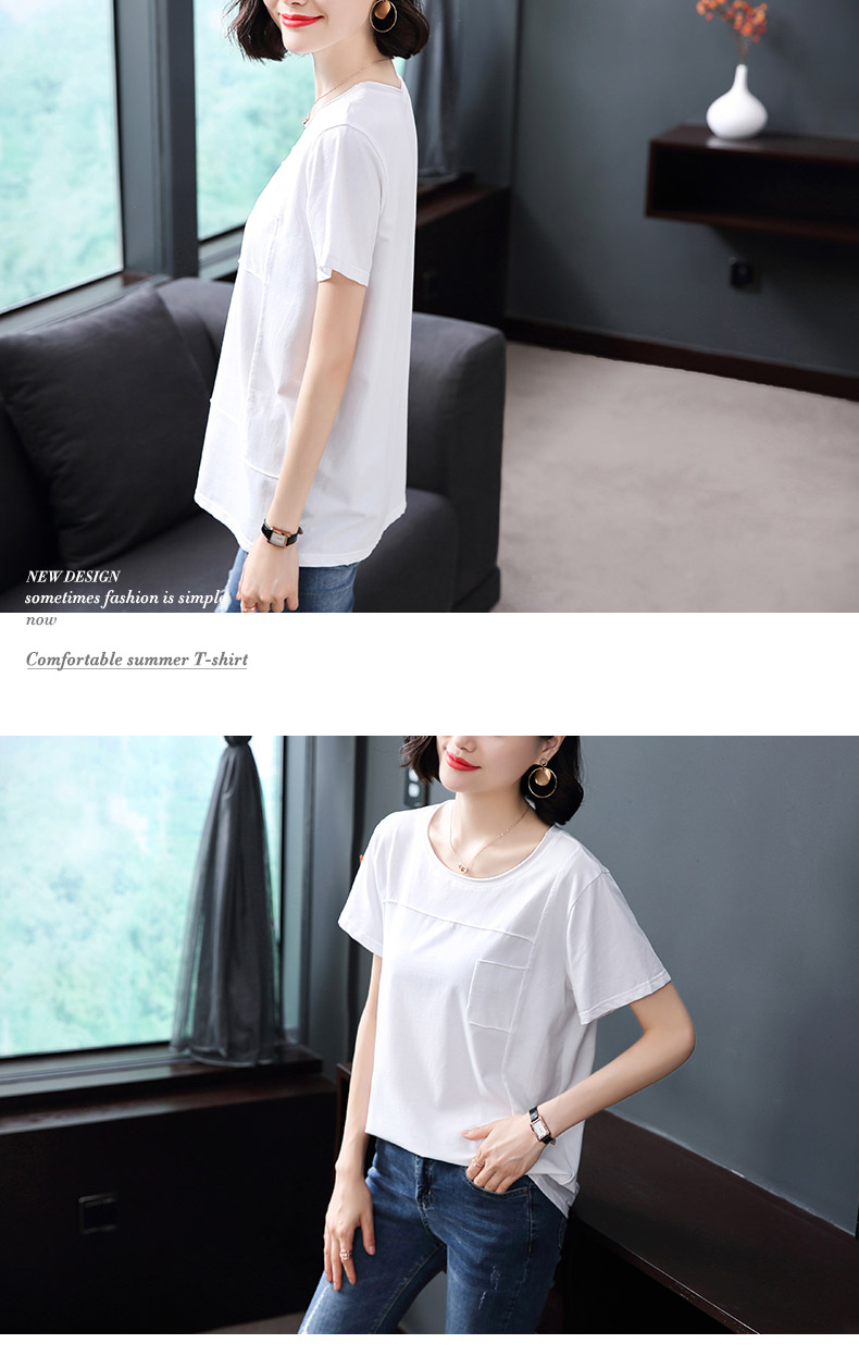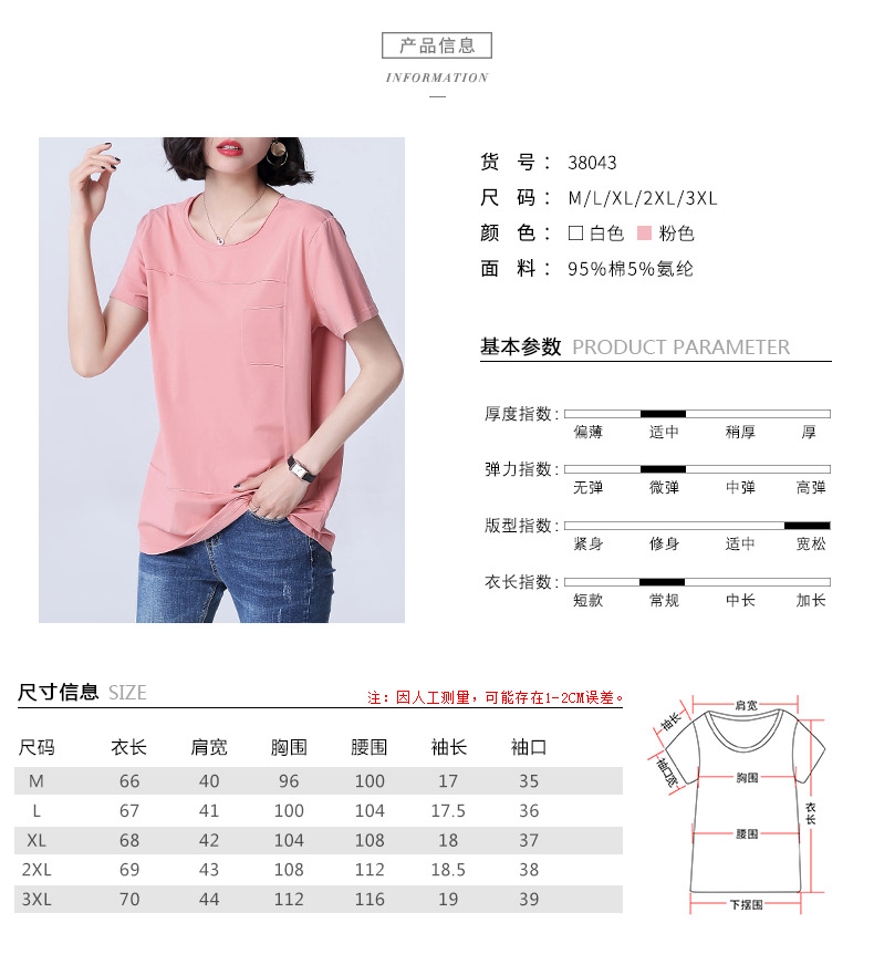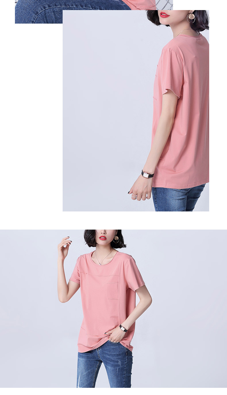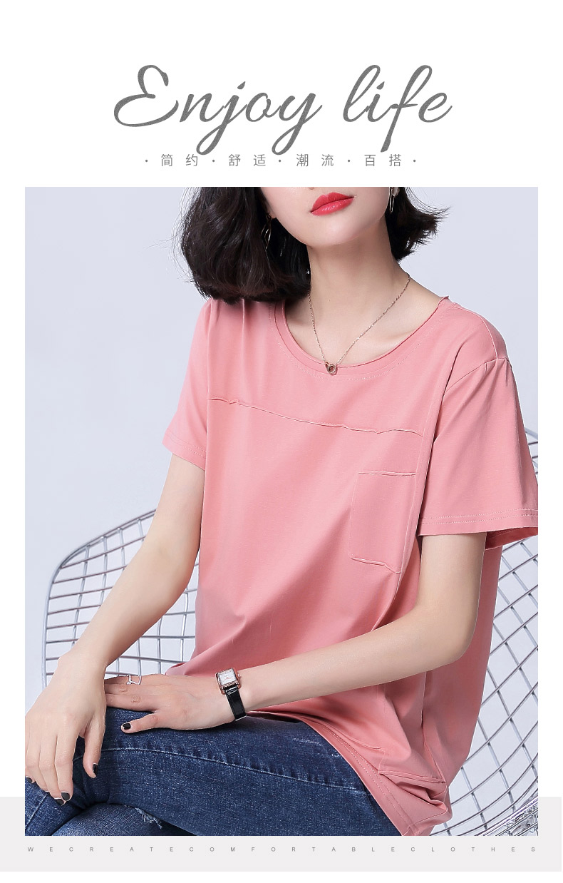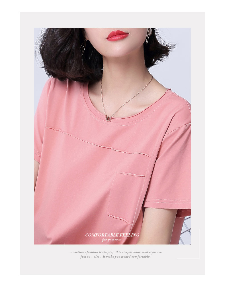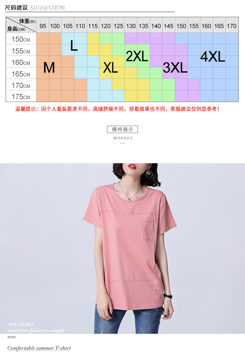 2019新款夏大碼女裝寬松胖mm全棉T恤女短袖中長款顯瘦純色體恤衫