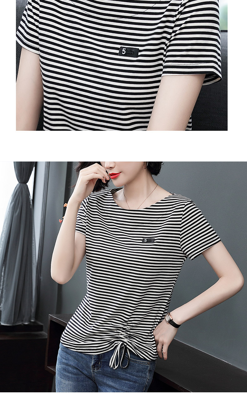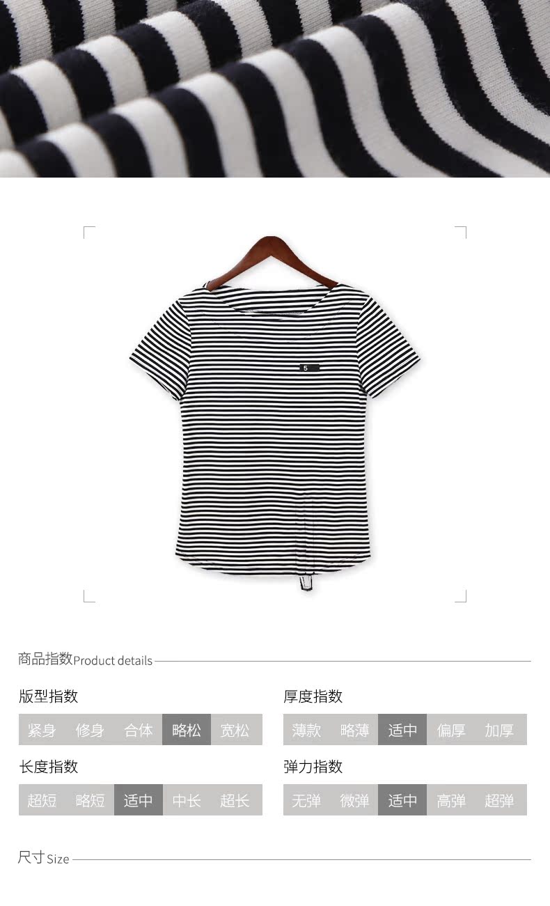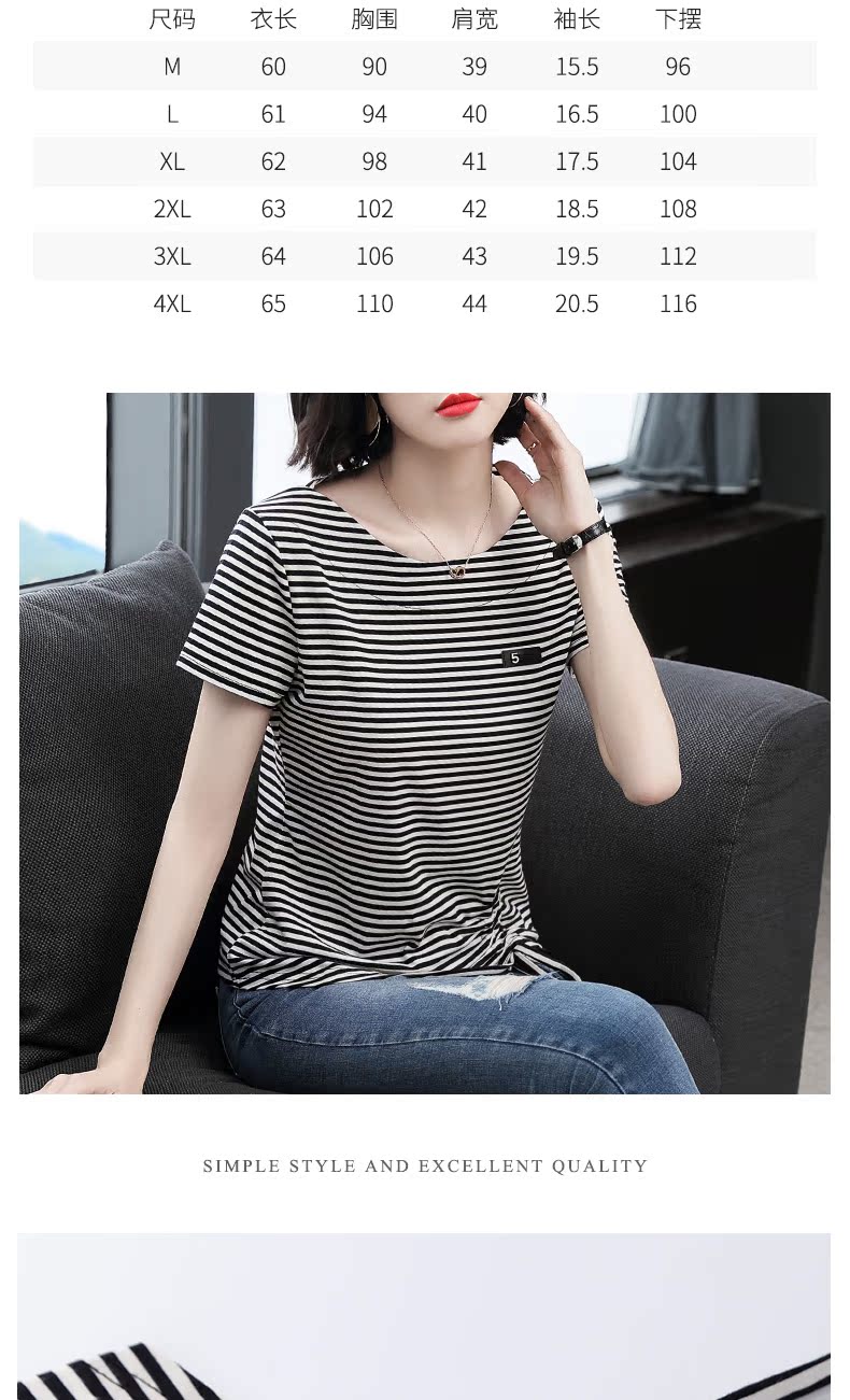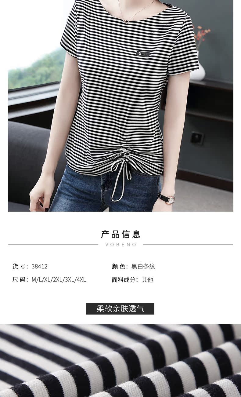 黑白細條紋t恤短袖2019新款夏裝韓版圓領體恤衫大碼半袖顯瘦上衣T