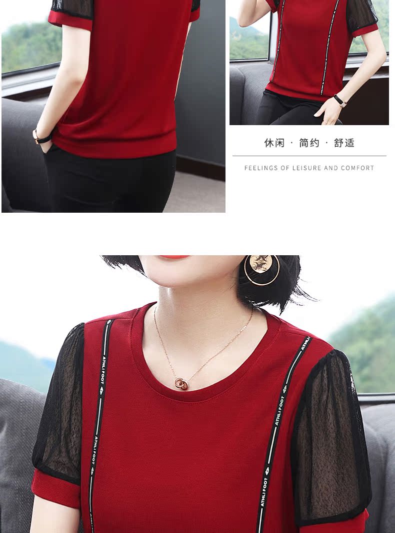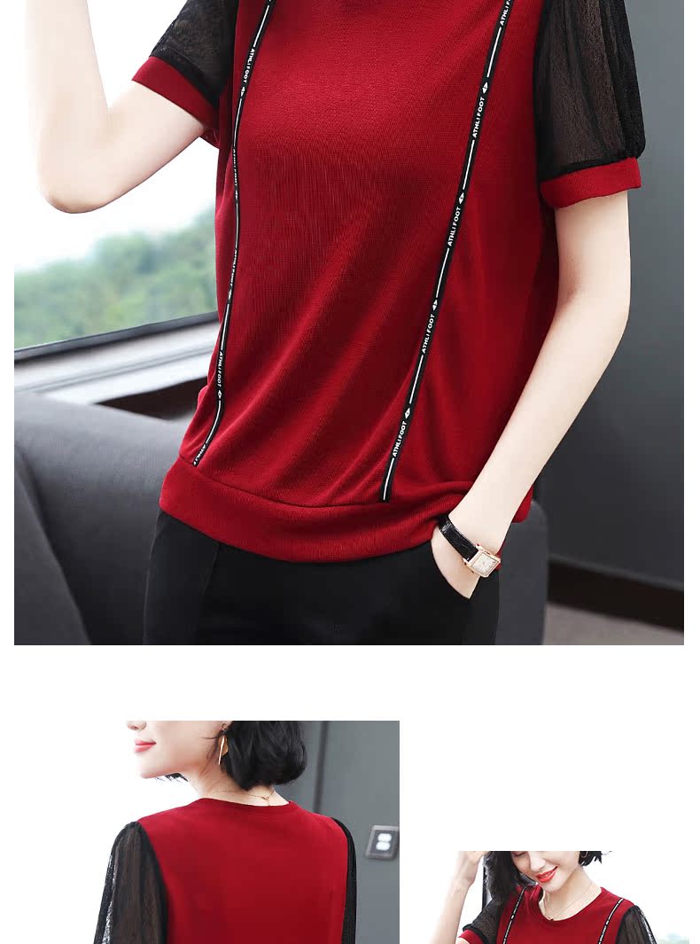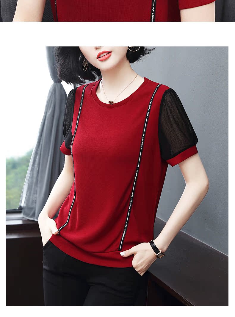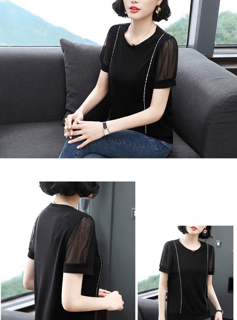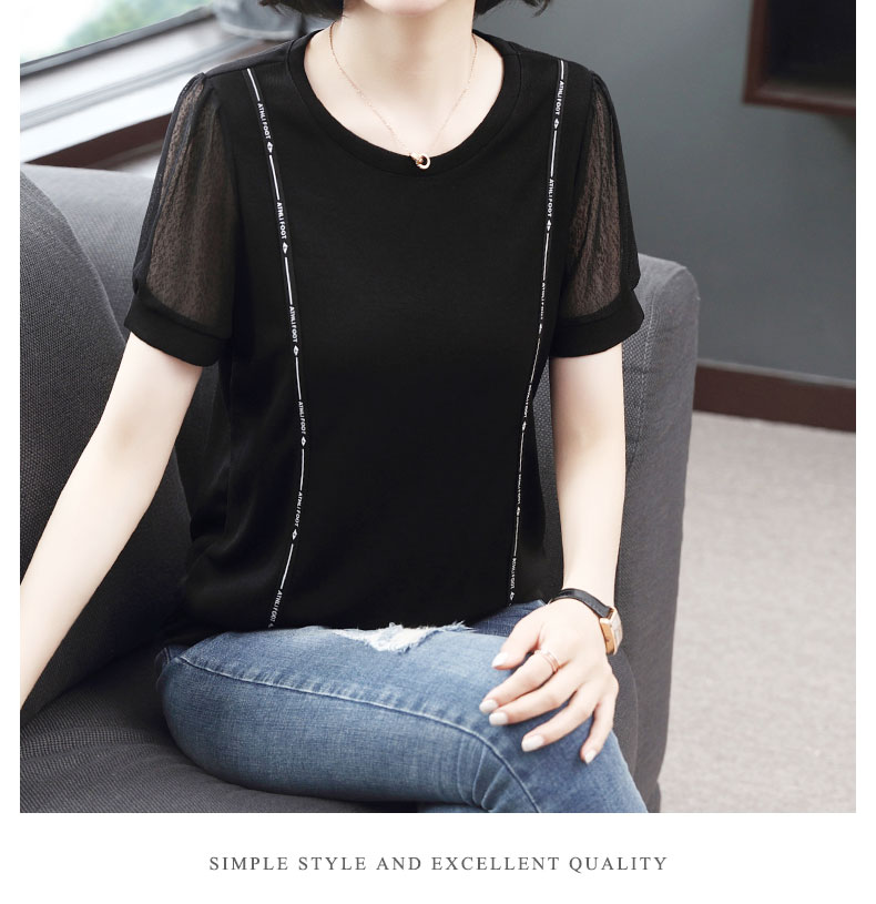 2019新款夏裝女裝網紗cec短袖女t恤韓版寬松大碼拼接半袖體恤上衣