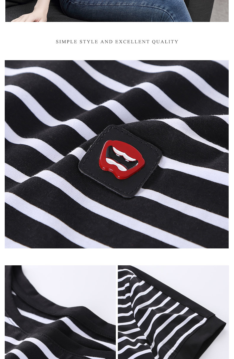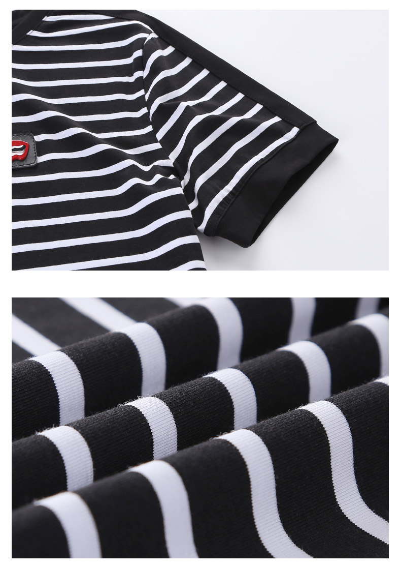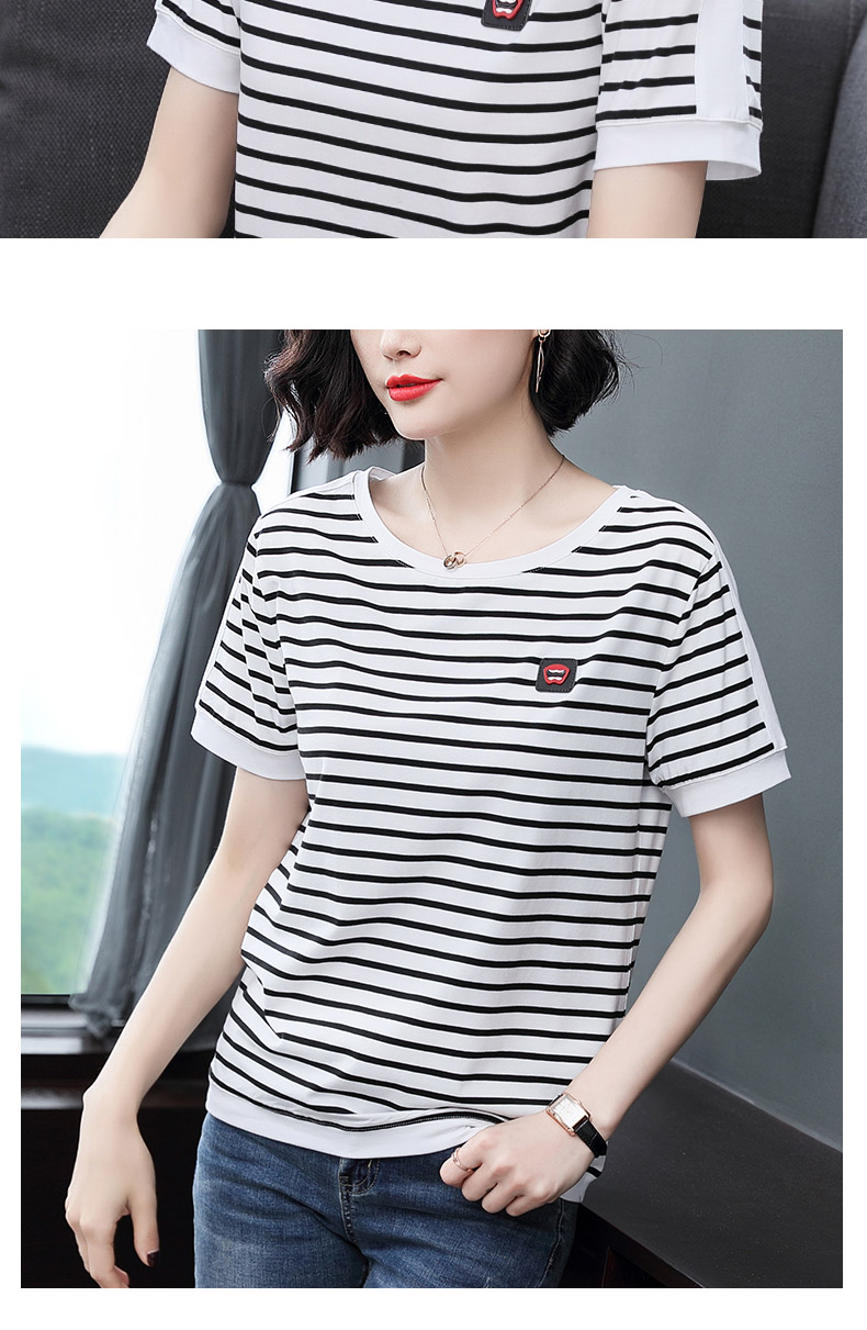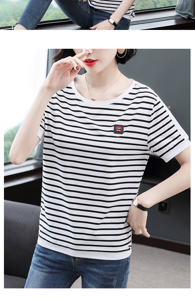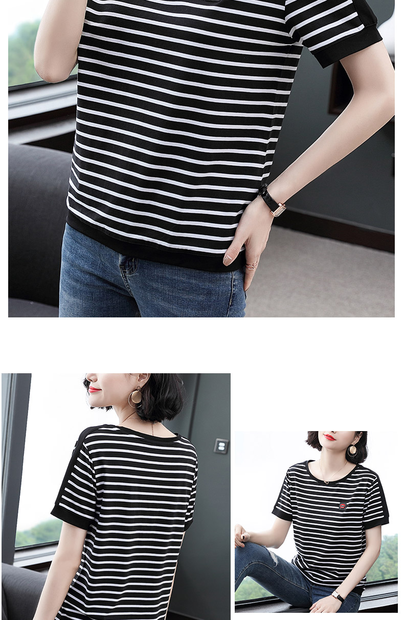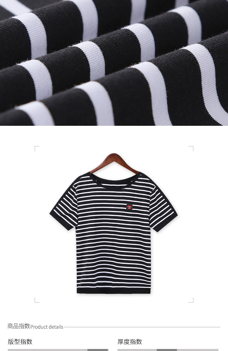 黑白條紋t恤女短袖2019新款夏季寬松大碼體恤打底衫拼接圓領上衣