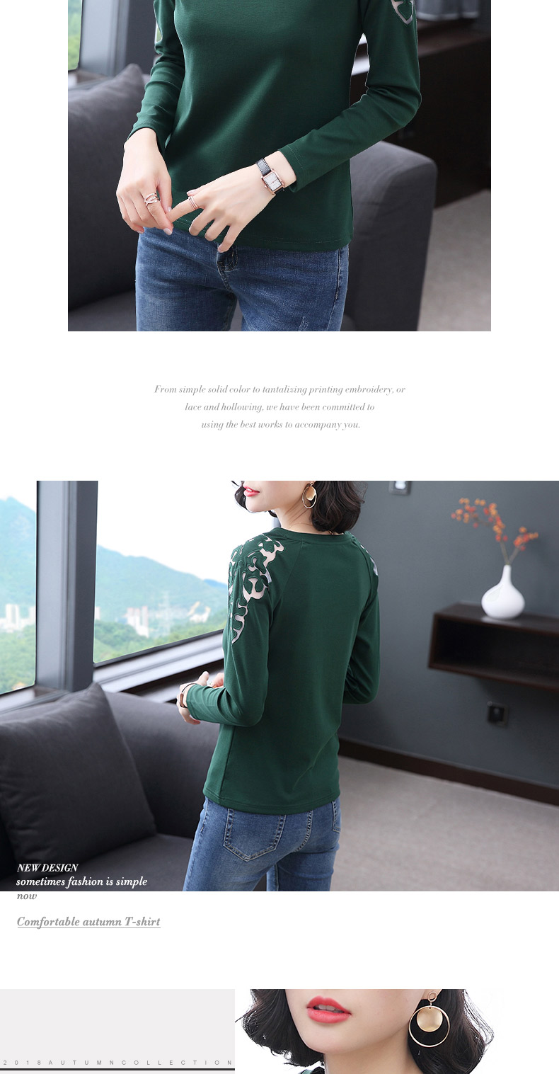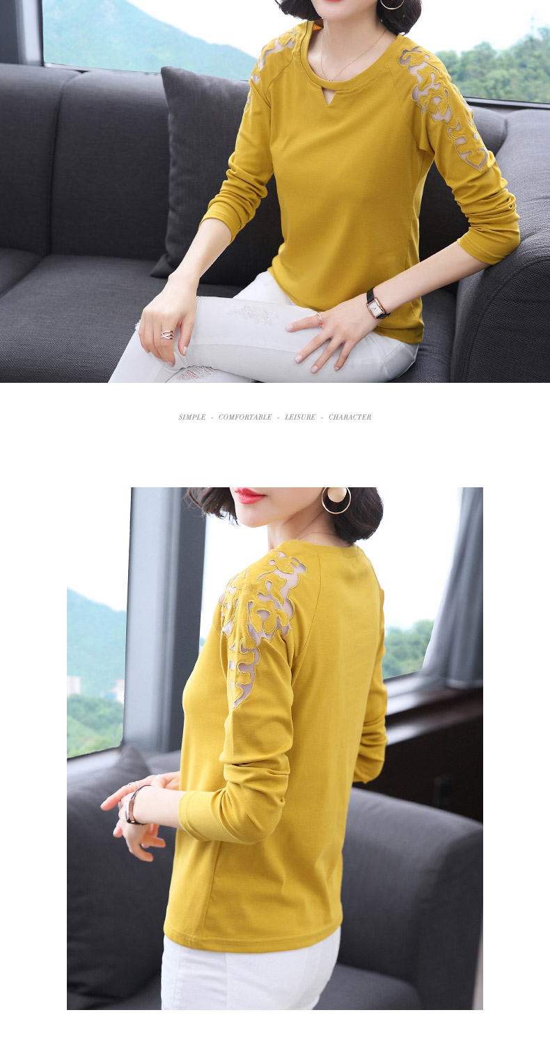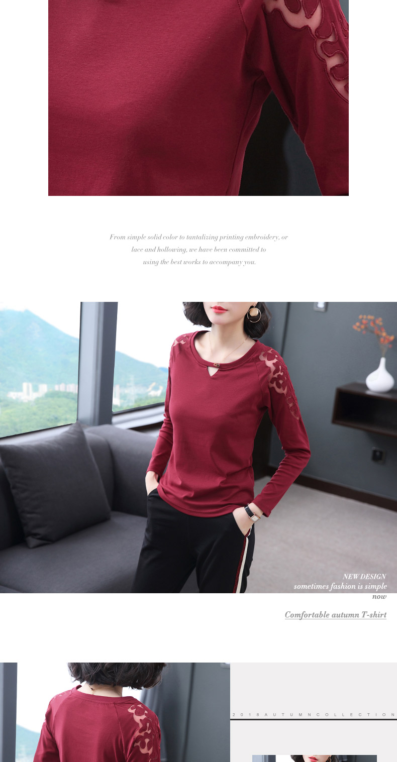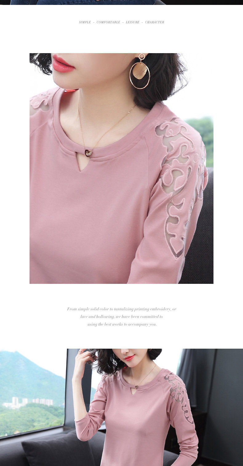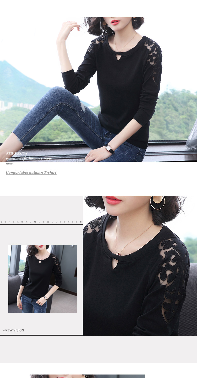 長袖女t恤春裝2019新款韓版蕾絲鏤空大碼體恤上衣純色純棉打底衫