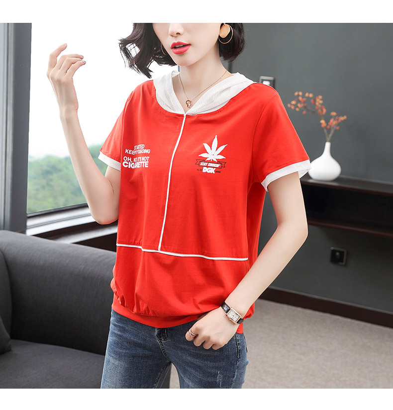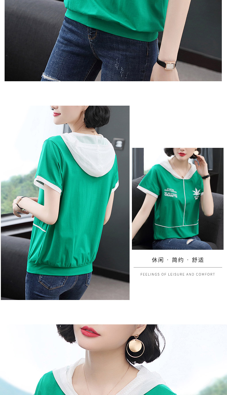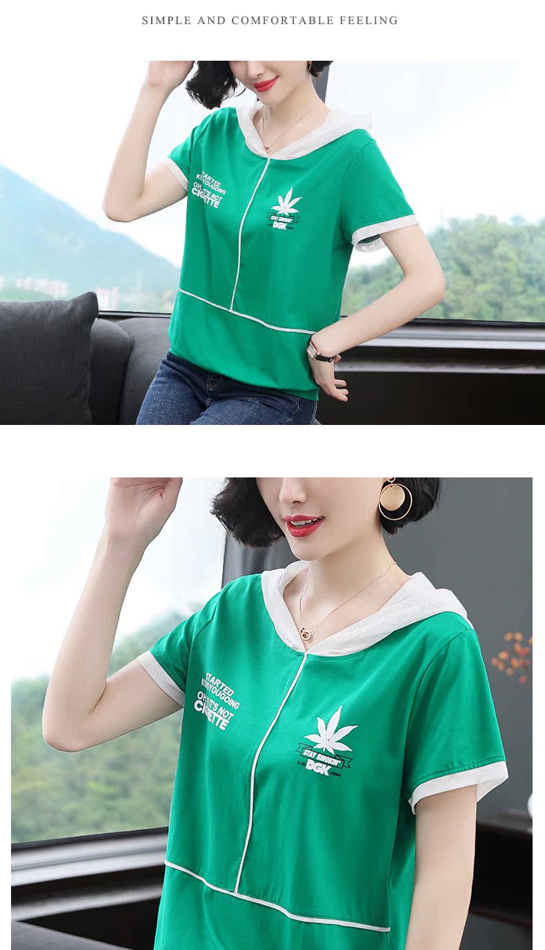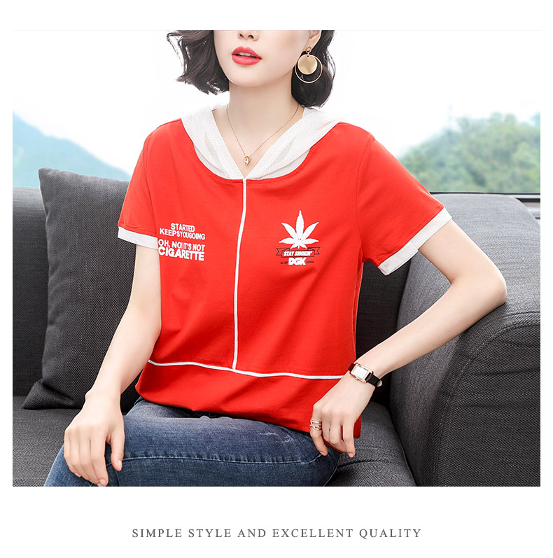 2019新款夏裝女裝網紗連帽t恤女短袖韓版半袖印花上衣寬松體恤?