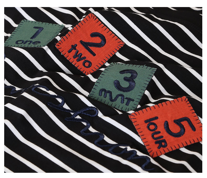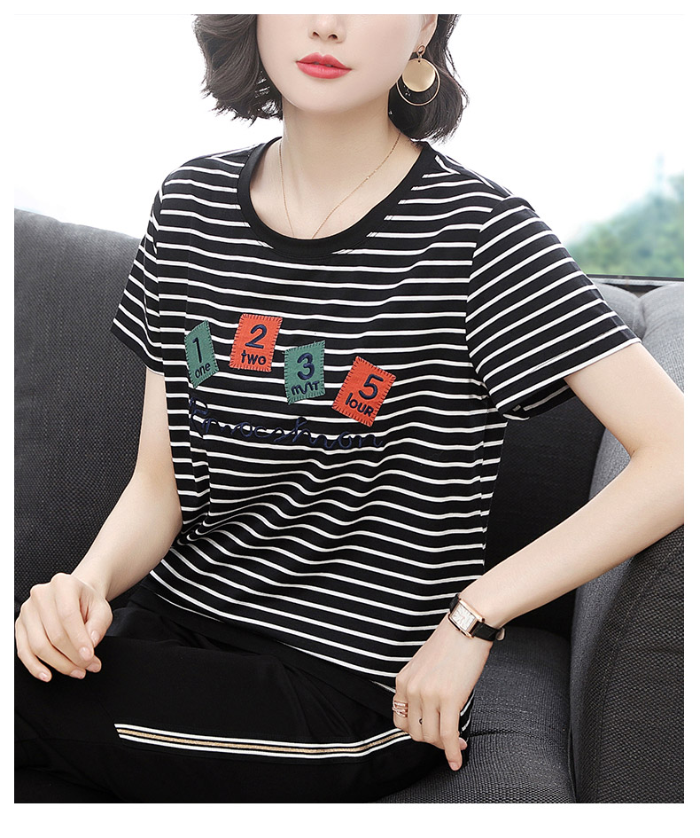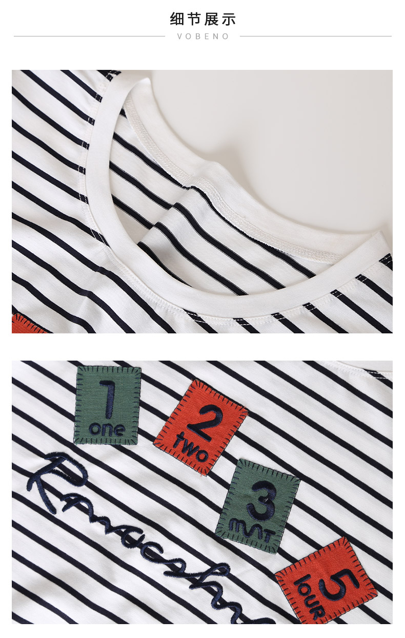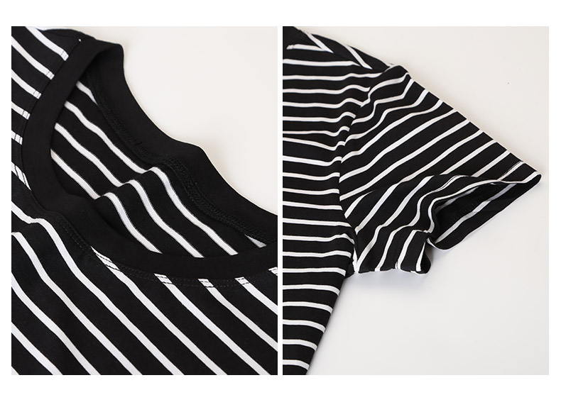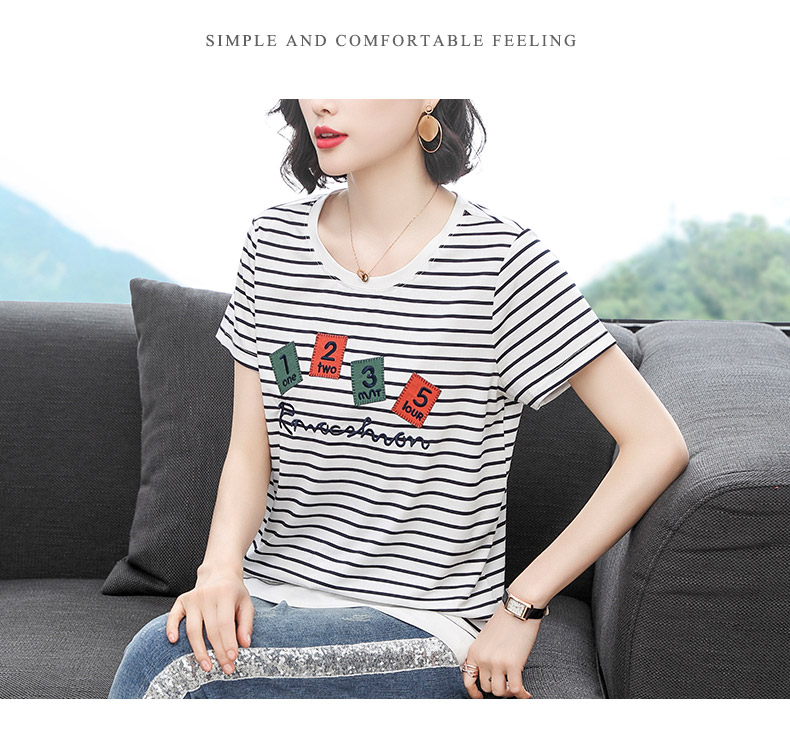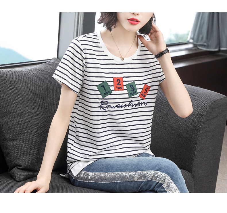 黑白條紋t恤女短袖寬松2019新款夏裝韓版圓領體恤大碼刺繡上衣潮