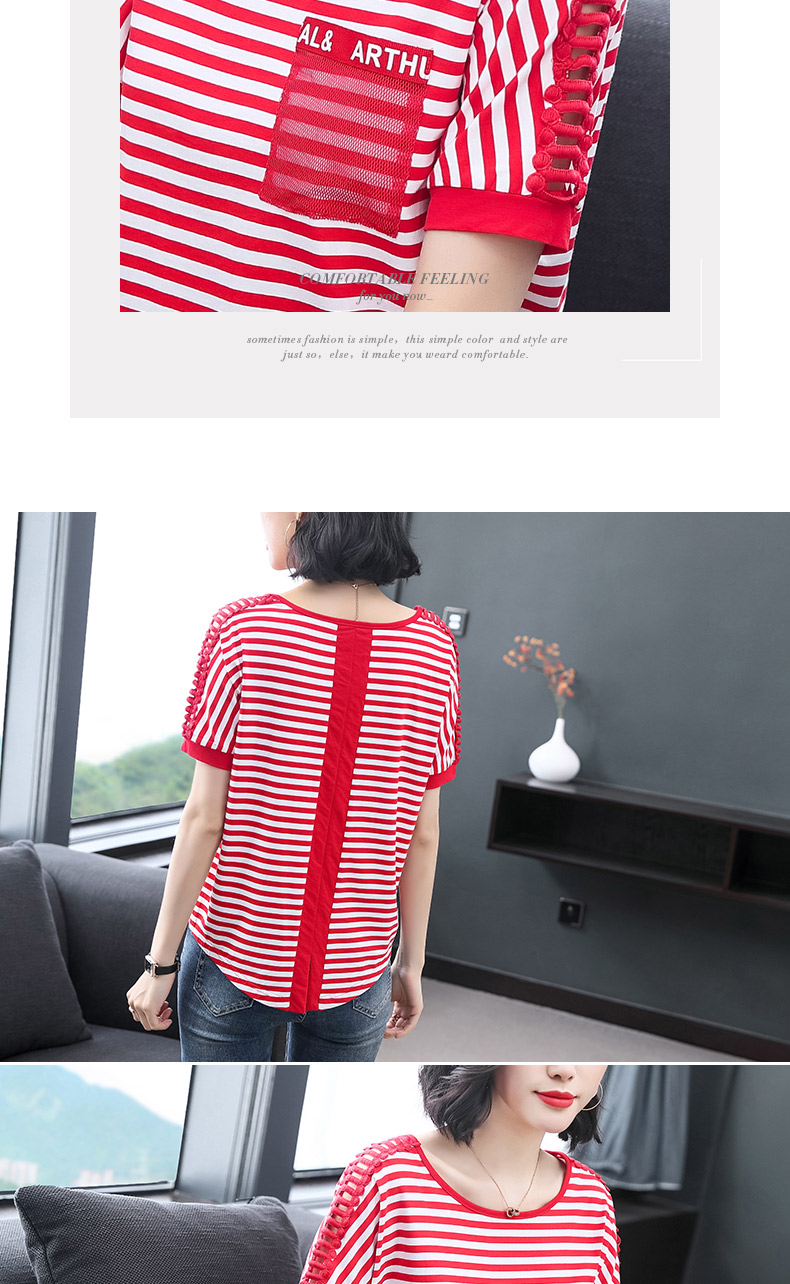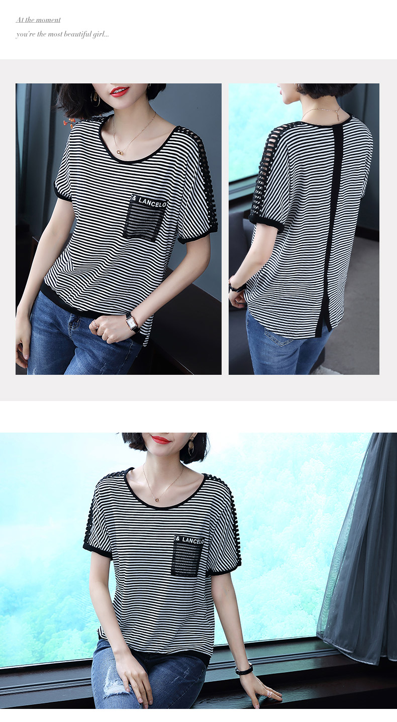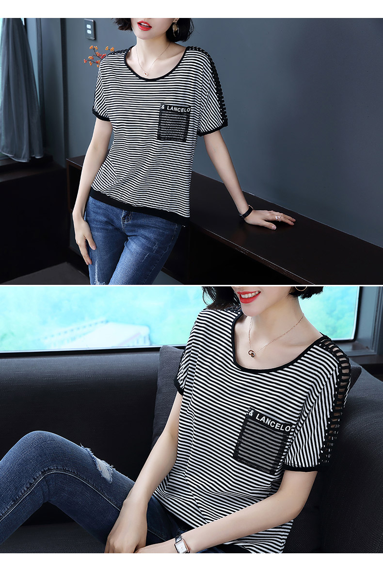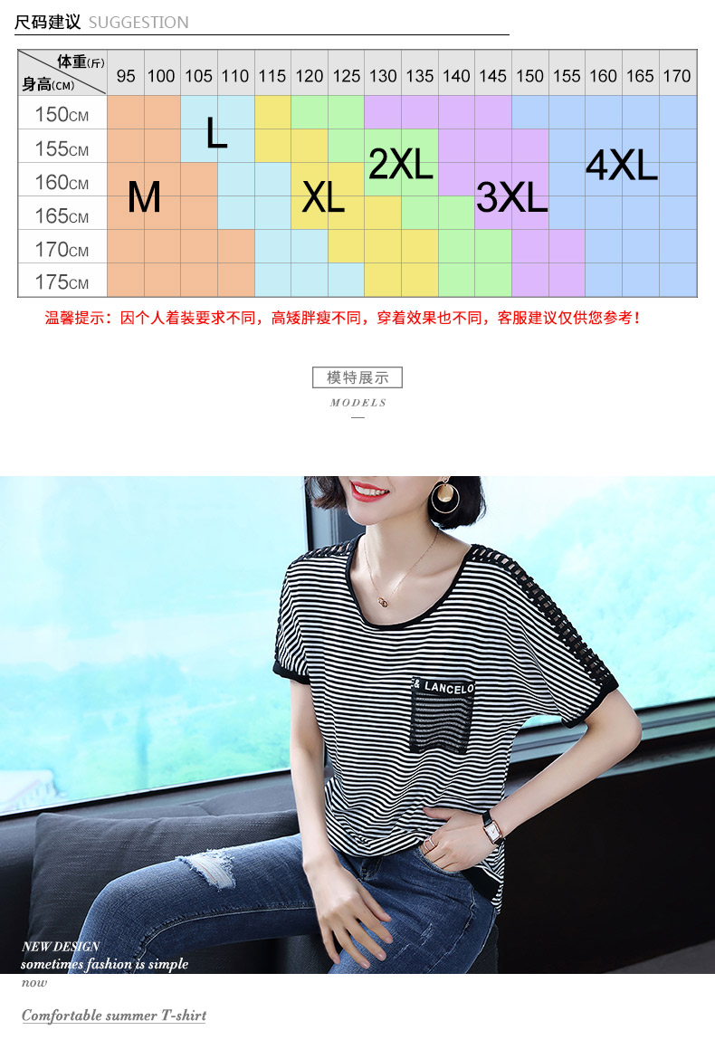 2019新款條紋t恤女短袖韓版寬松蝙蝠袖小心機上衣夏鏤空半袖體恤