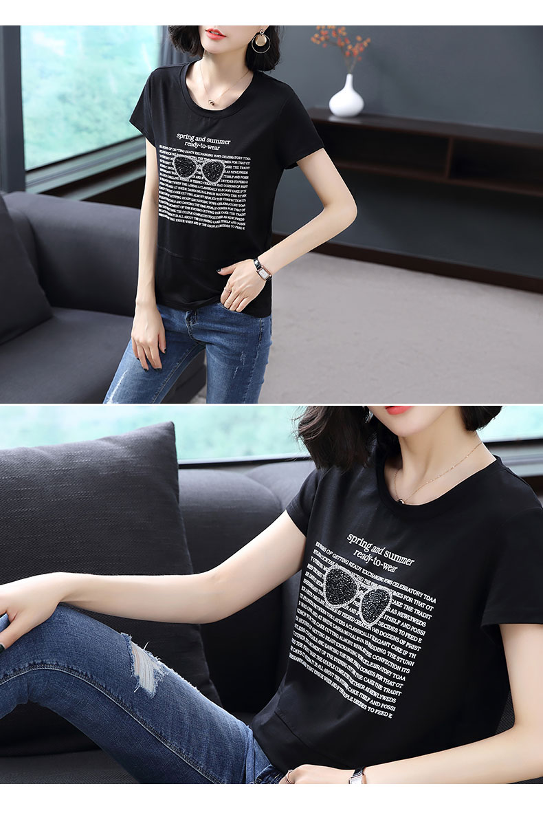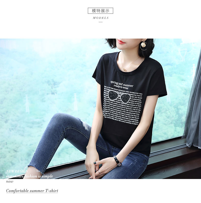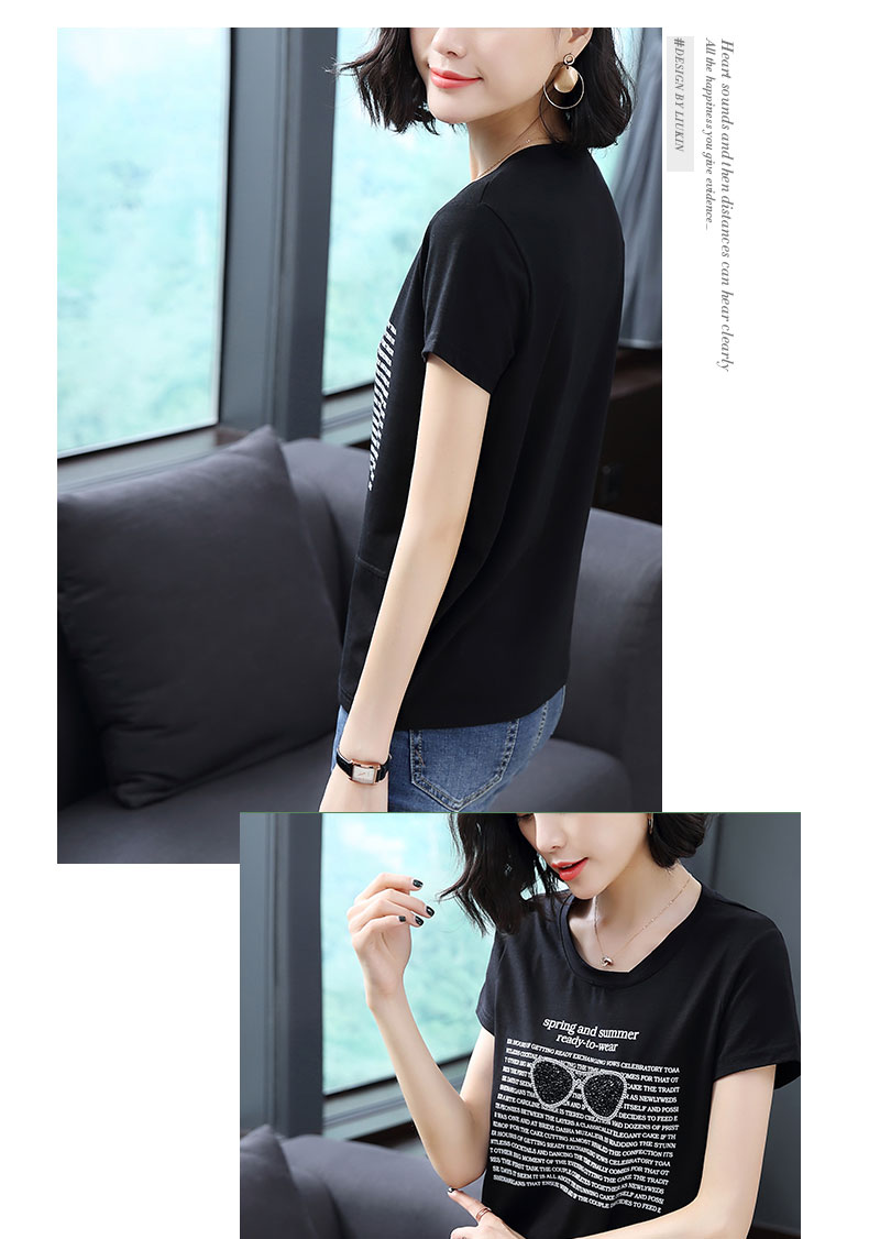 2019新款女裝純棉t恤女短袖韓版印花胖mm寬松大碼圓領體恤小衫潮