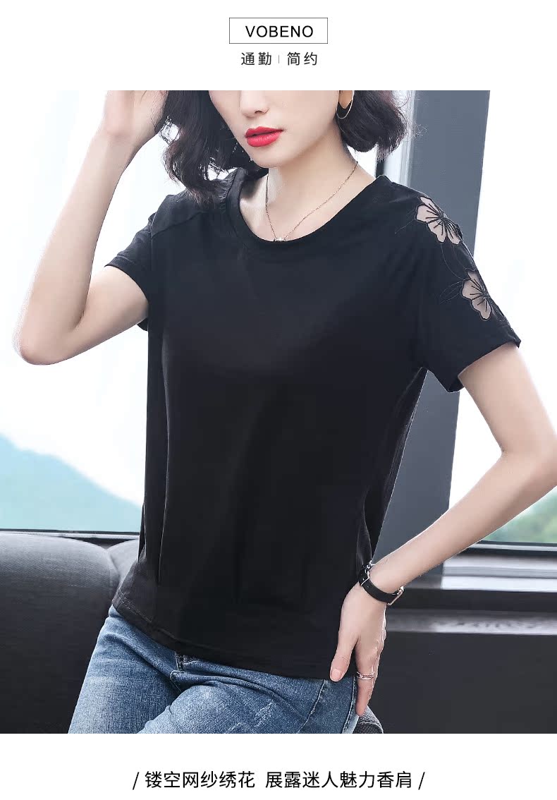 黑色t恤女短袖2019新款韓版寬松網紗鏤空半袖小衫大碼體恤上衣夏