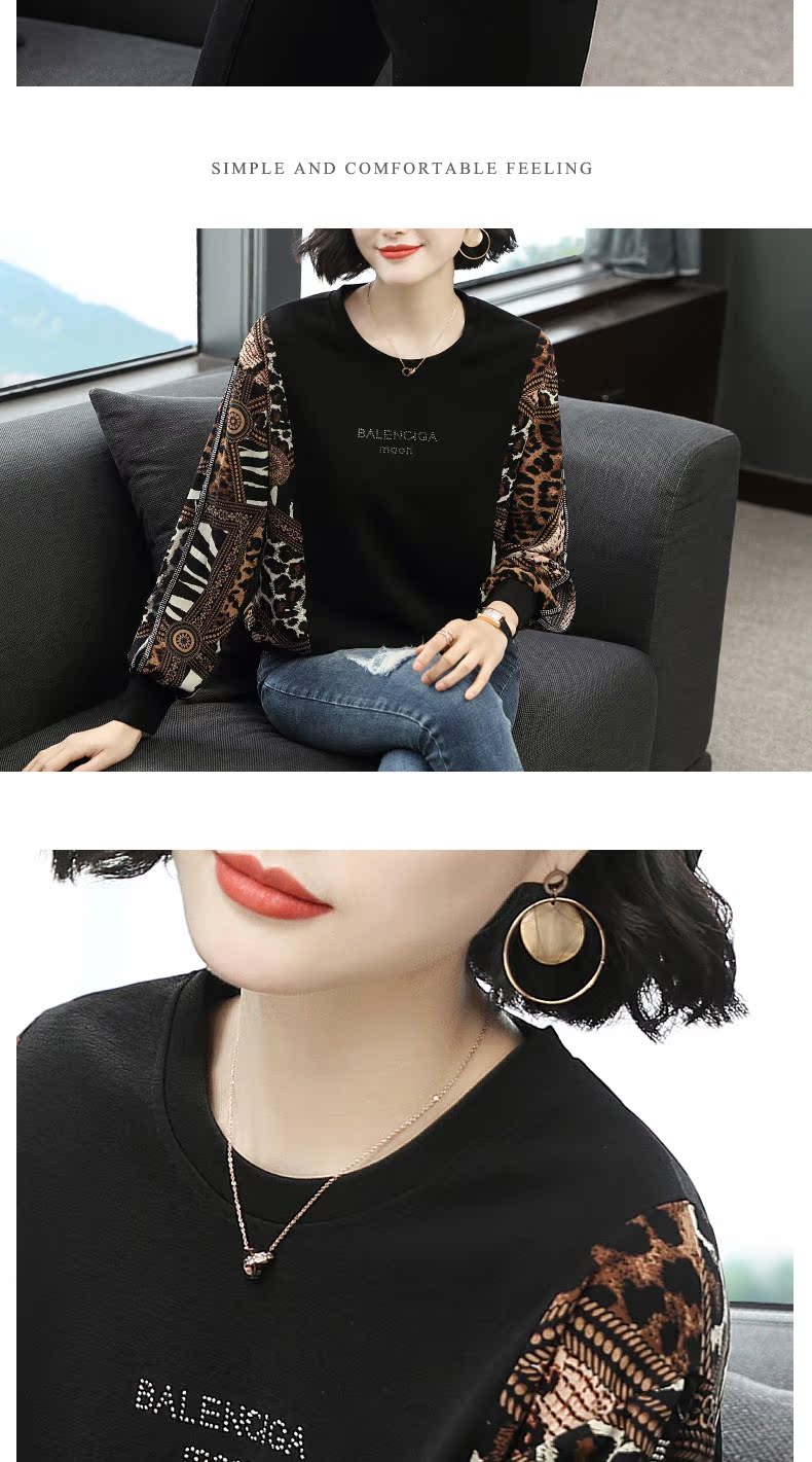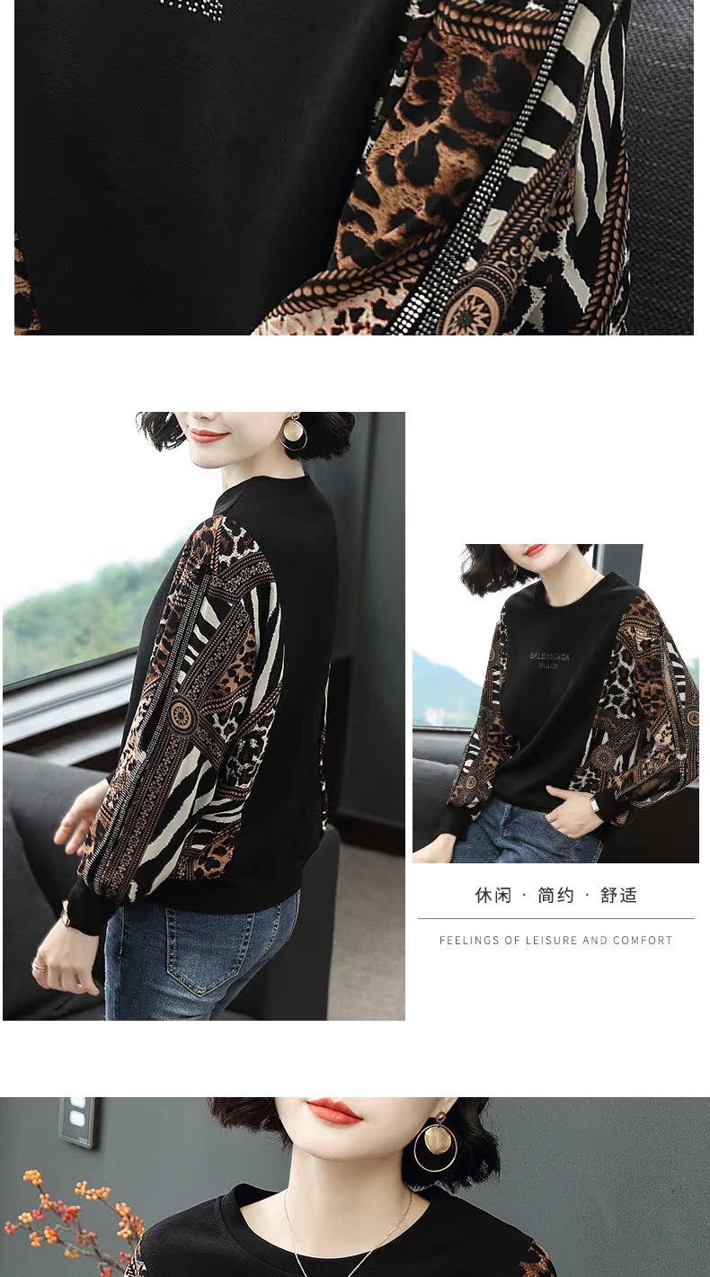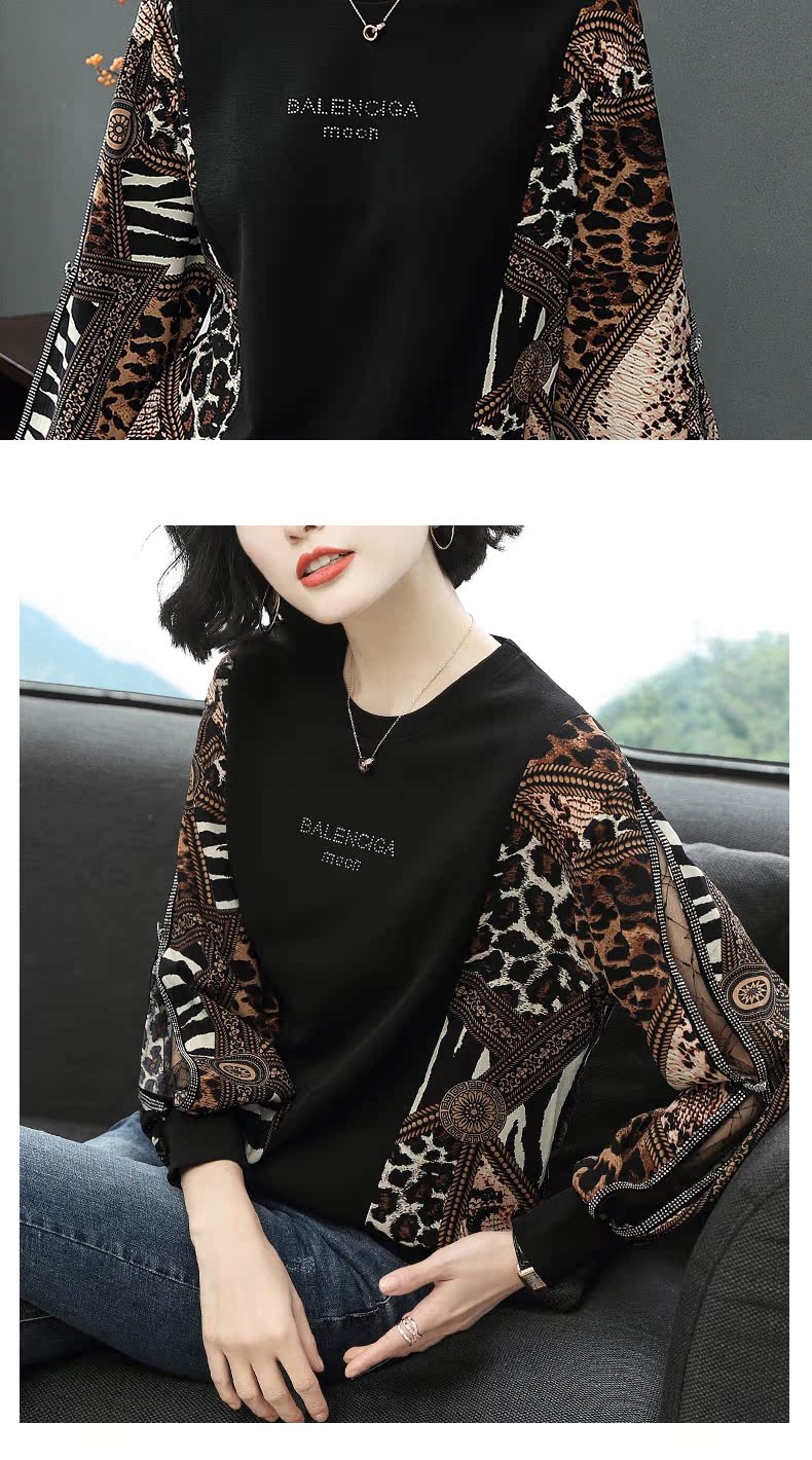 2019春裝新款寬松t恤女長袖燈籠袖豹紋上衣歐貨時尚打底衫洋氣潮
