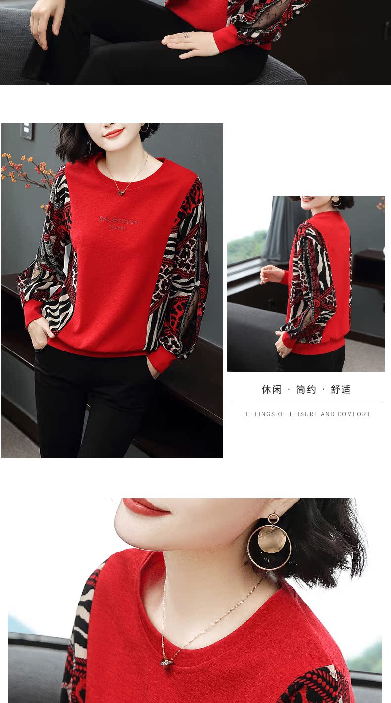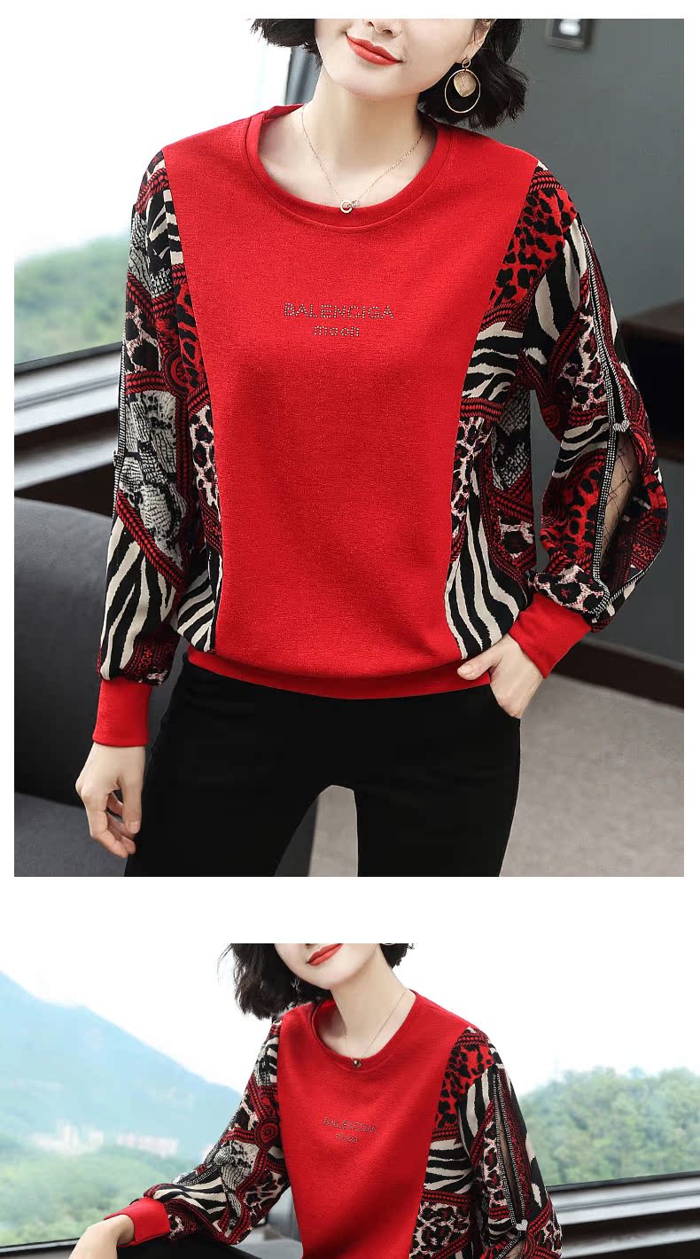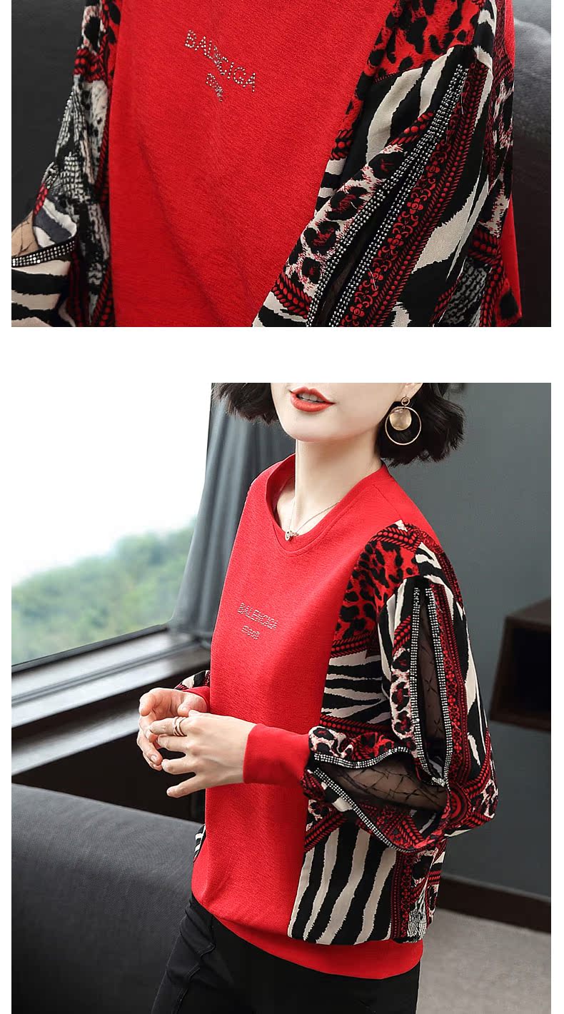 2019春裝新款寬松t恤女長袖燈籠袖豹紋上衣歐貨時尚打底衫洋氣潮